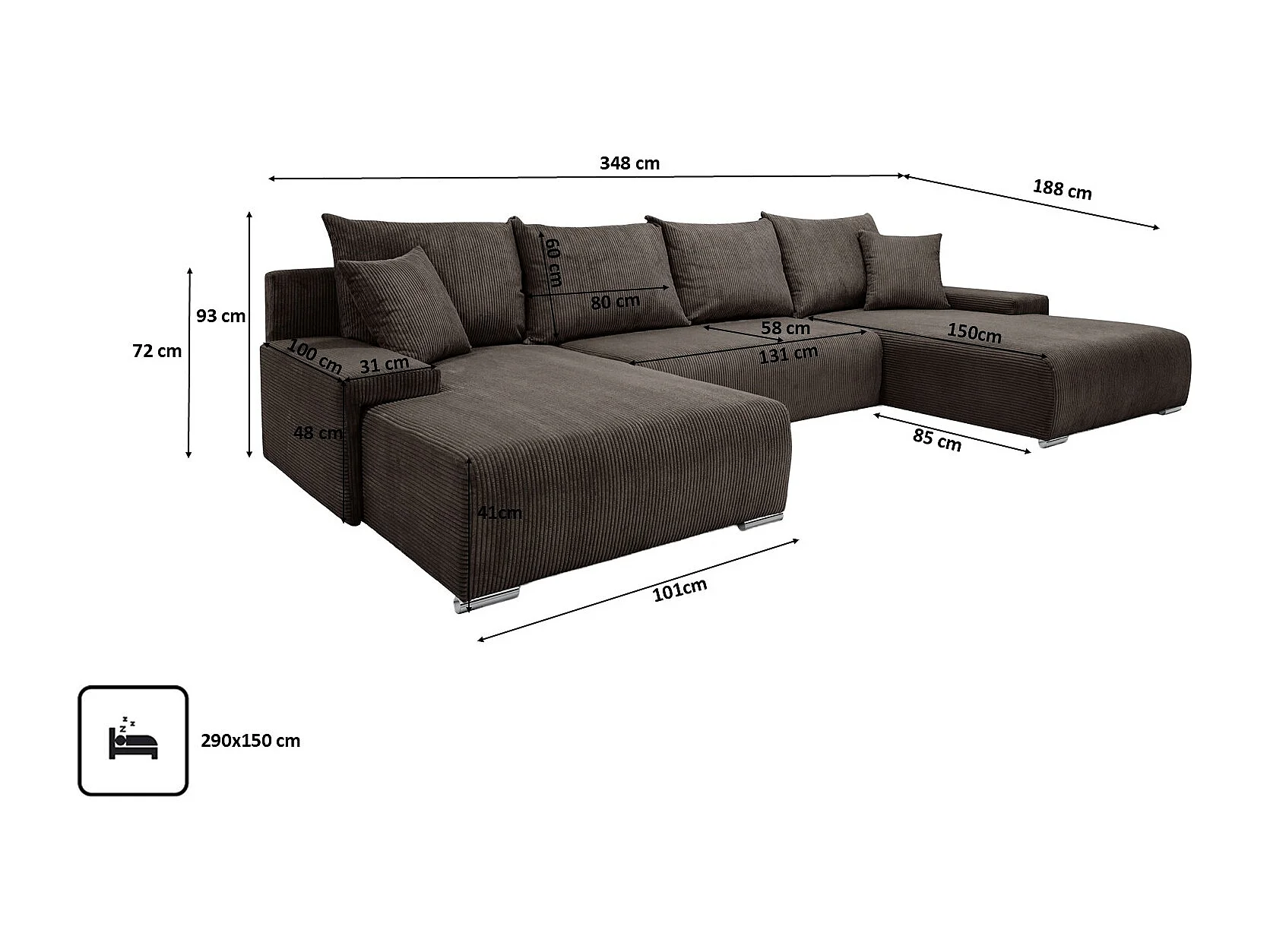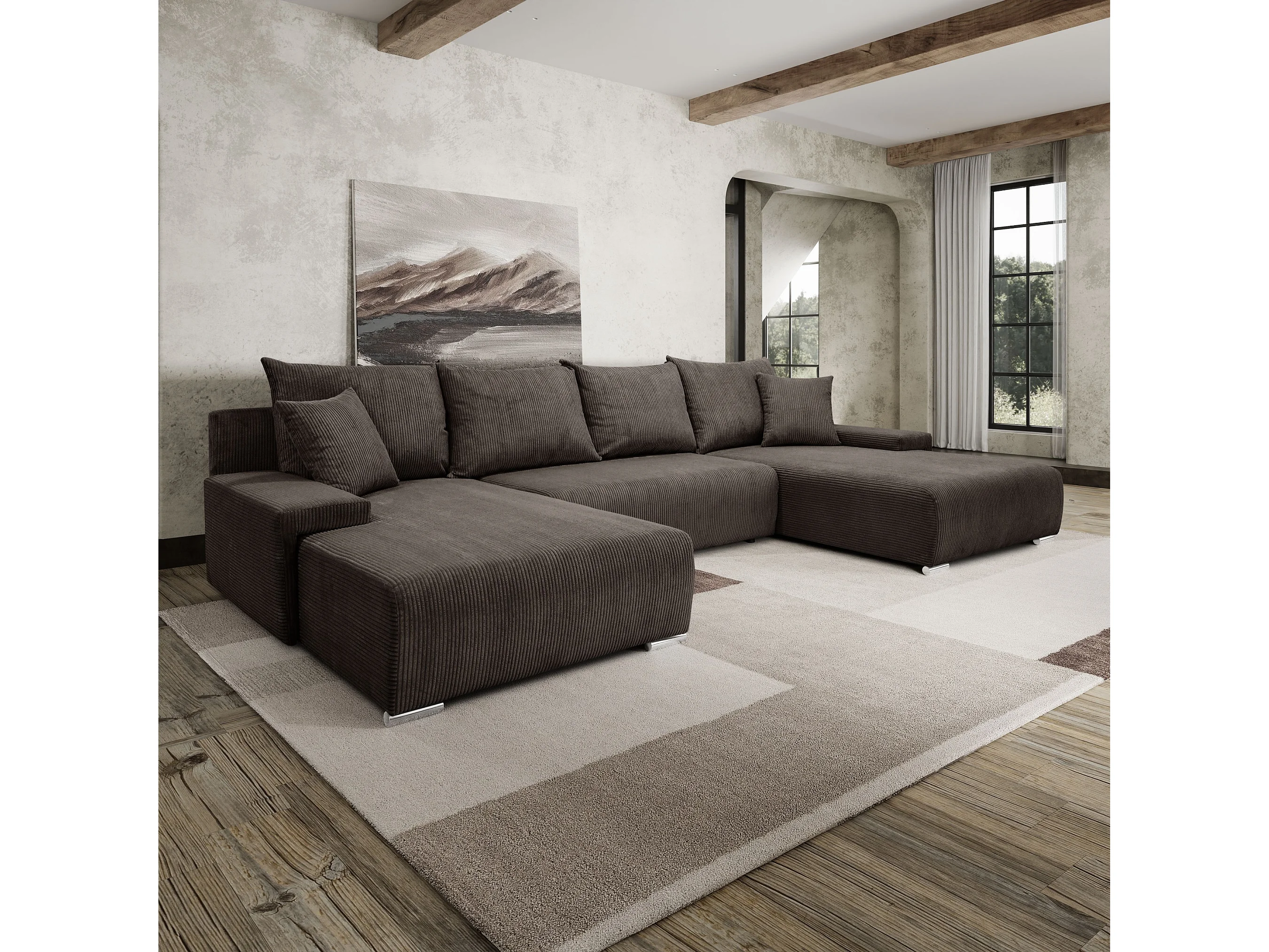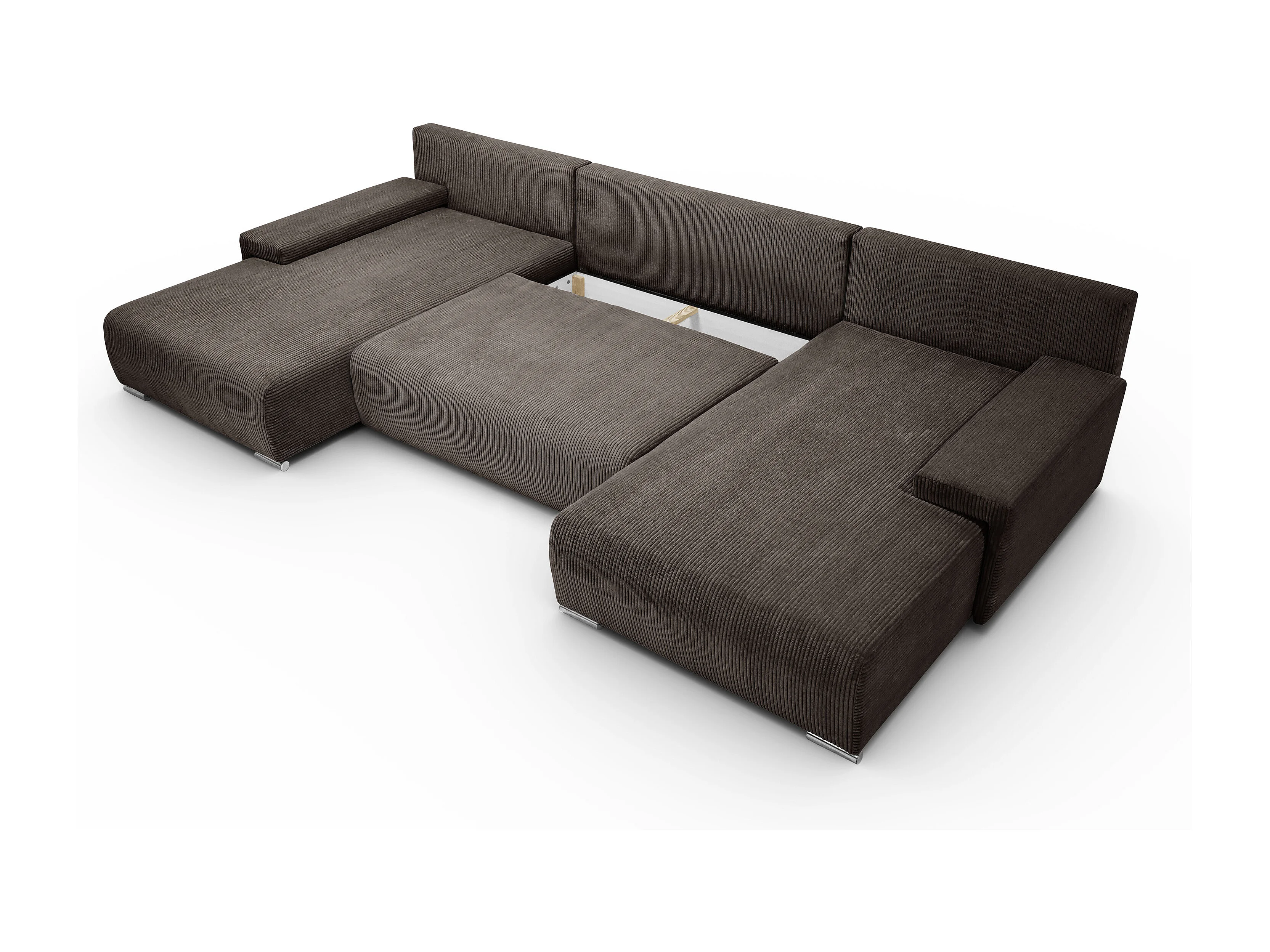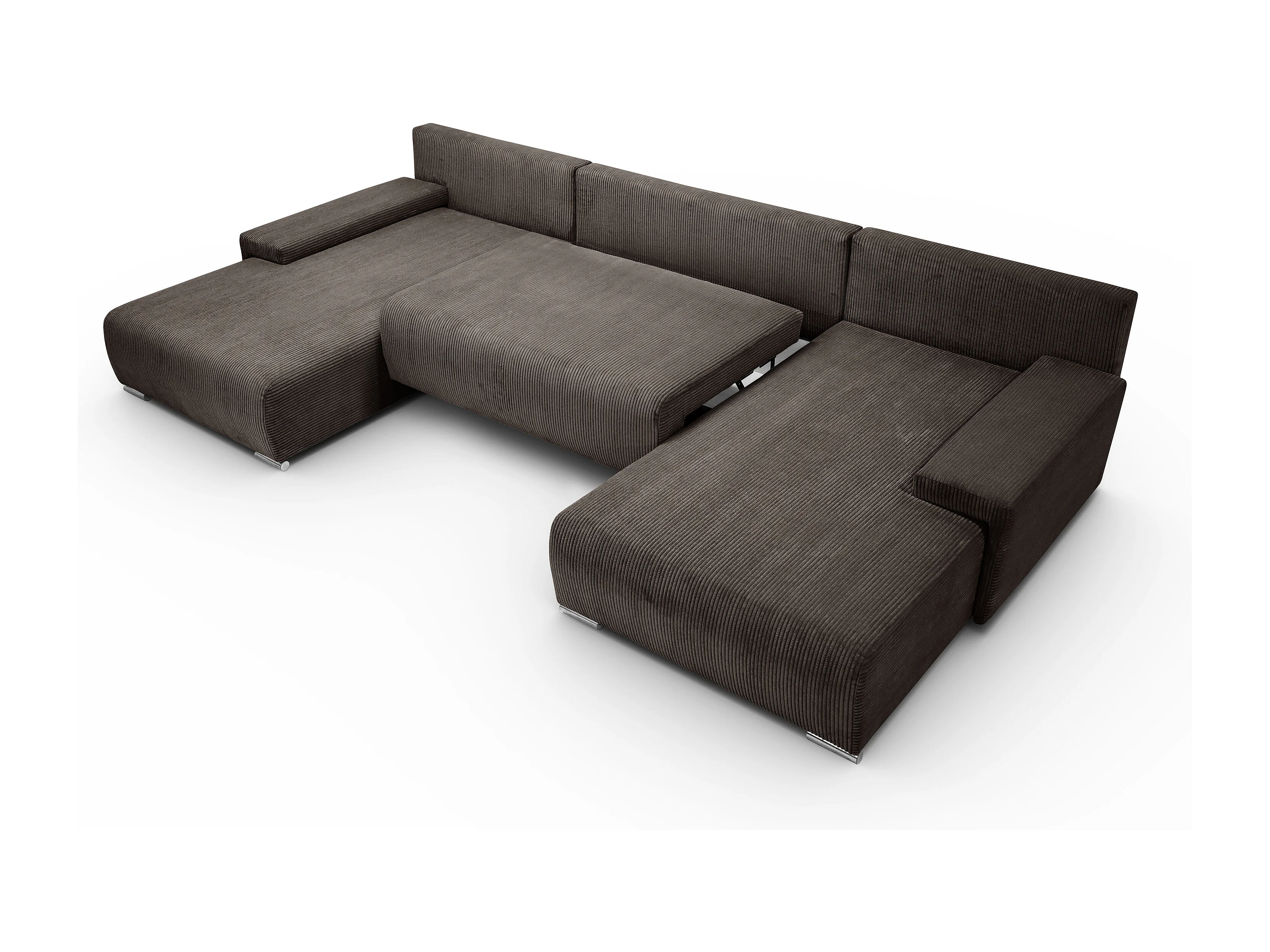 Canapé d'angle, Canapé en U, Tissu côtelé Poso, Marron, Livorno U