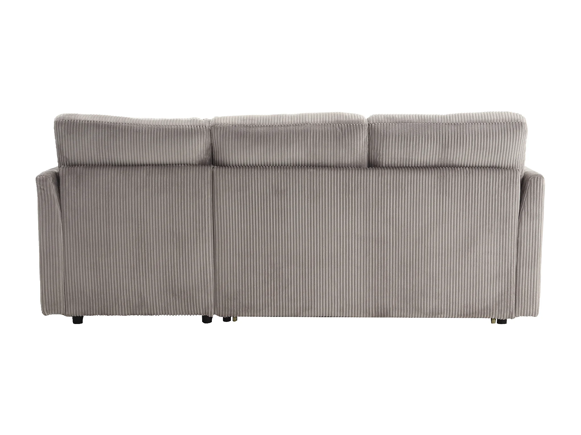 Canapé d'angle convertible 3 places avec rangements - Velours côtelé gris clair