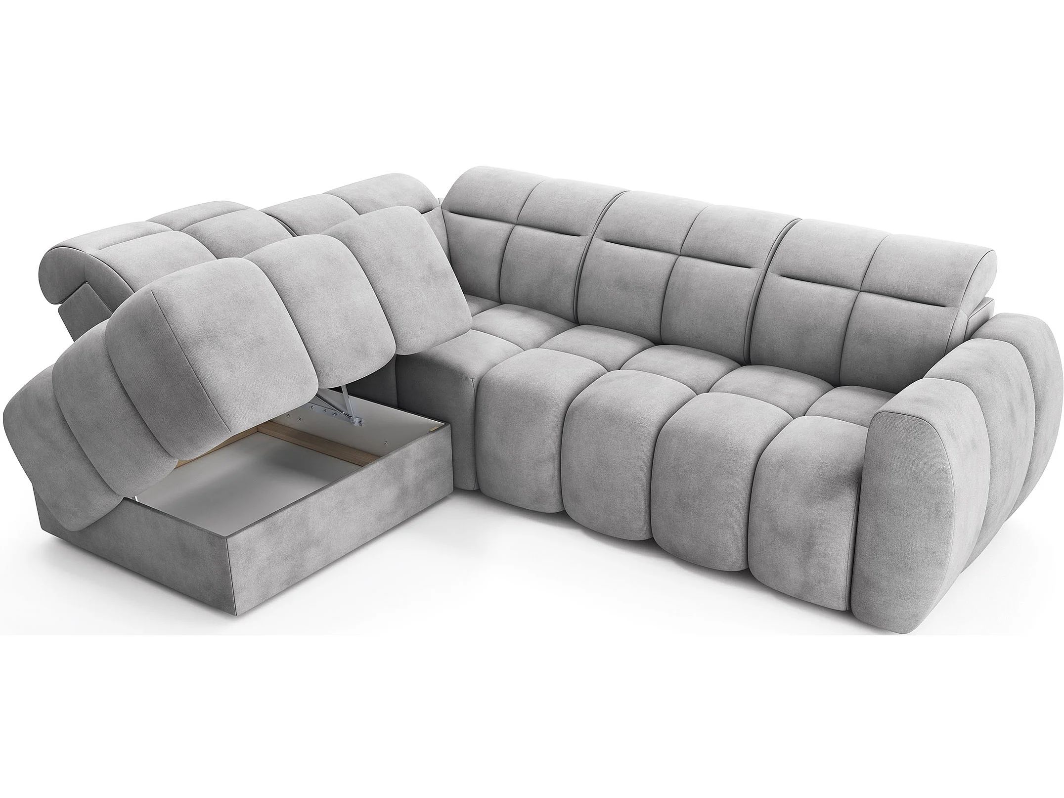 Canapé d’angle convertible 4 places tissu BOBOON 258cm – Coffre de rangement-Gris-angle gauche