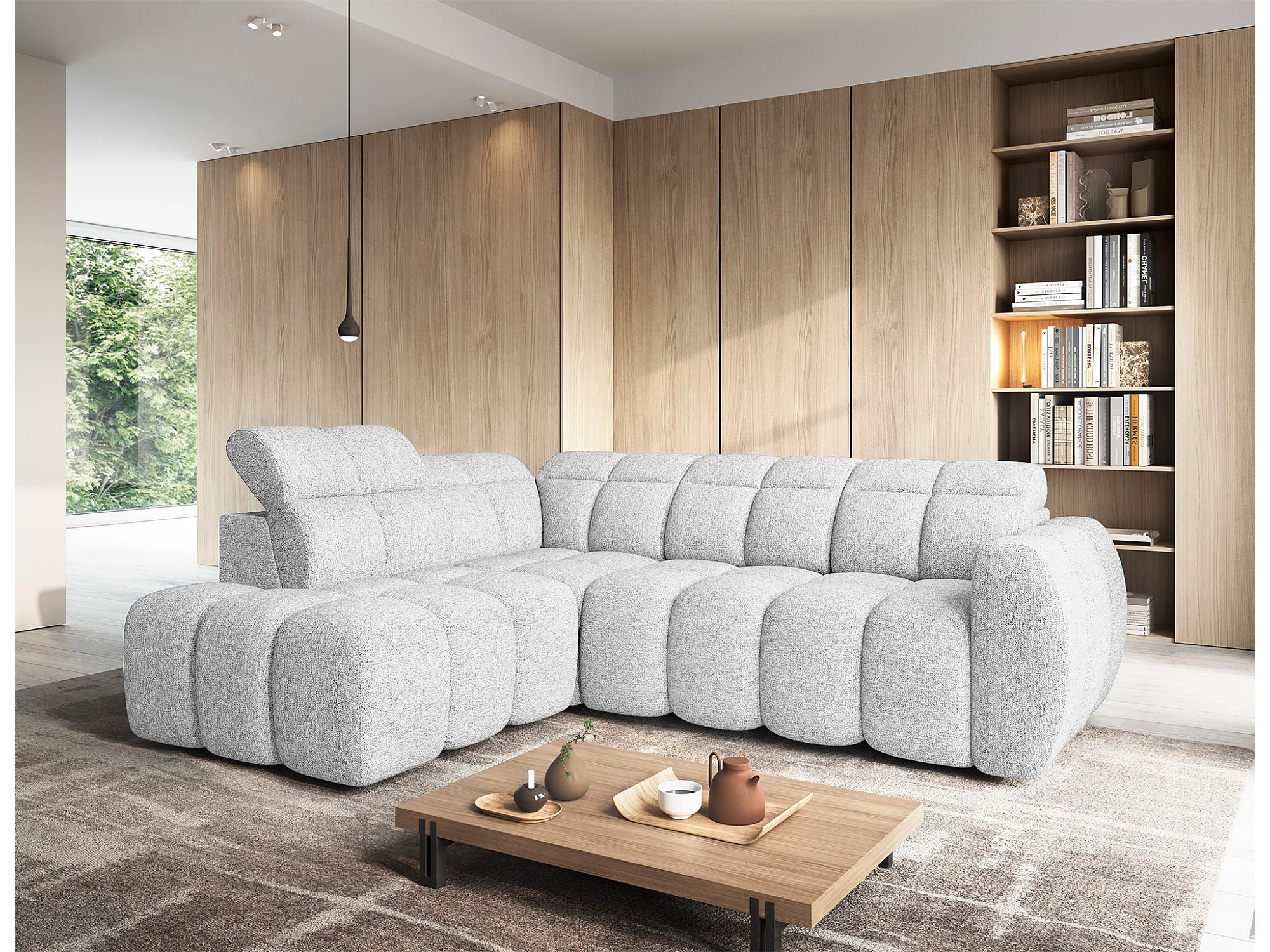 Canapé d’angle convertible 4 places tissu BOBOON 258cm – Coffre de rangement-Gris clair-angle gauche