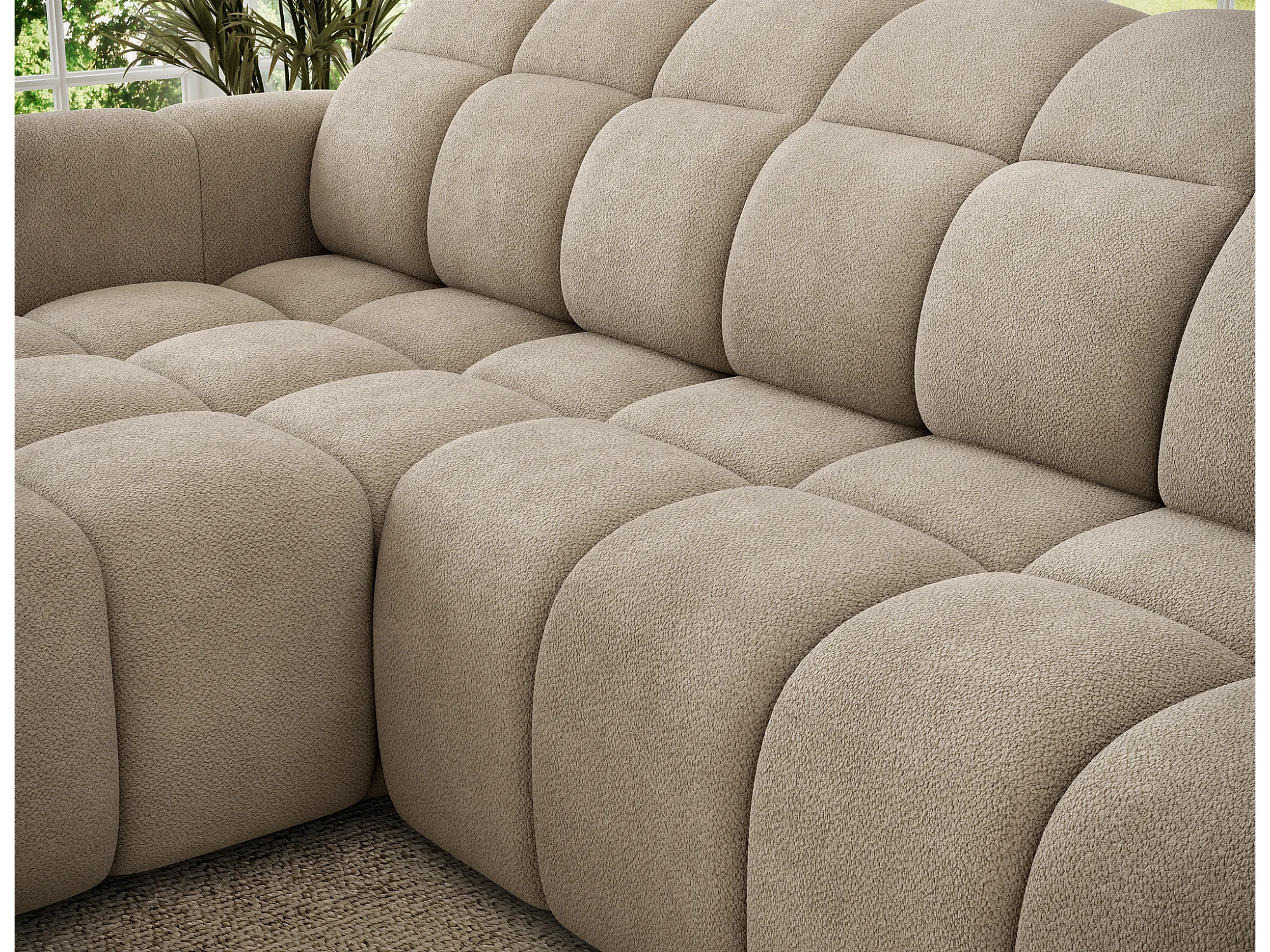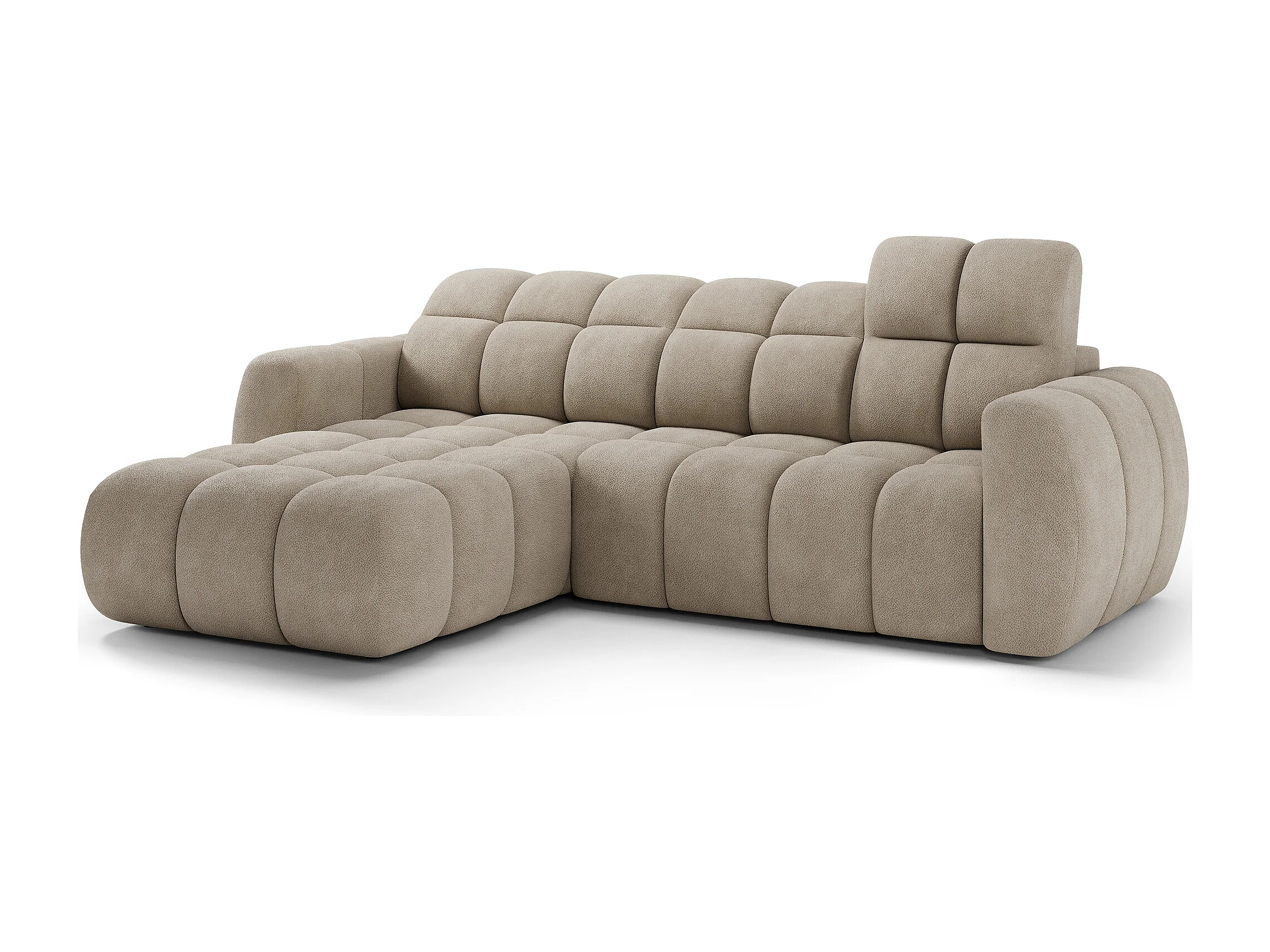 Canapé d’angle convertible 4 places tissu FENKA 288cm – Assise électrique & têtières réglables-Taupe-angle gauche