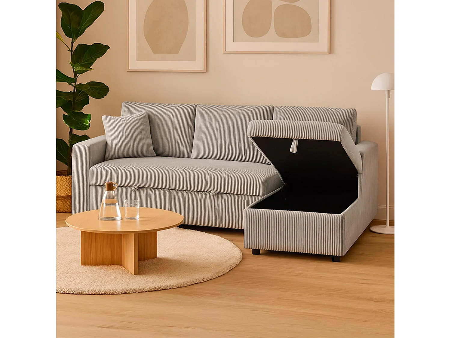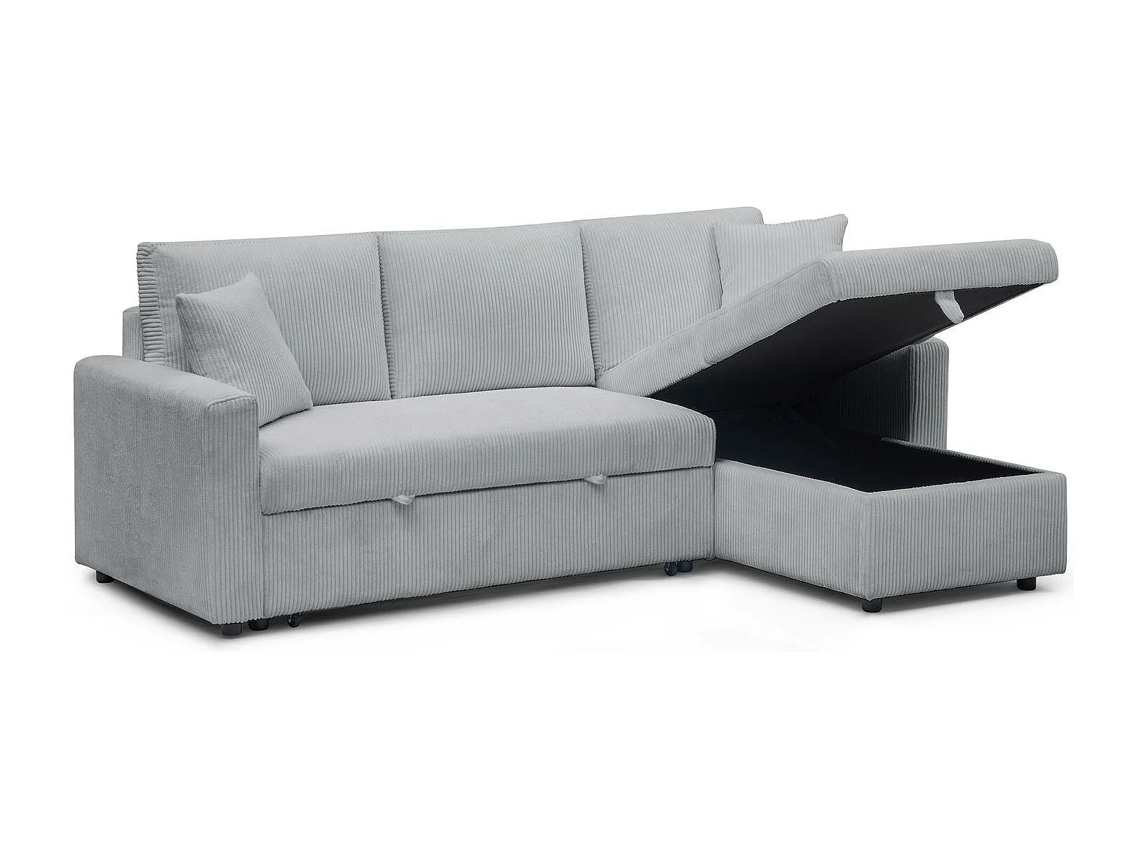 Canapé d'angle convertible avec coffre de rangement réversible Toledo Velours côtelé Argent