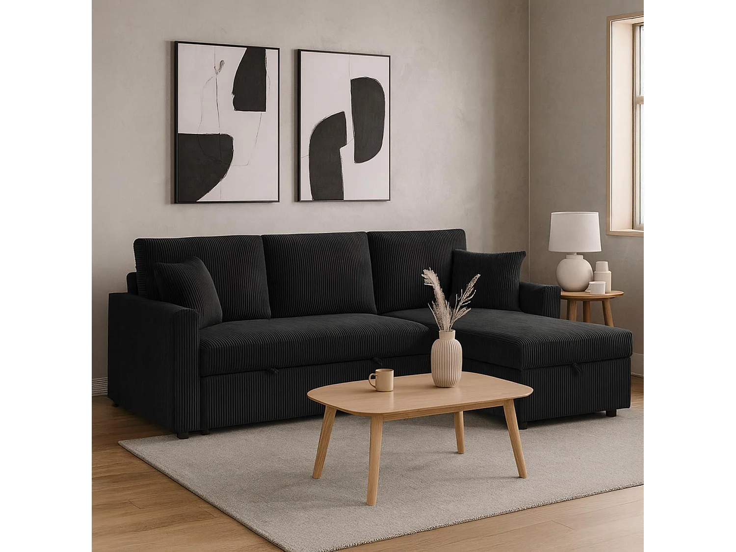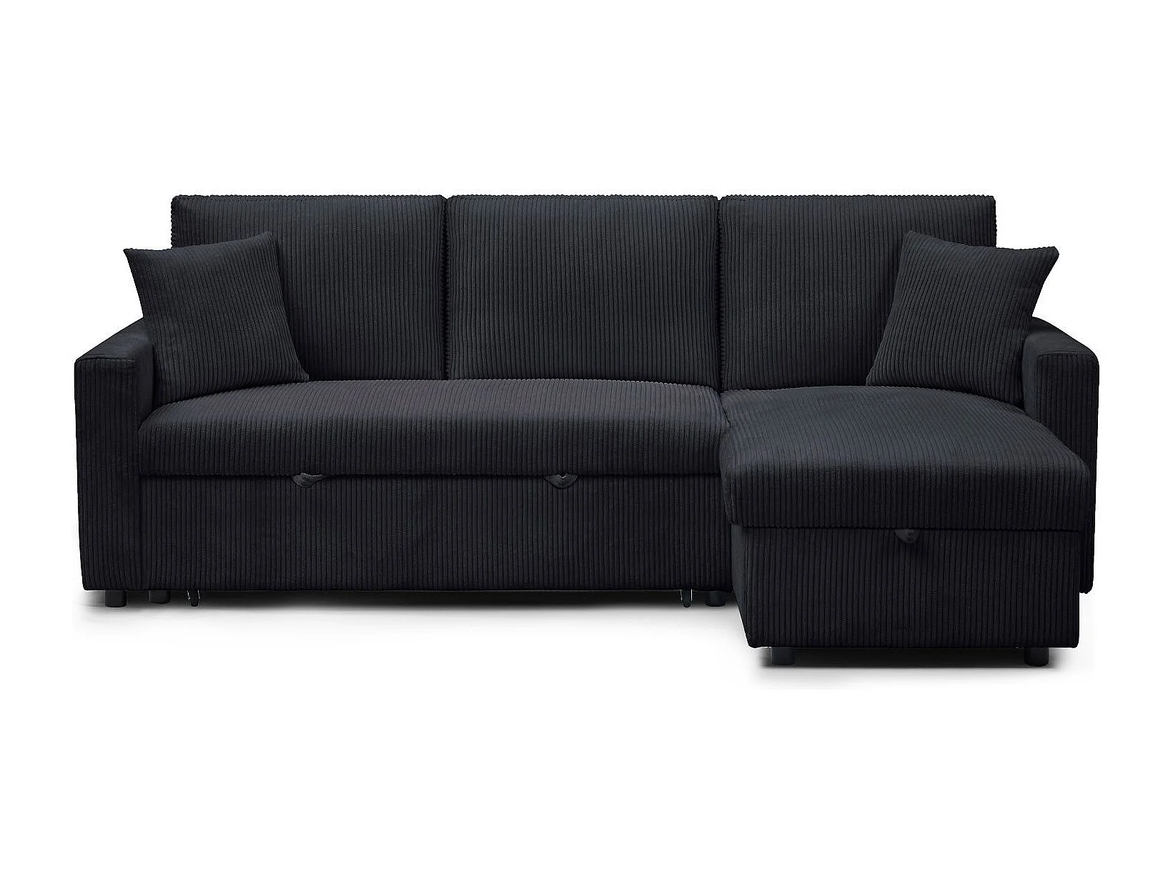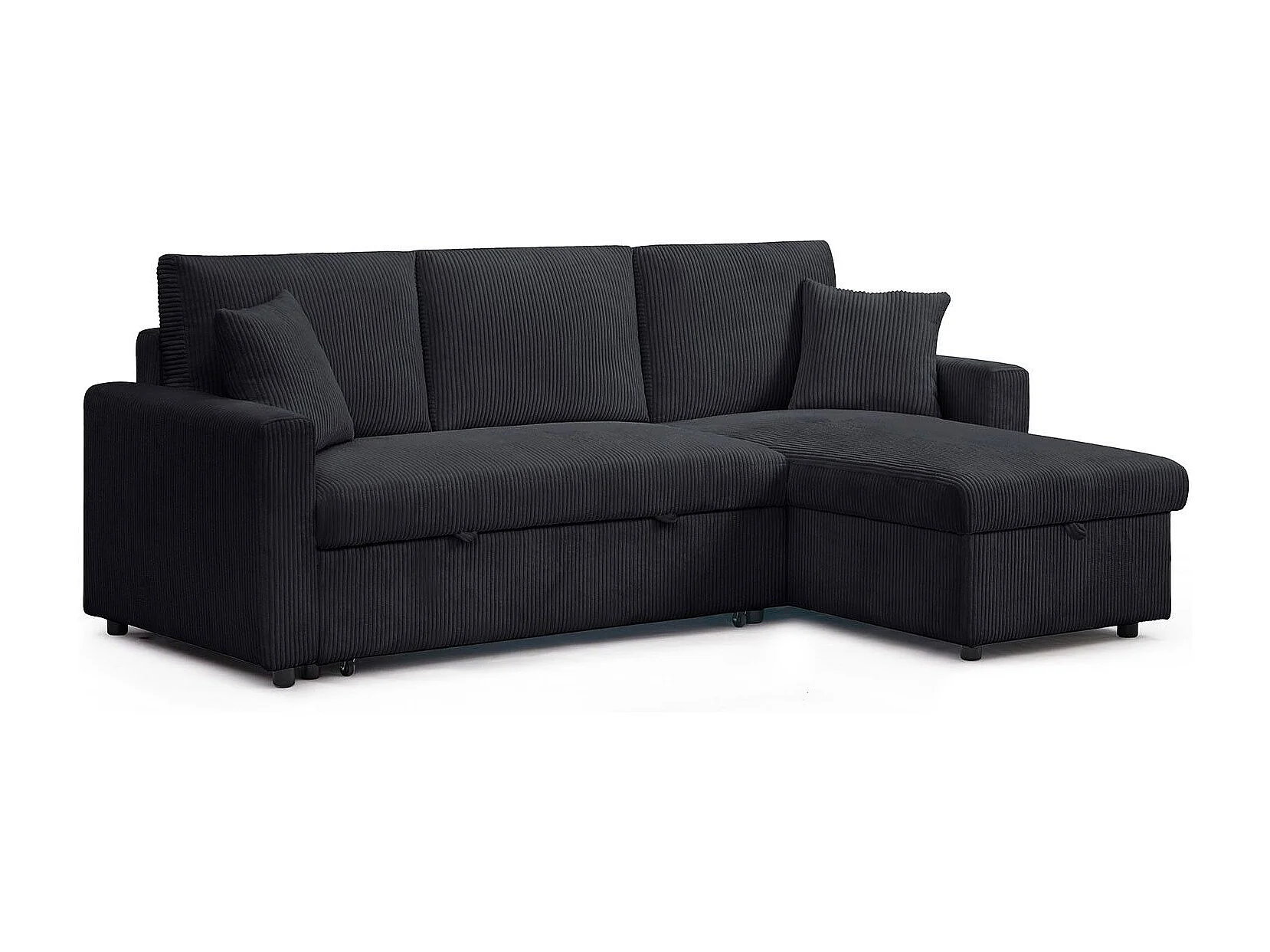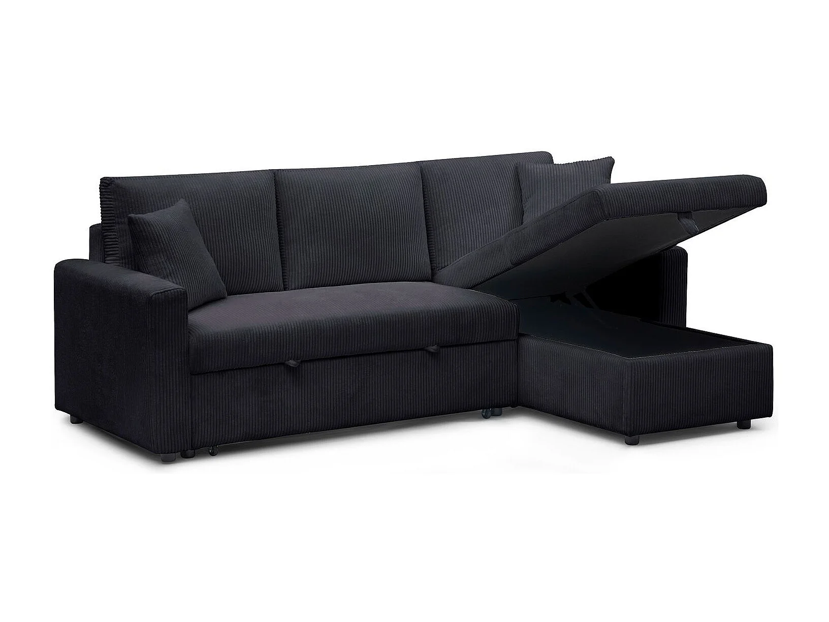 Canapé d'angle convertible avec coffre de rangement réversible Toledo Velours côtelé Noir