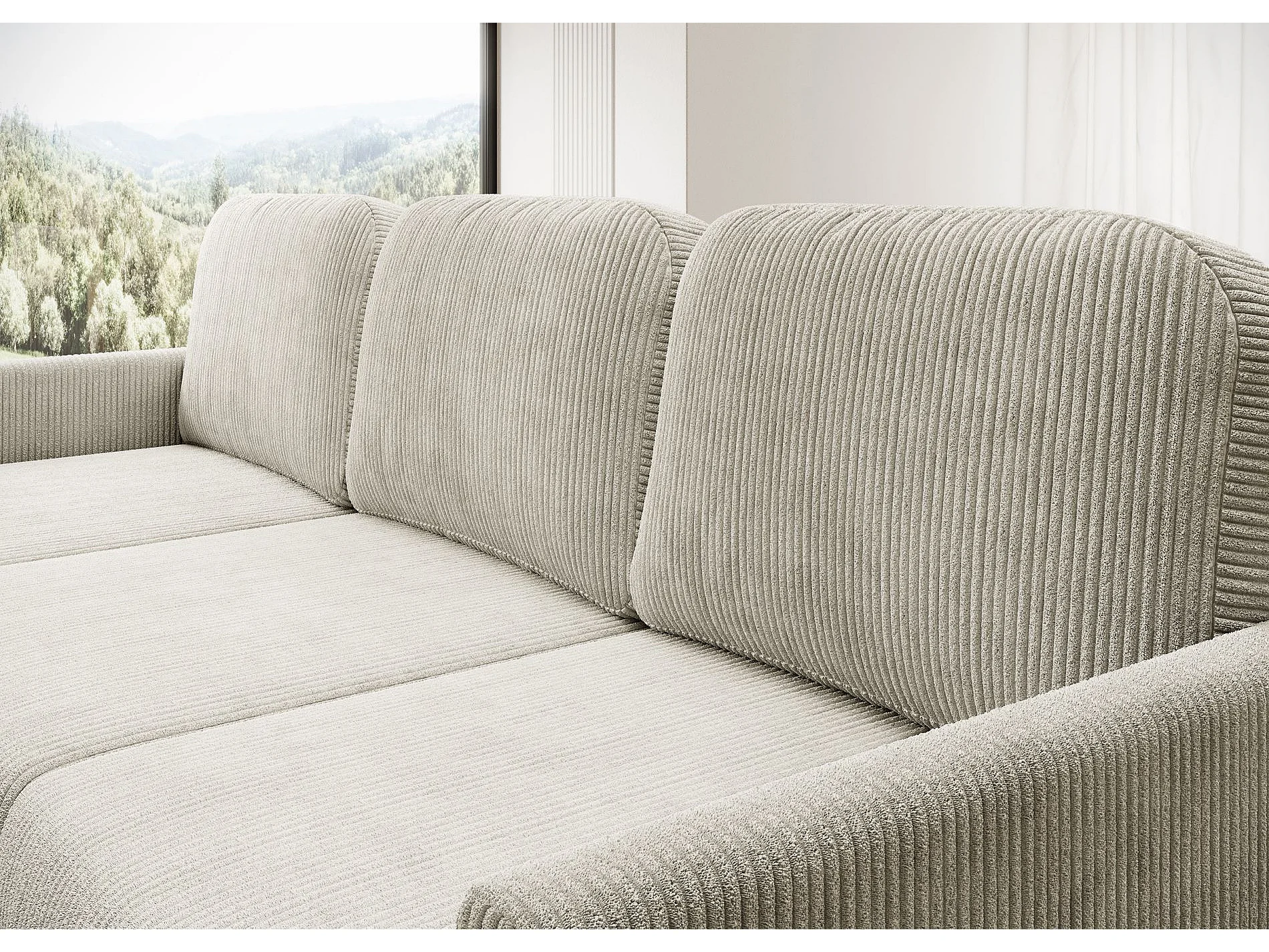 Canapé d'angle convertible avec coffre – Velours côtelé – Universel – Beige clairs – HAMIEL