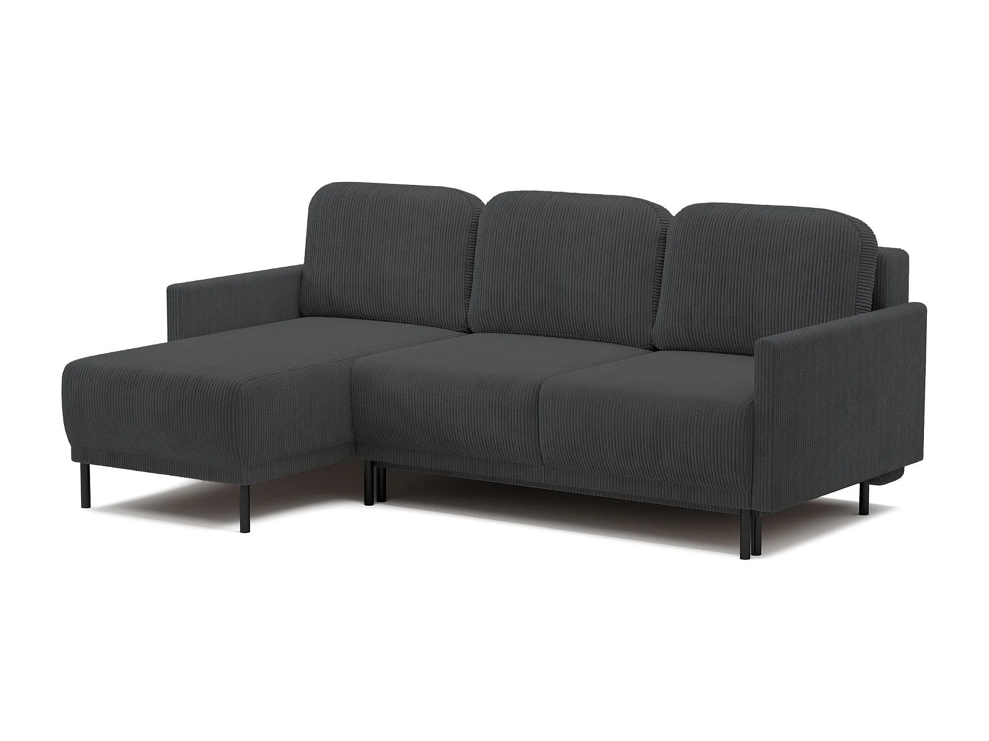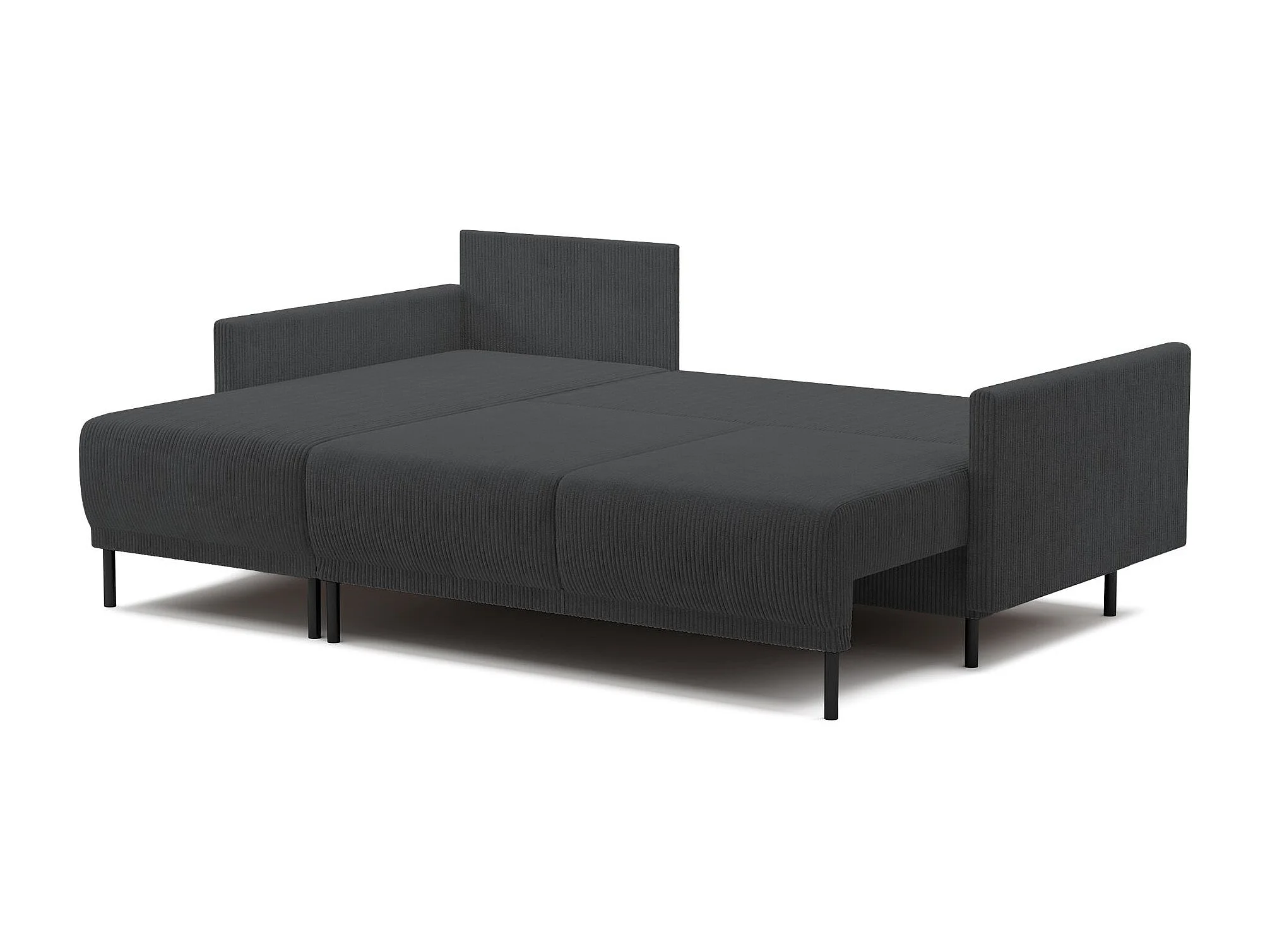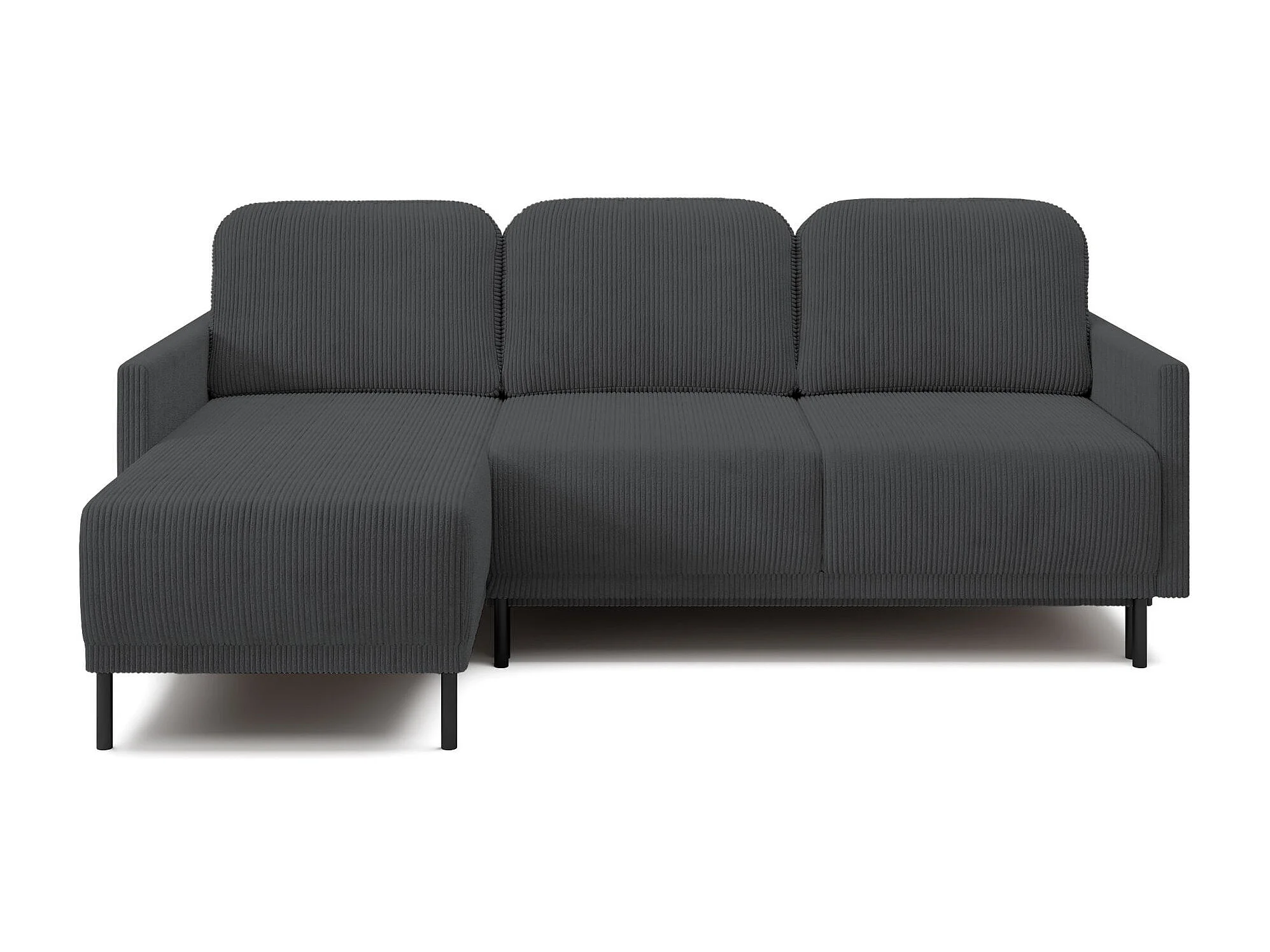 Canapé d'angle convertible avec coffre – Velours côtelé – Universel – Gris bleu – HAMIEL