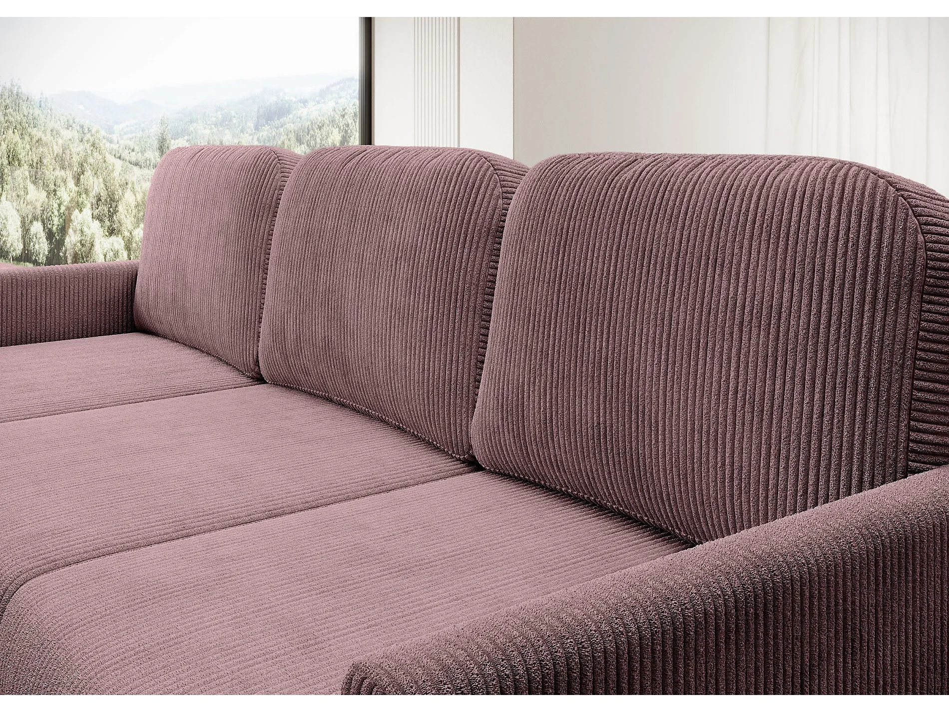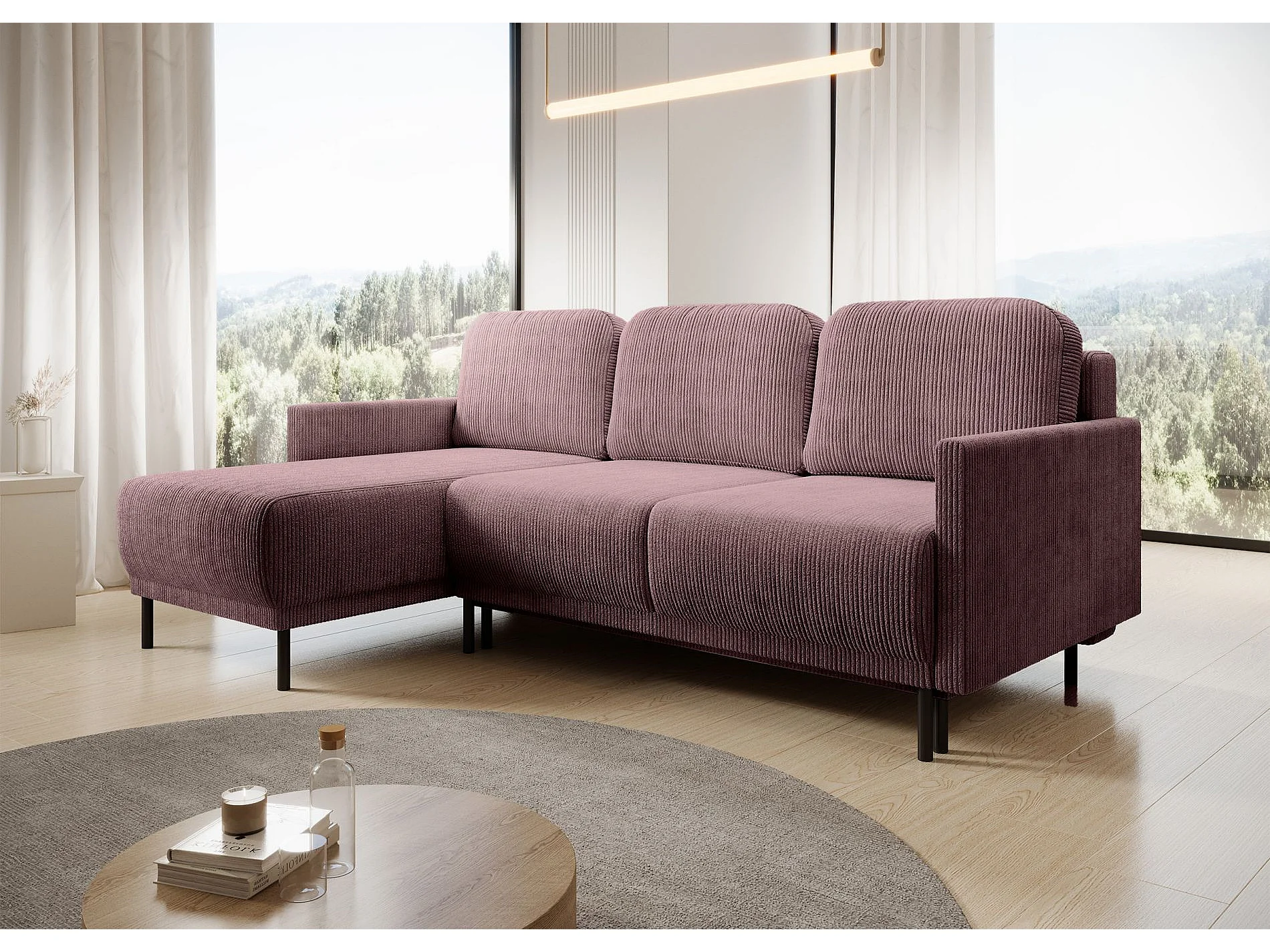 Canapé d'angle convertible avec coffre – Velours côtelé – Universel – Violet – HAMIEL