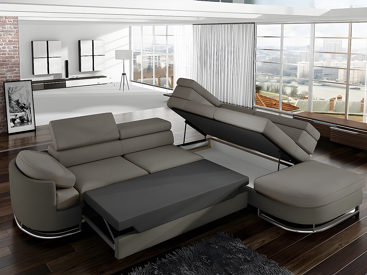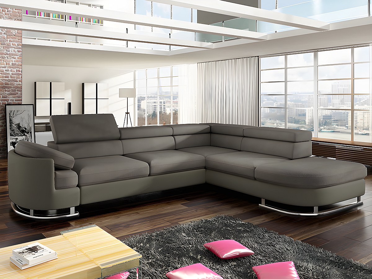 Canapé d'angle convertible en tissu et simili MYSEN - Taupe - Angle droit