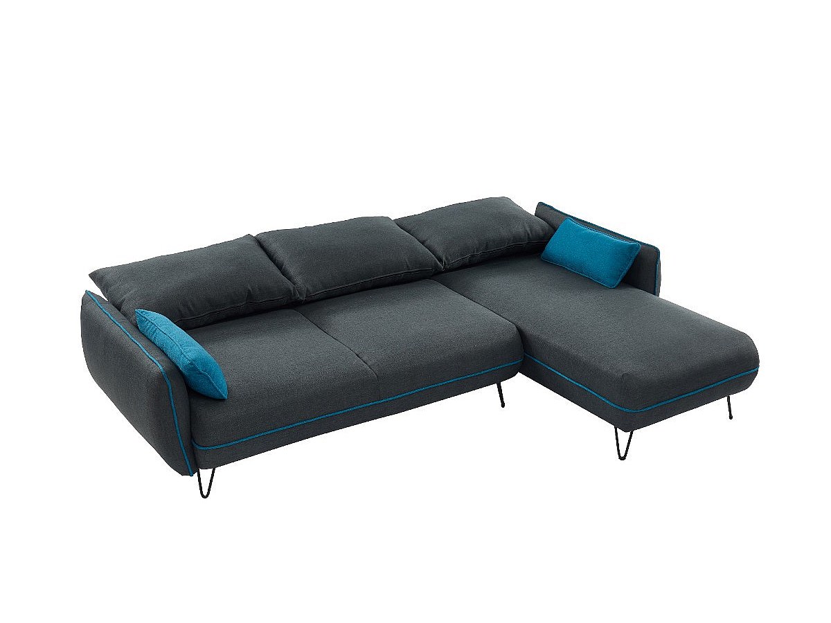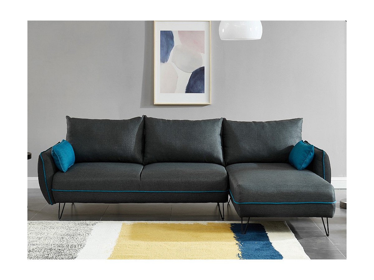 Canapé d'angle convertible et réversible en tissu LIVICARICK - Anthracite et passepoil bleu