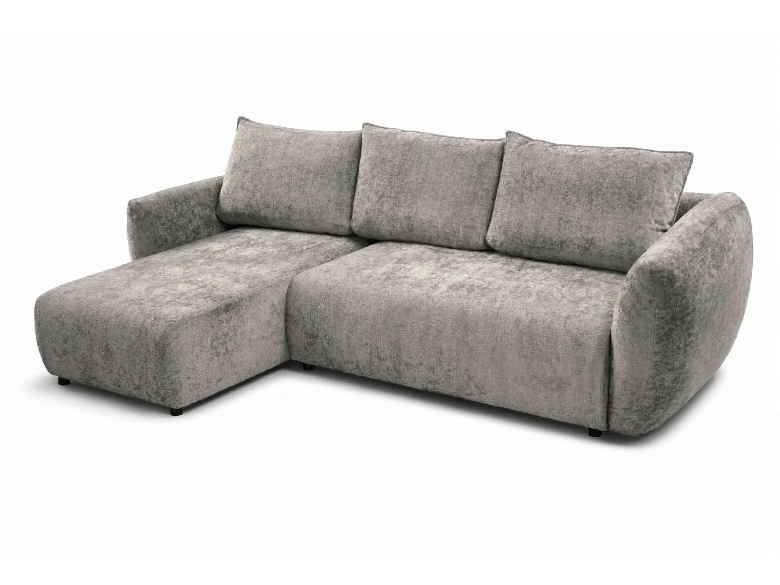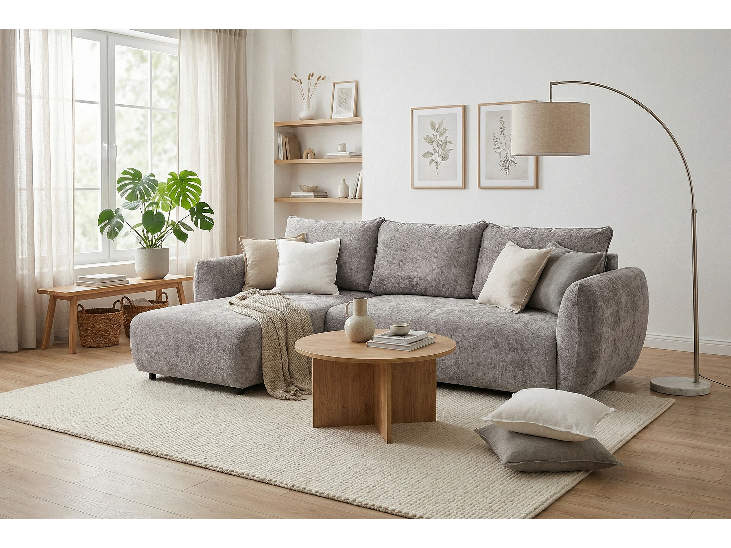 Canapé d’angle convertible gauche ZEPHIRA 258 × 170 cm en tissu FLOW 1 gris