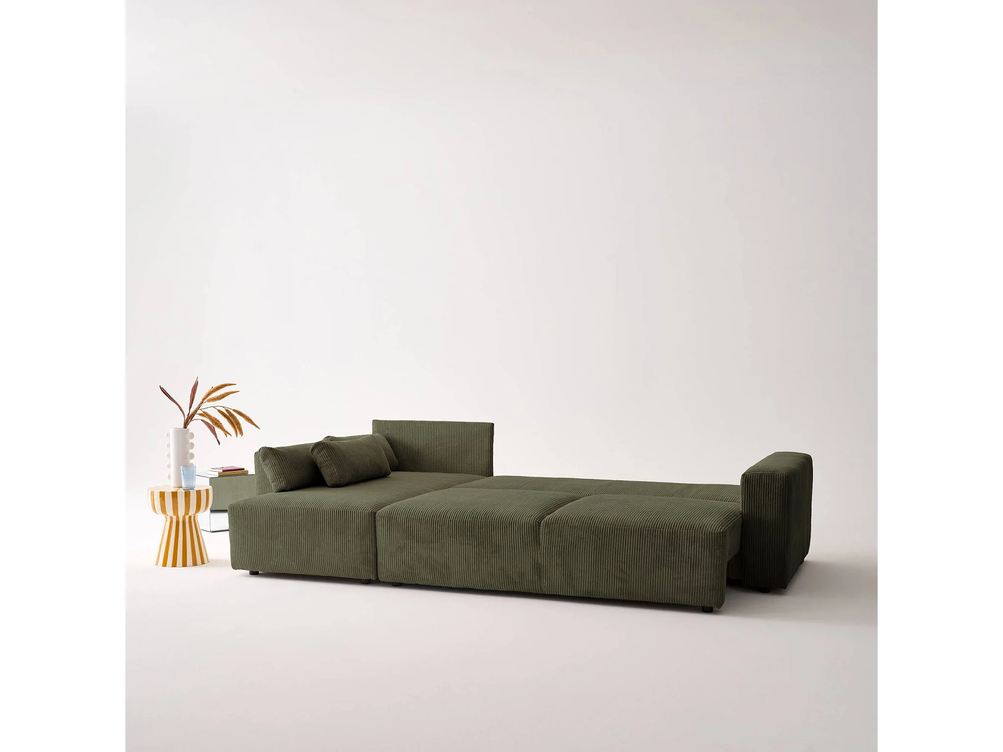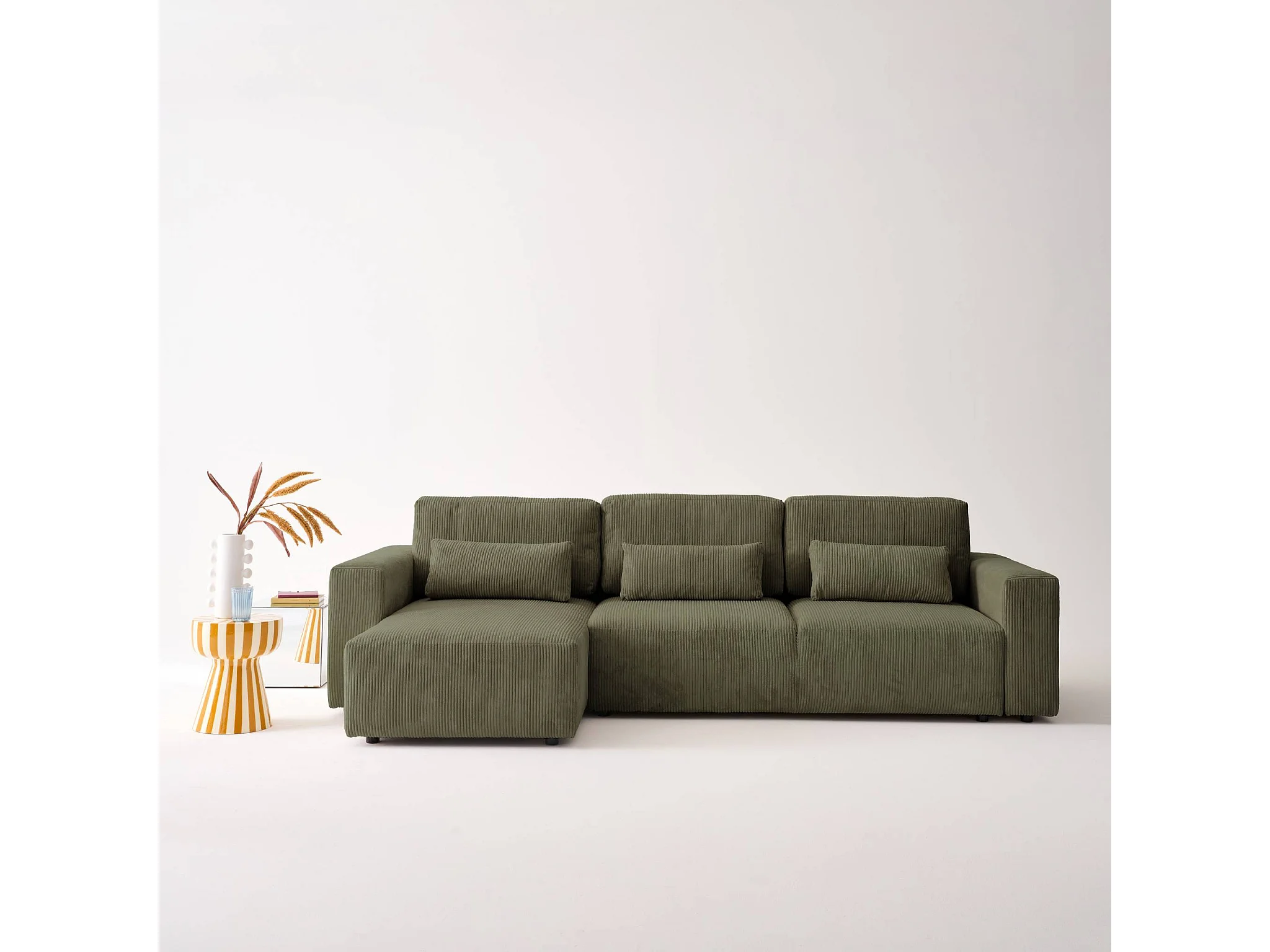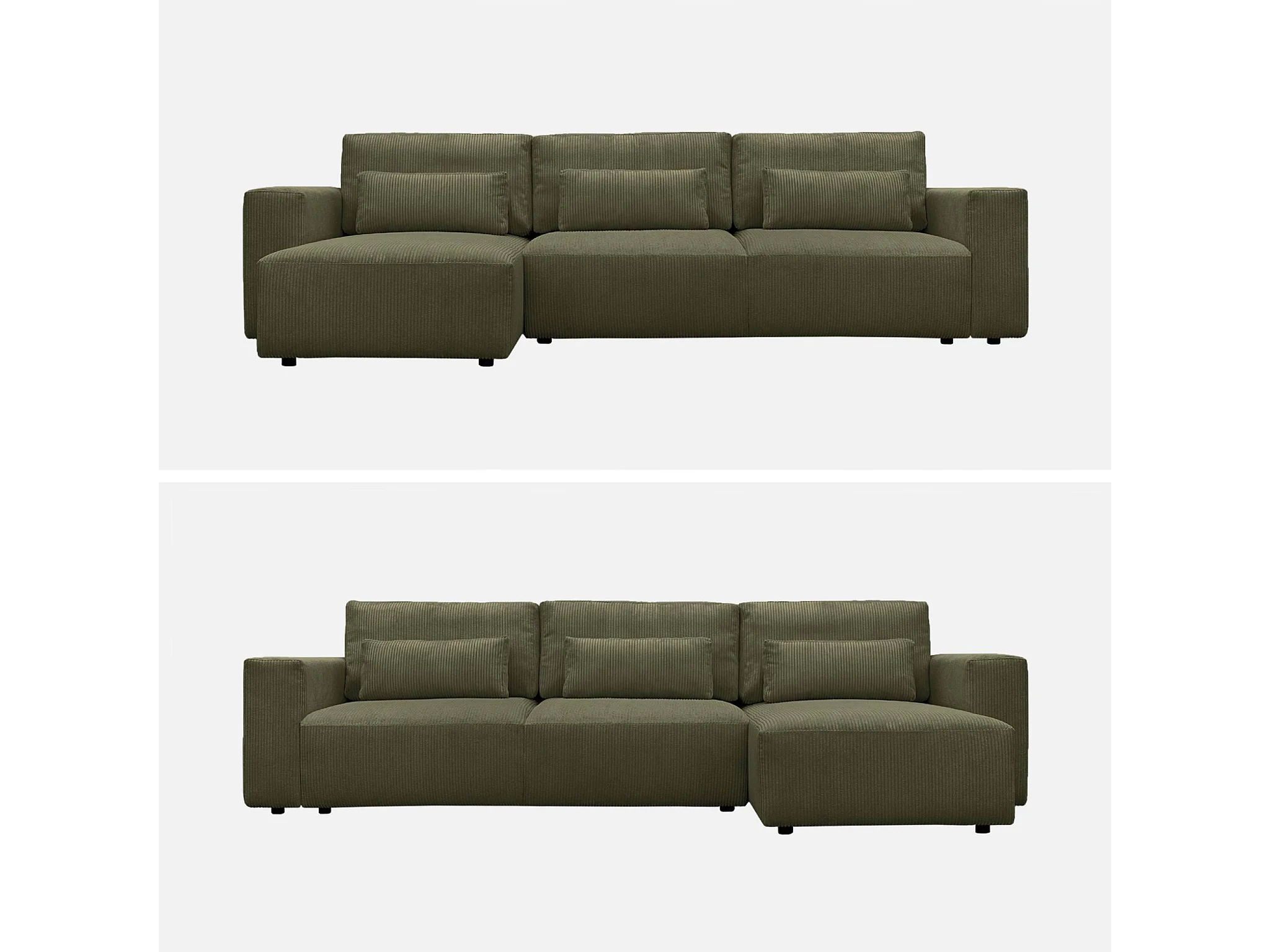 Canapé d'angle convertible réversible 5 places velours côtelé kaki avec coffre de rangement - Theo