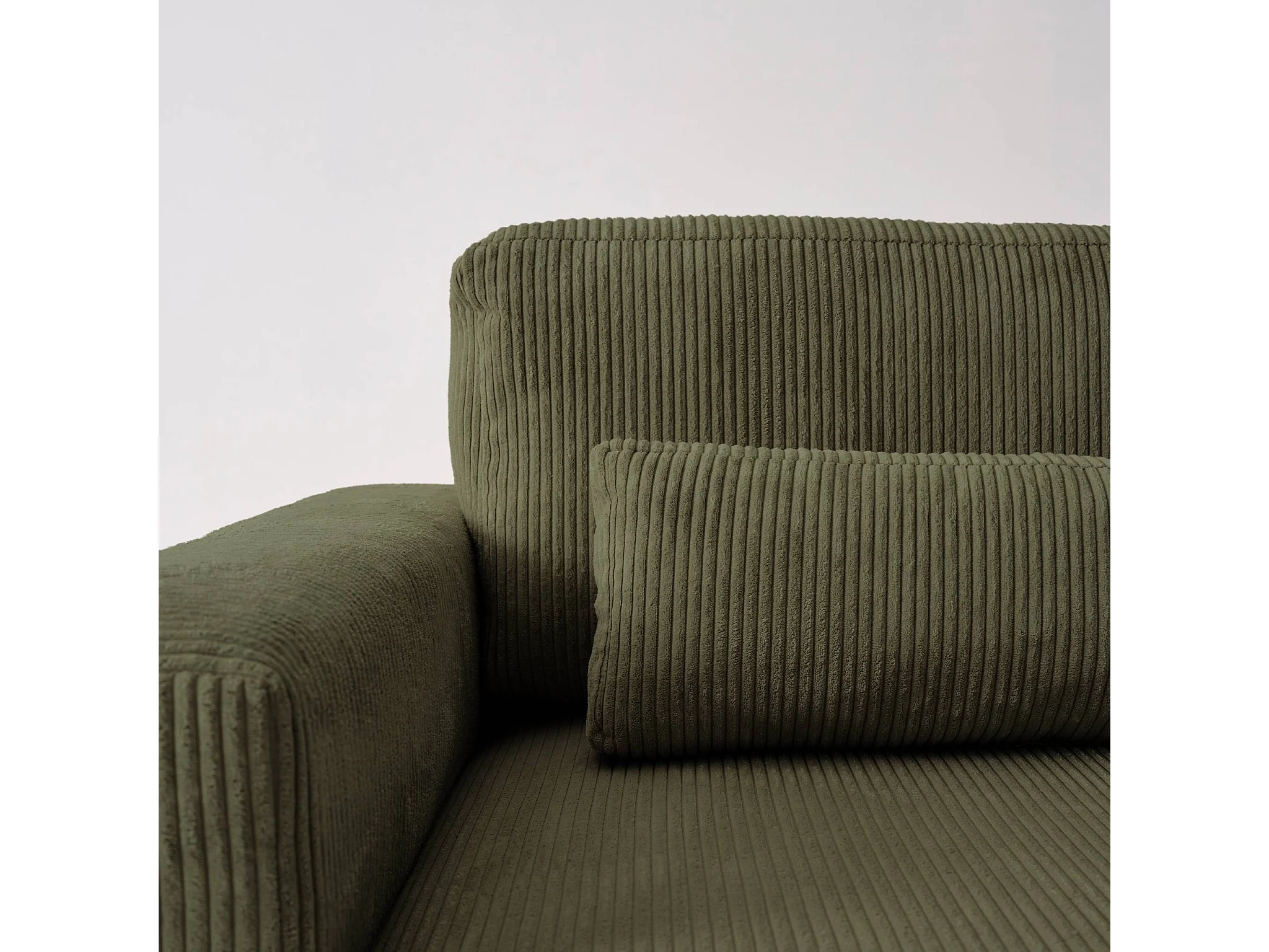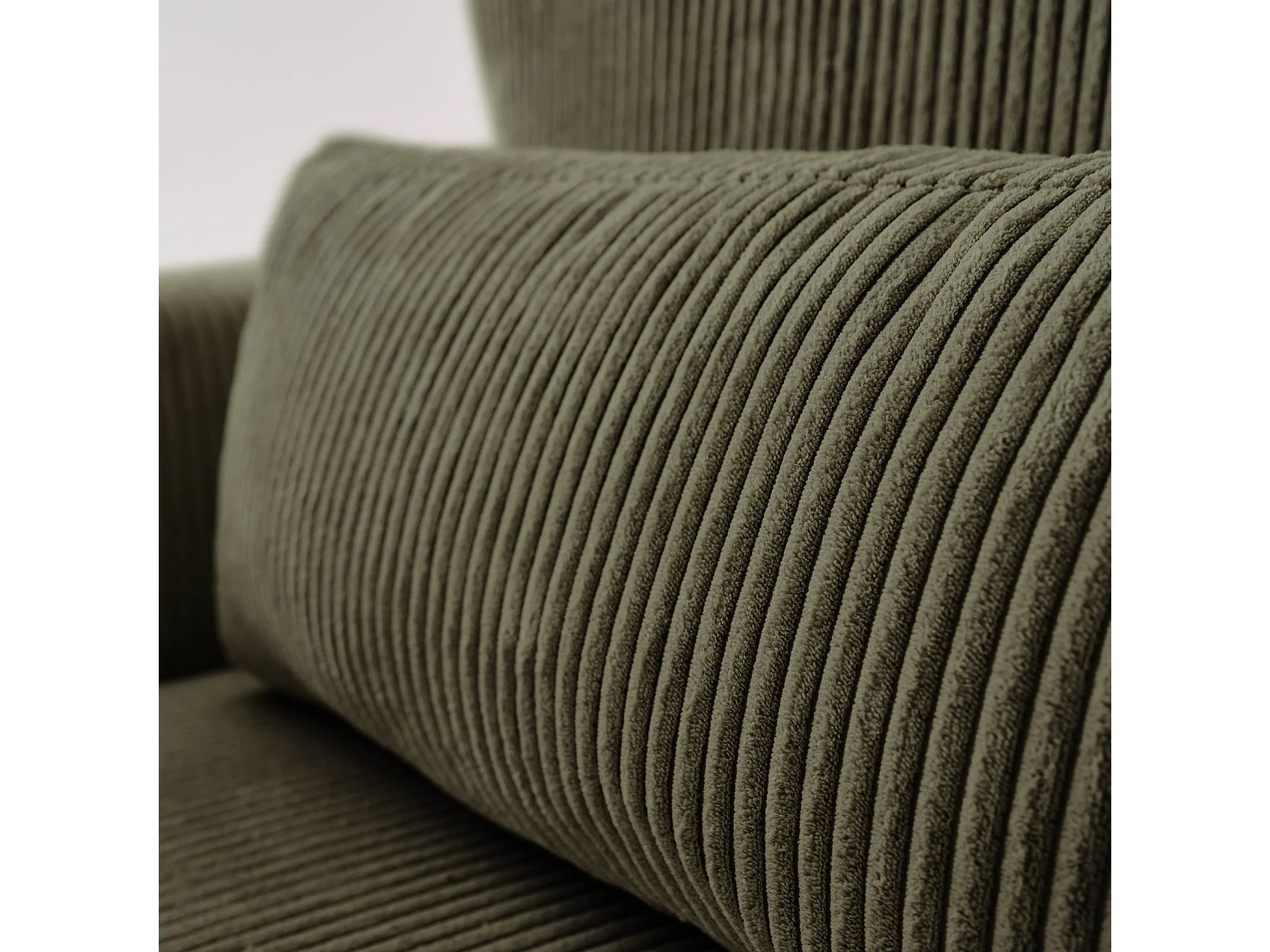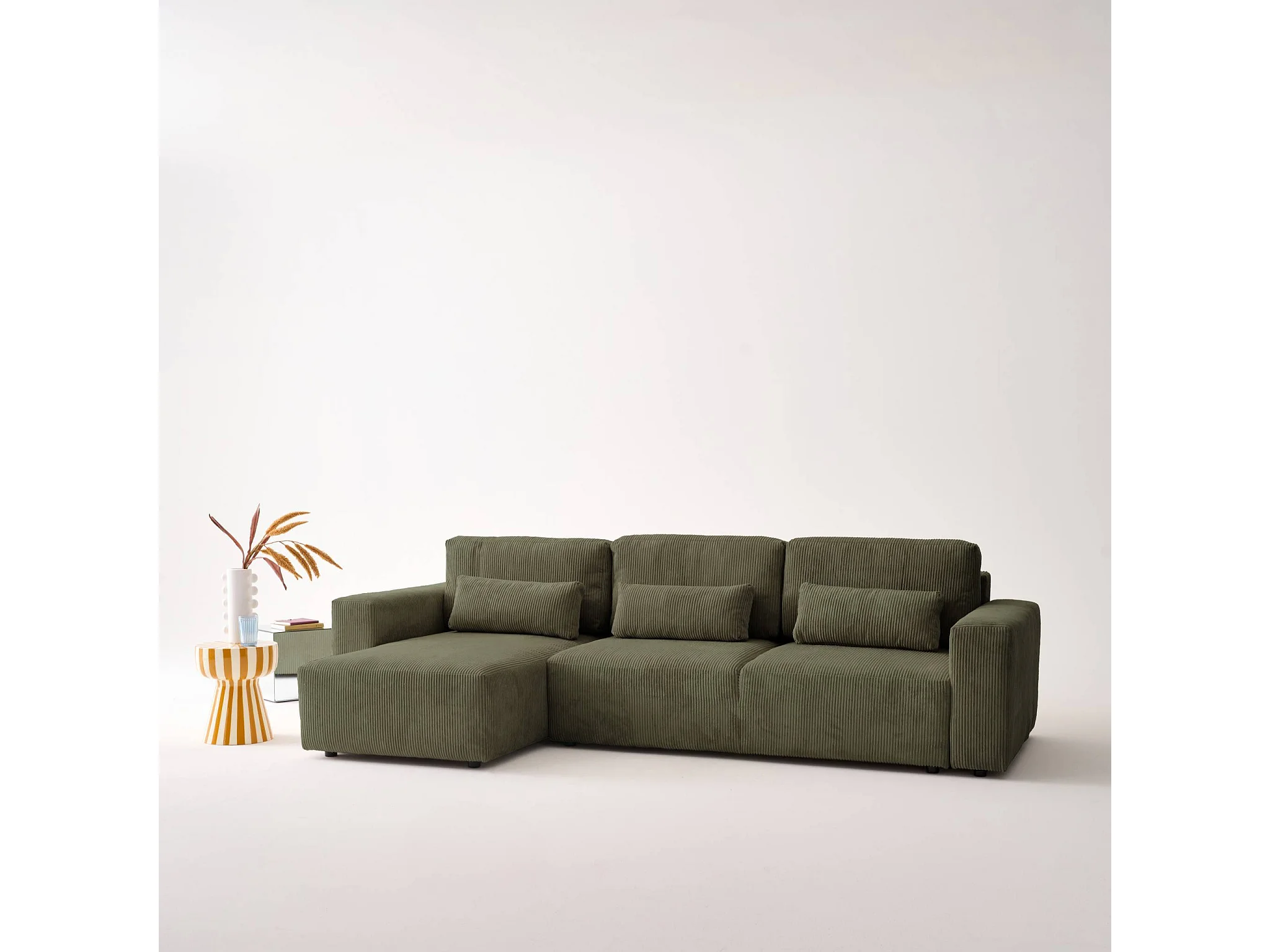 Canapé d'angle convertible réversible 5 places velours côtelé kaki avec coffre de rangement - Theo