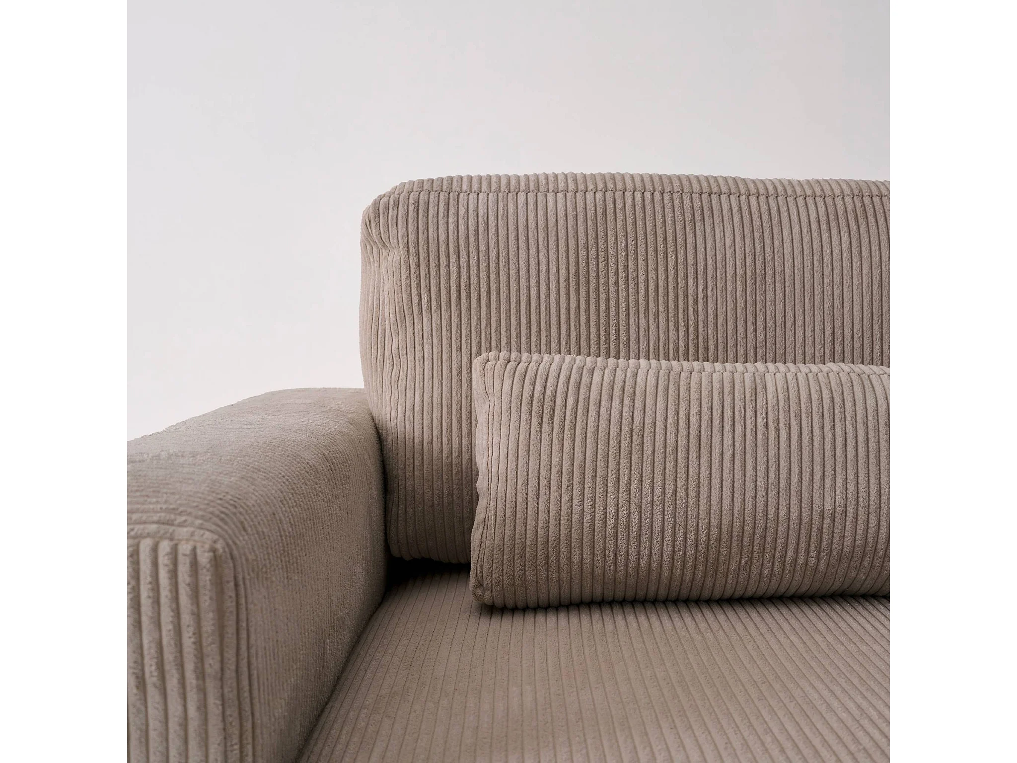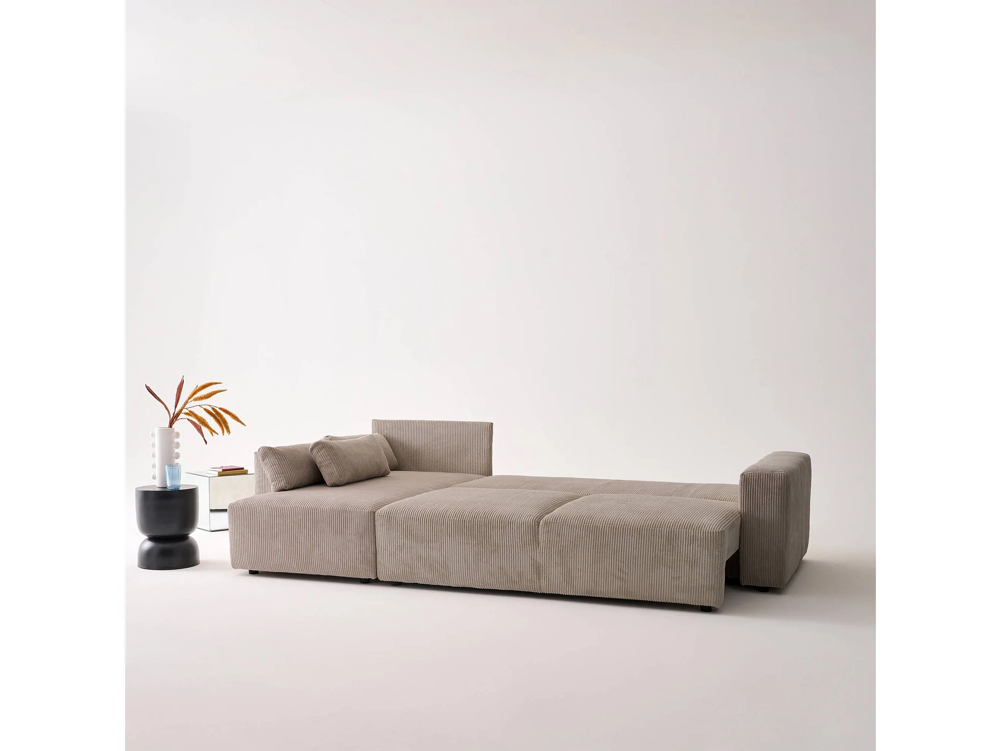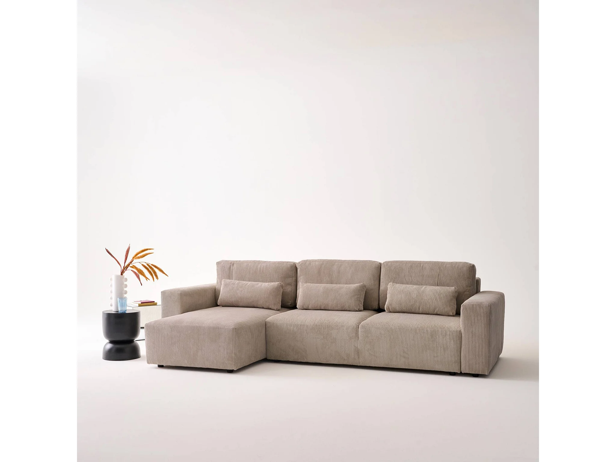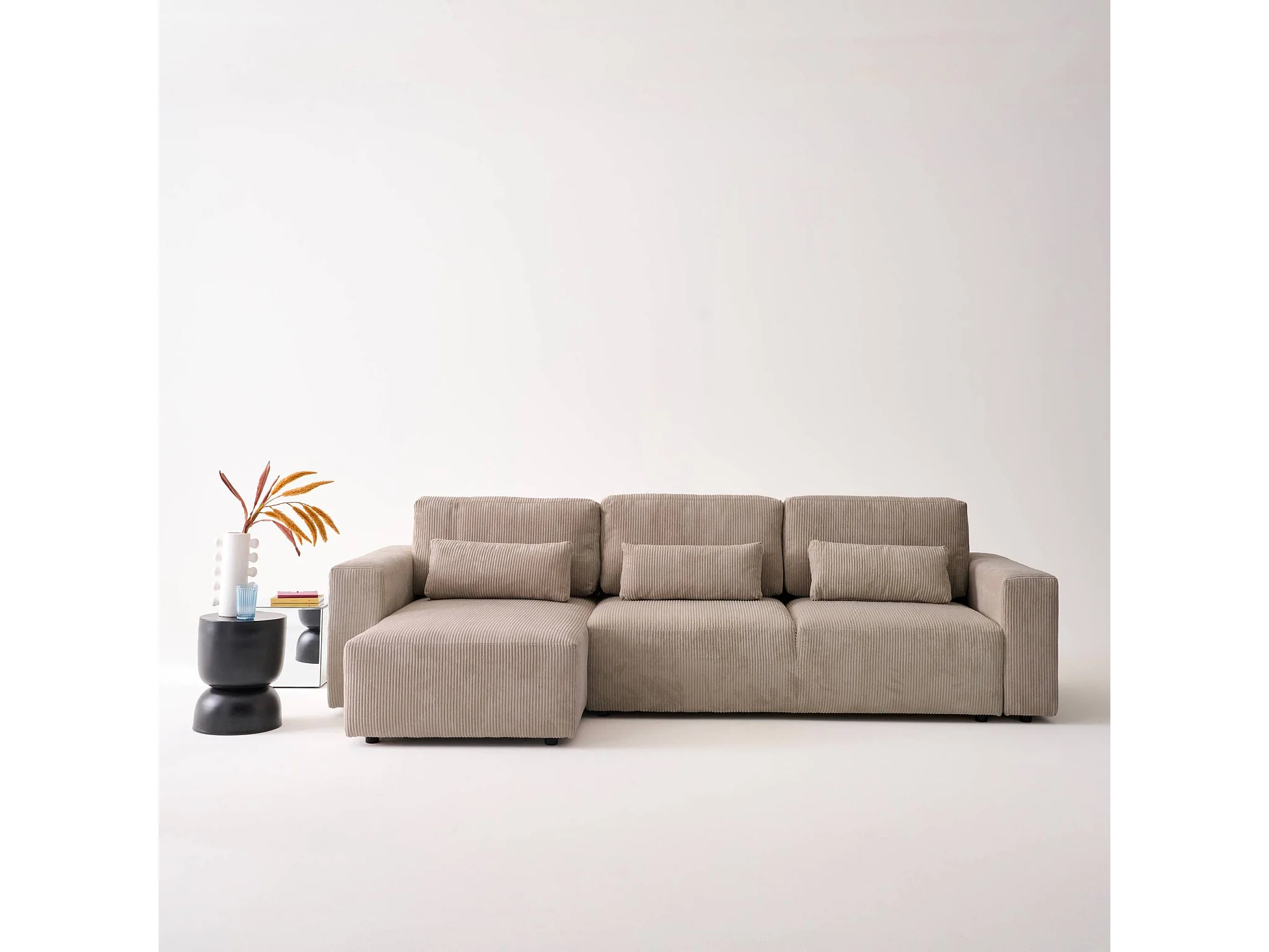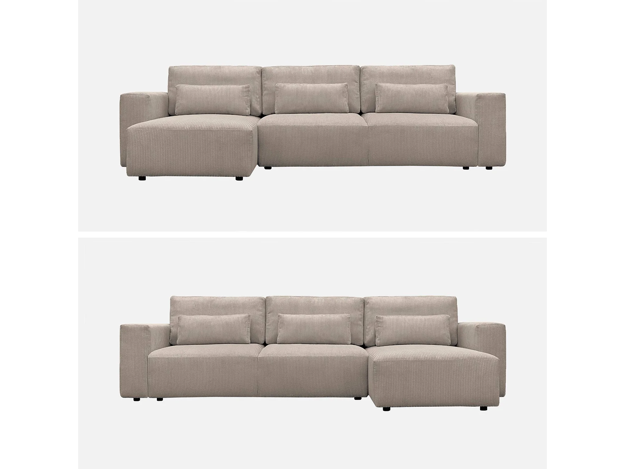 Canapé d'angle convertible réversible 5 places velours côtelé taupe avec coffre de rangement - Theo