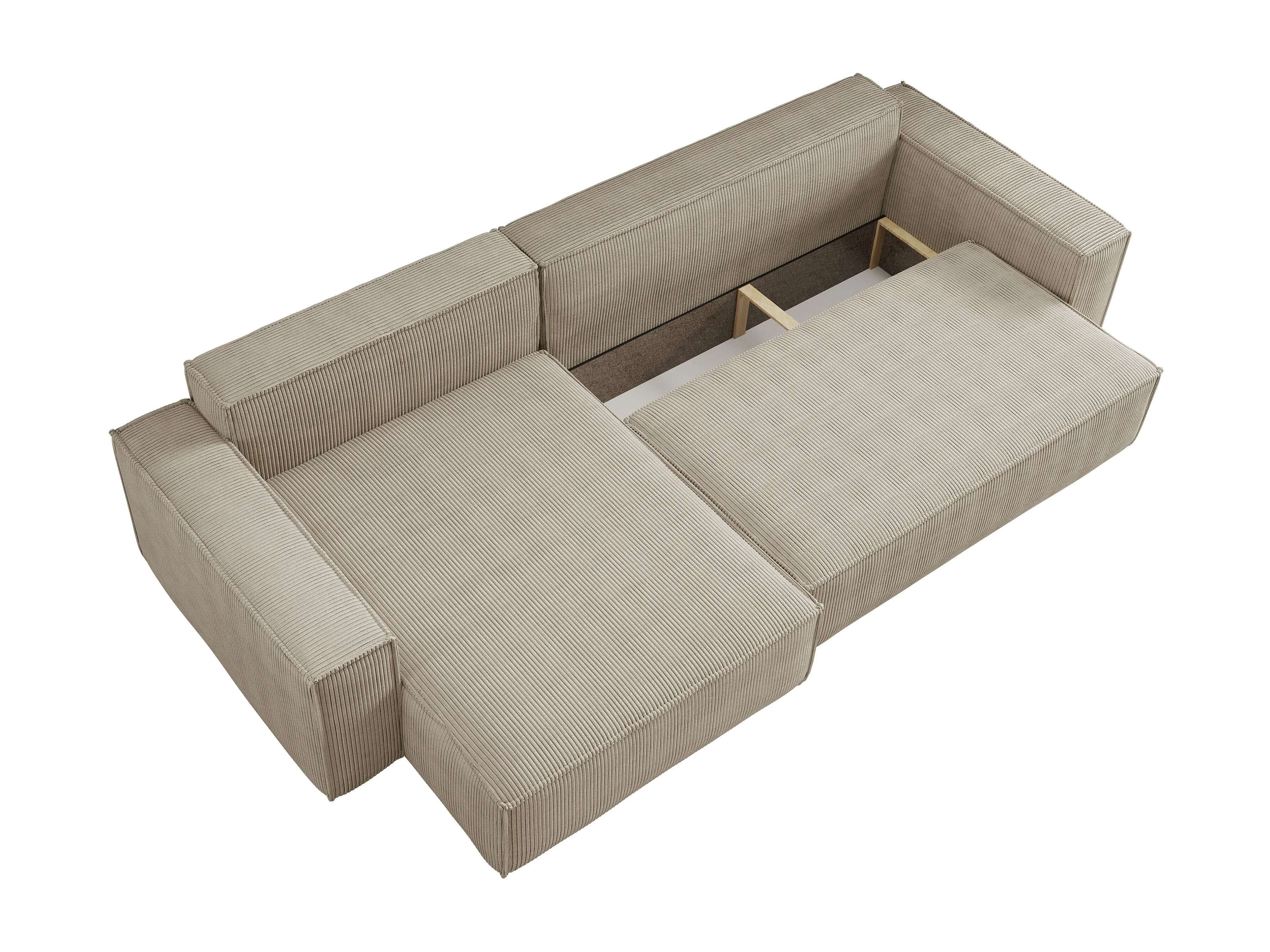 Canapé d’angle convertible réversible CARLOS XL – Velours côtelé beige, grand coffre, fonction couchage, montage universel