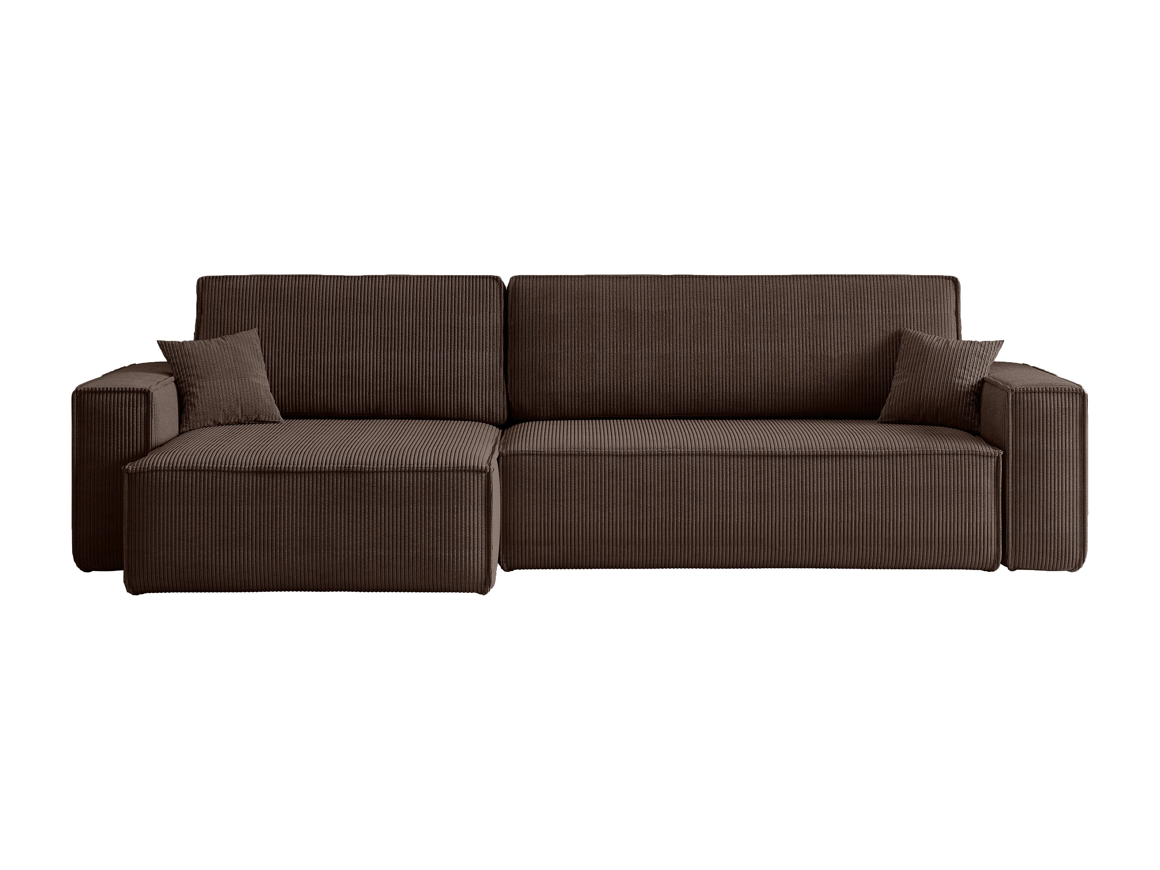 Canapé d’angle convertible réversible CARLOS XL – Velours côtelé brun chocolat, grand coffre, fonction couchage, montage universel
