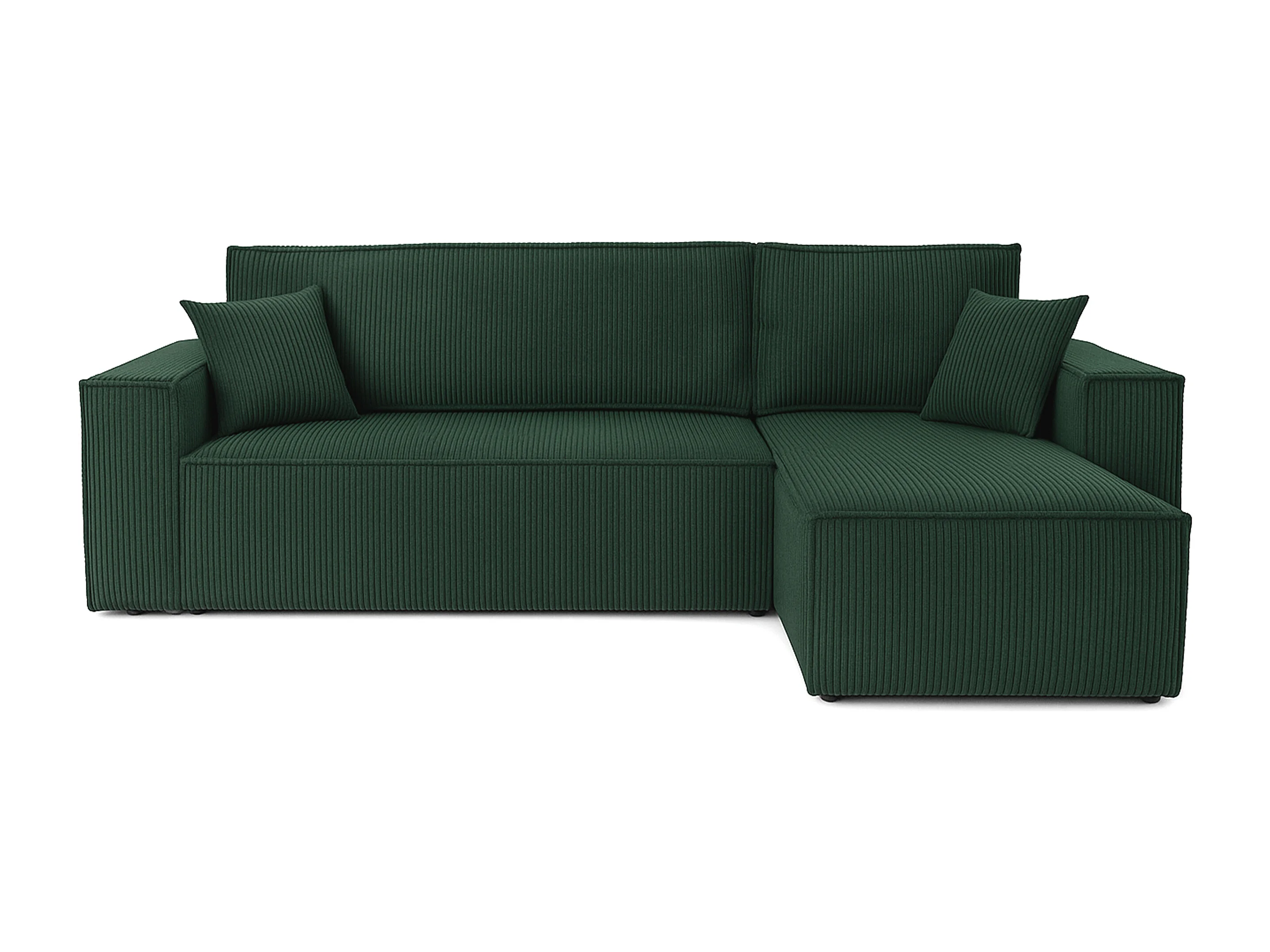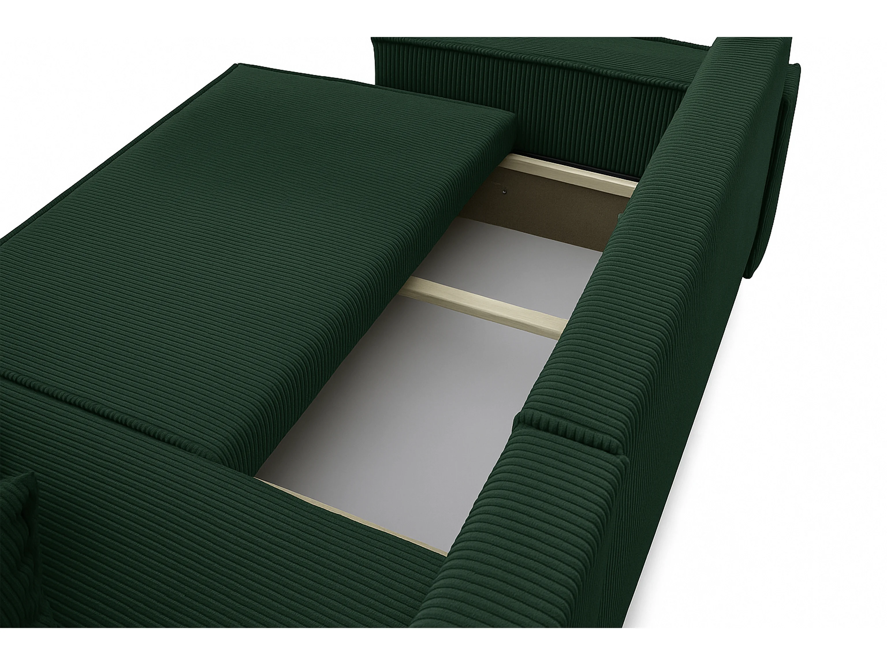 Canapé d’angle convertible réversible, velours côtelé beige, grand coffre de rangement, fonction couchage, montage universel gauche/droite CARLOS L - VINOTTI