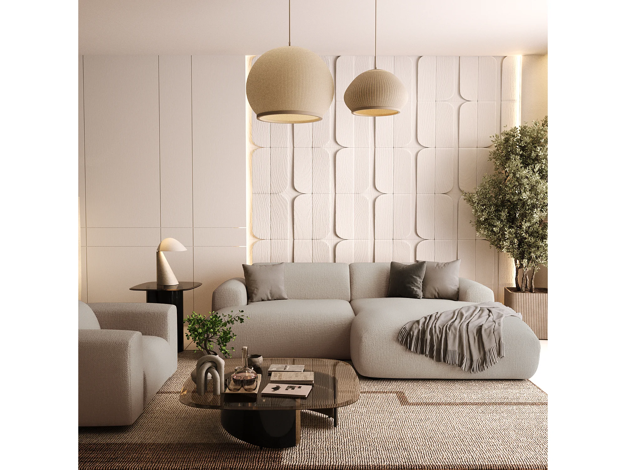Canapé d'angle droit 4 places tissu tramé beige 266cm MYRA