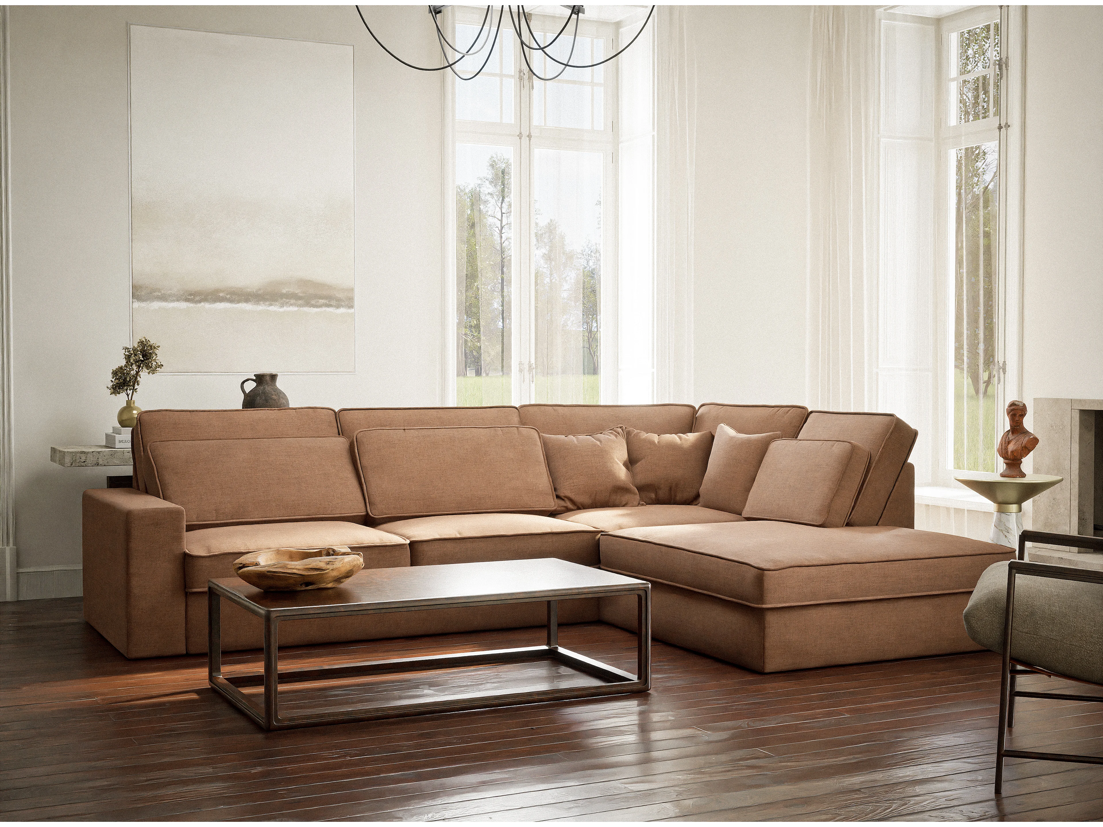 Canapé d'angle droit 5 places en tissu chenille bronze KIROU