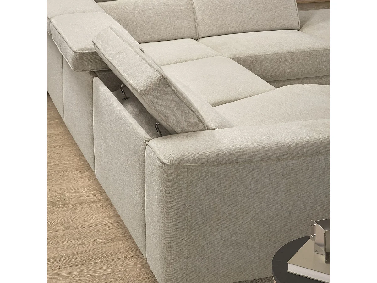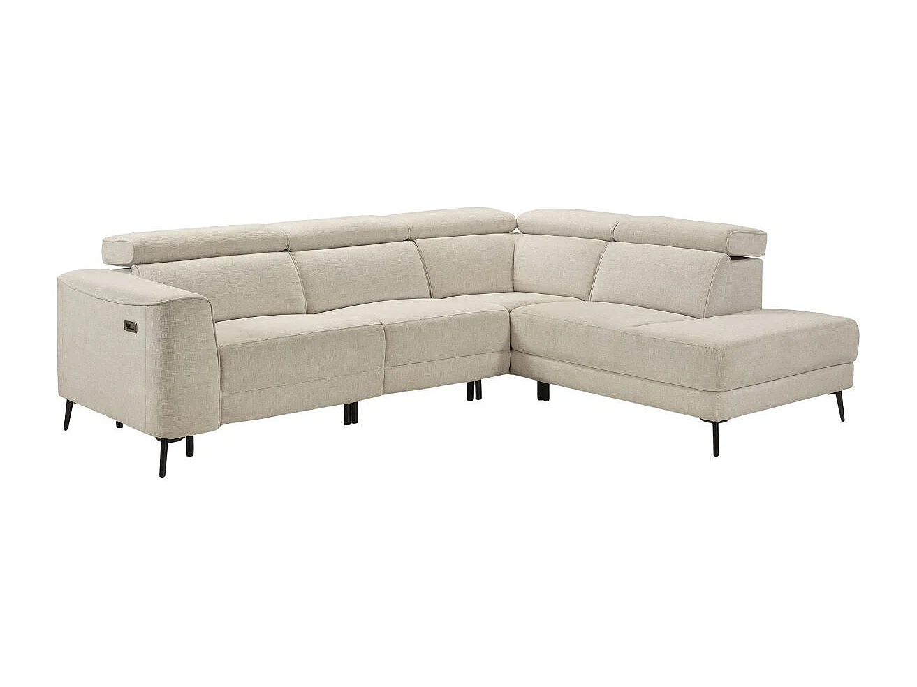 Canapé d'angle droit avec 2 places relax électrique tissu beige - BAMAKO