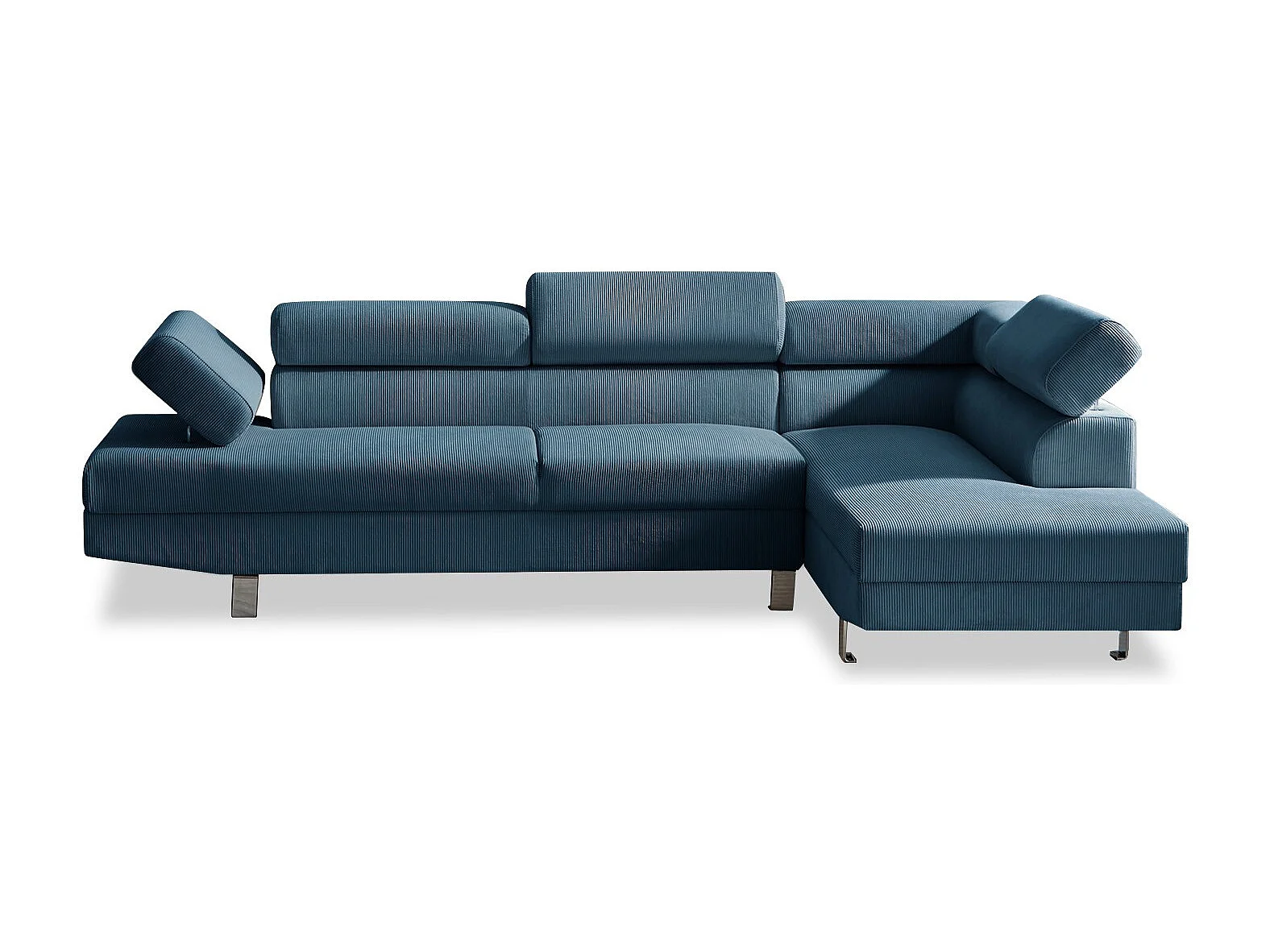 Canapé d'angle droit avec têtières relevables Palerme velours côtelé bleu