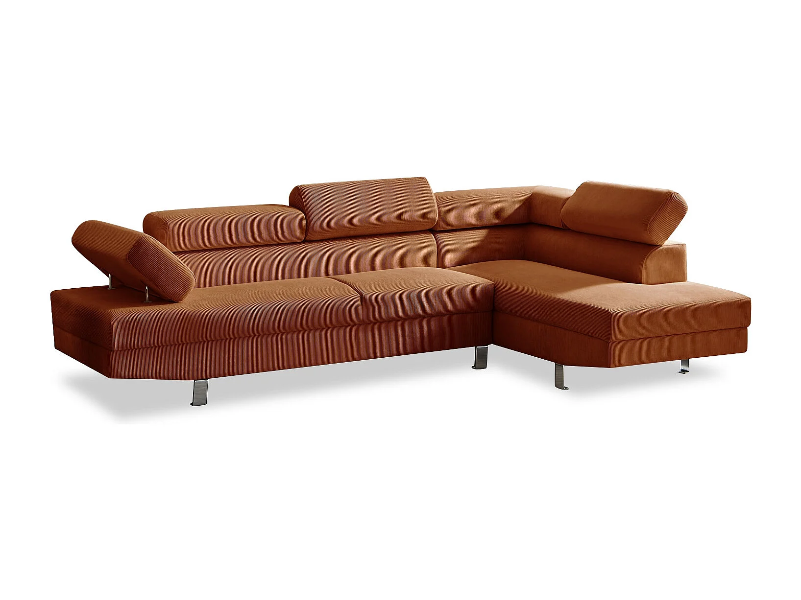 Canapé d'angle droit avec têtières relevables Palerme velours côtelé terracotta