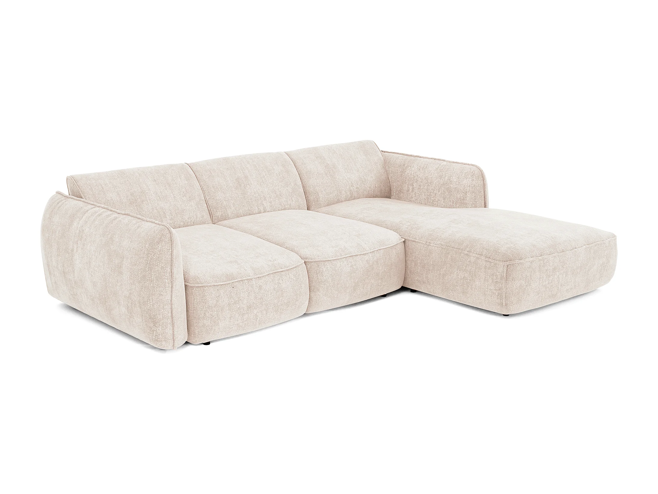 Canapé d'angle droit convertible 4 places velours tramé crème LIVIA