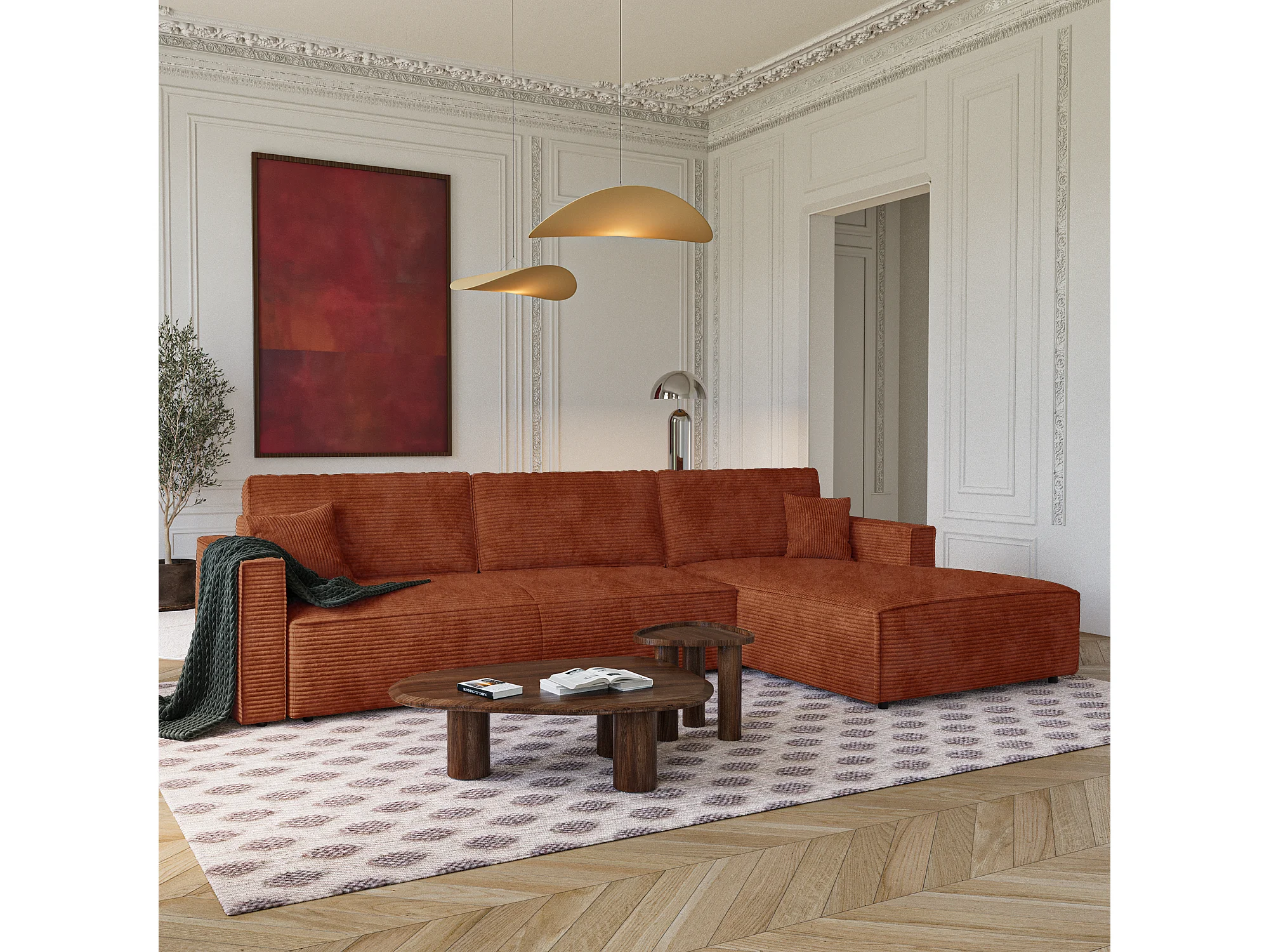 Canapé d'angle droit convertible avec coffre en Velours côtelé