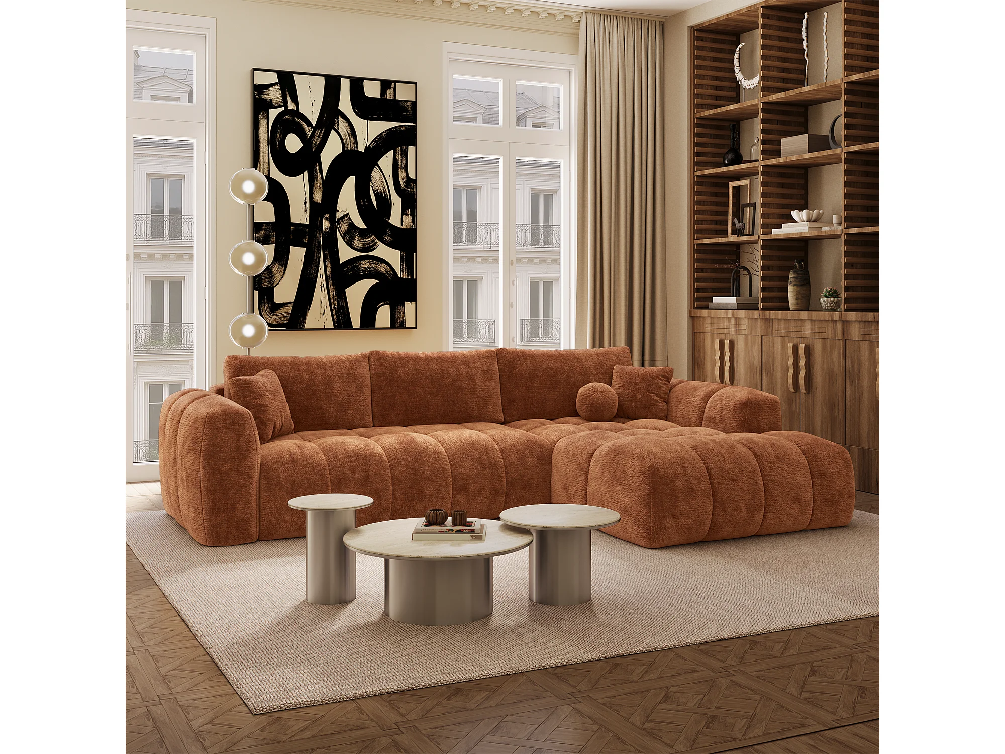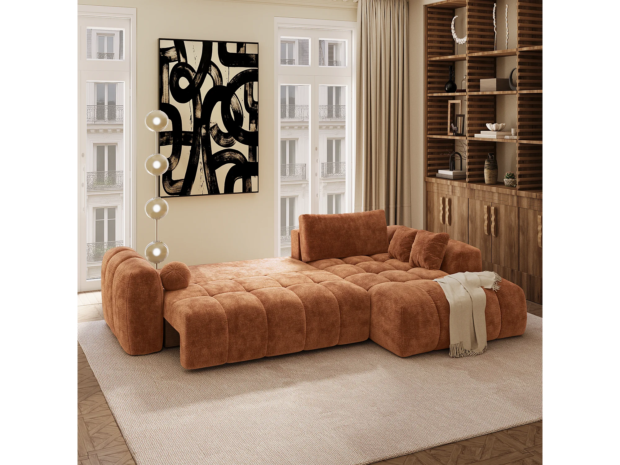 Canapé d'angle droit convertible avec coffre SKY en Velours gaufré