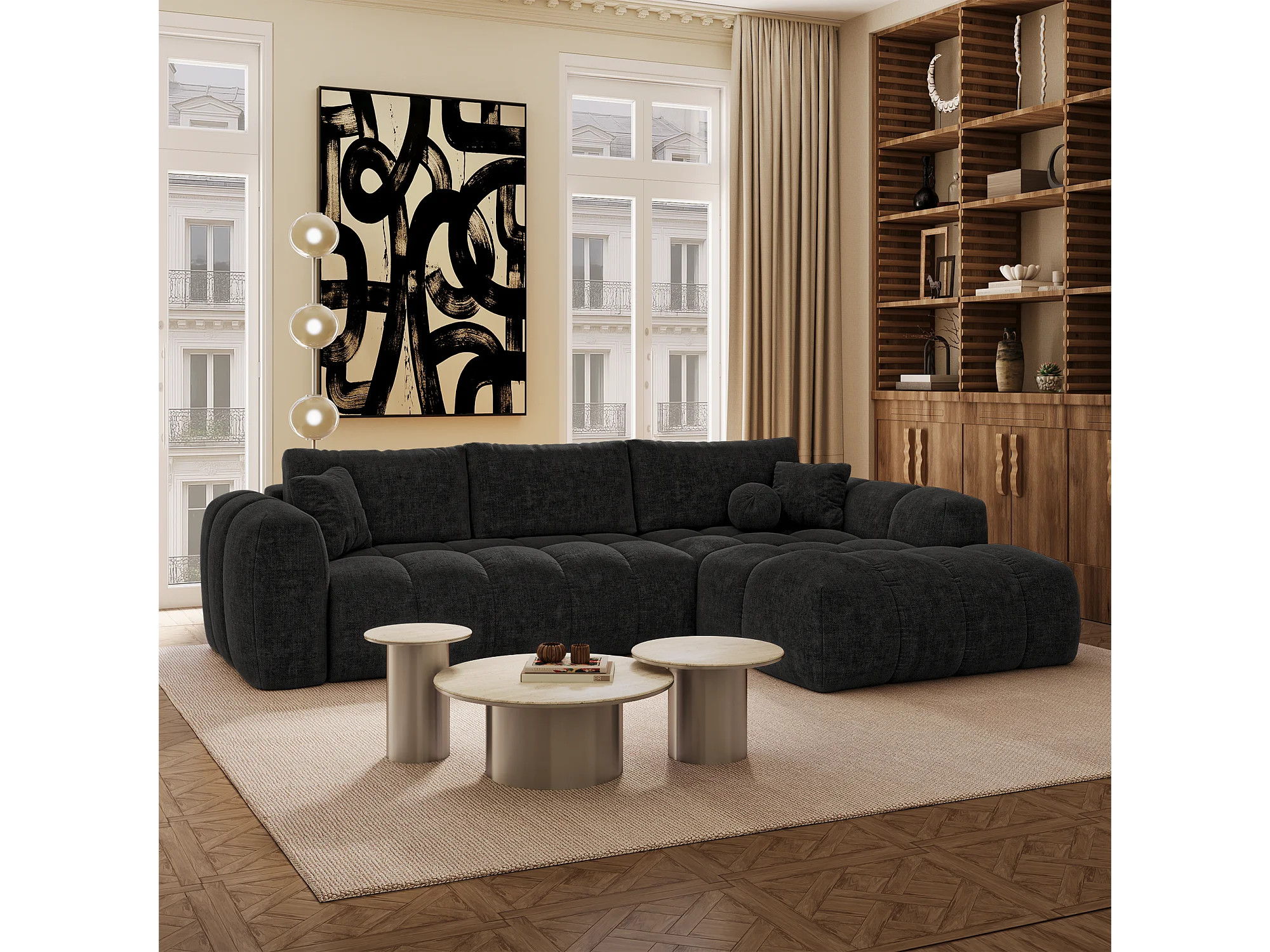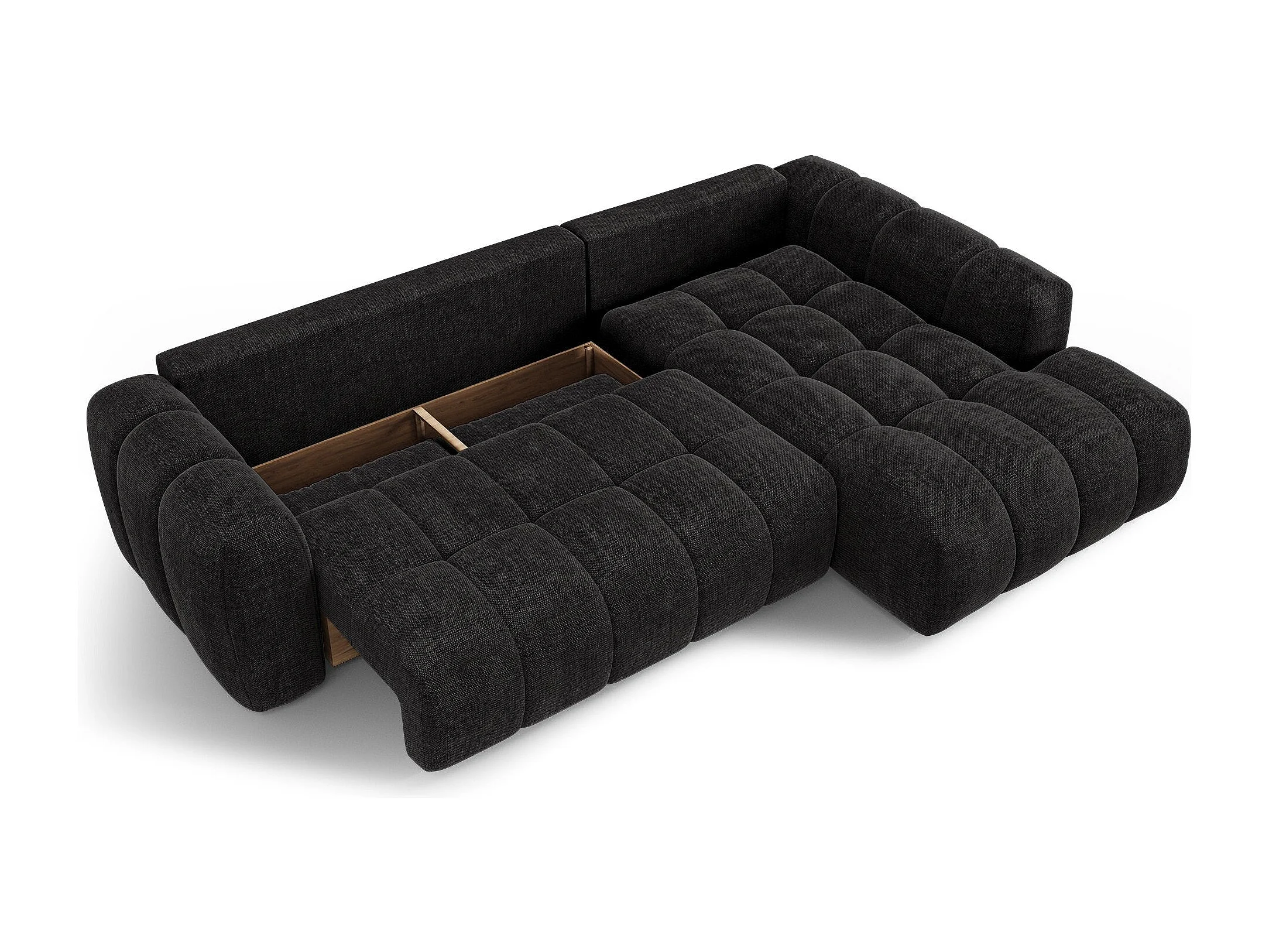 Canapé d'angle droit convertible avec coffre SKY en Tissu tramé
