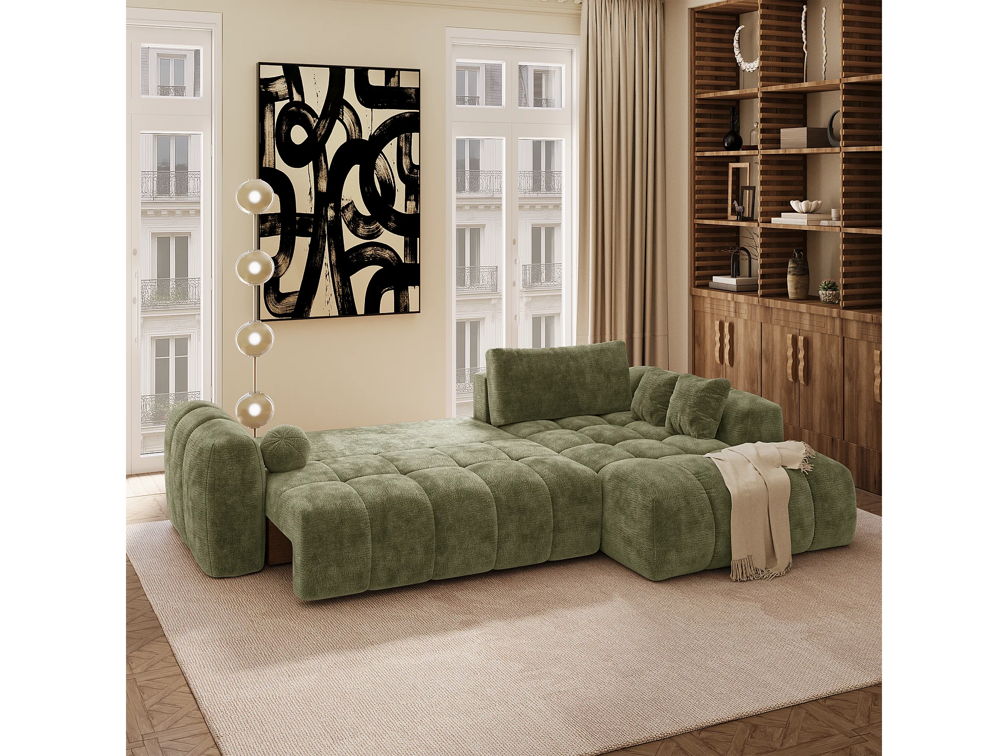 Canapé d'angle droit convertible avec coffre SKY en Velours gaufré
