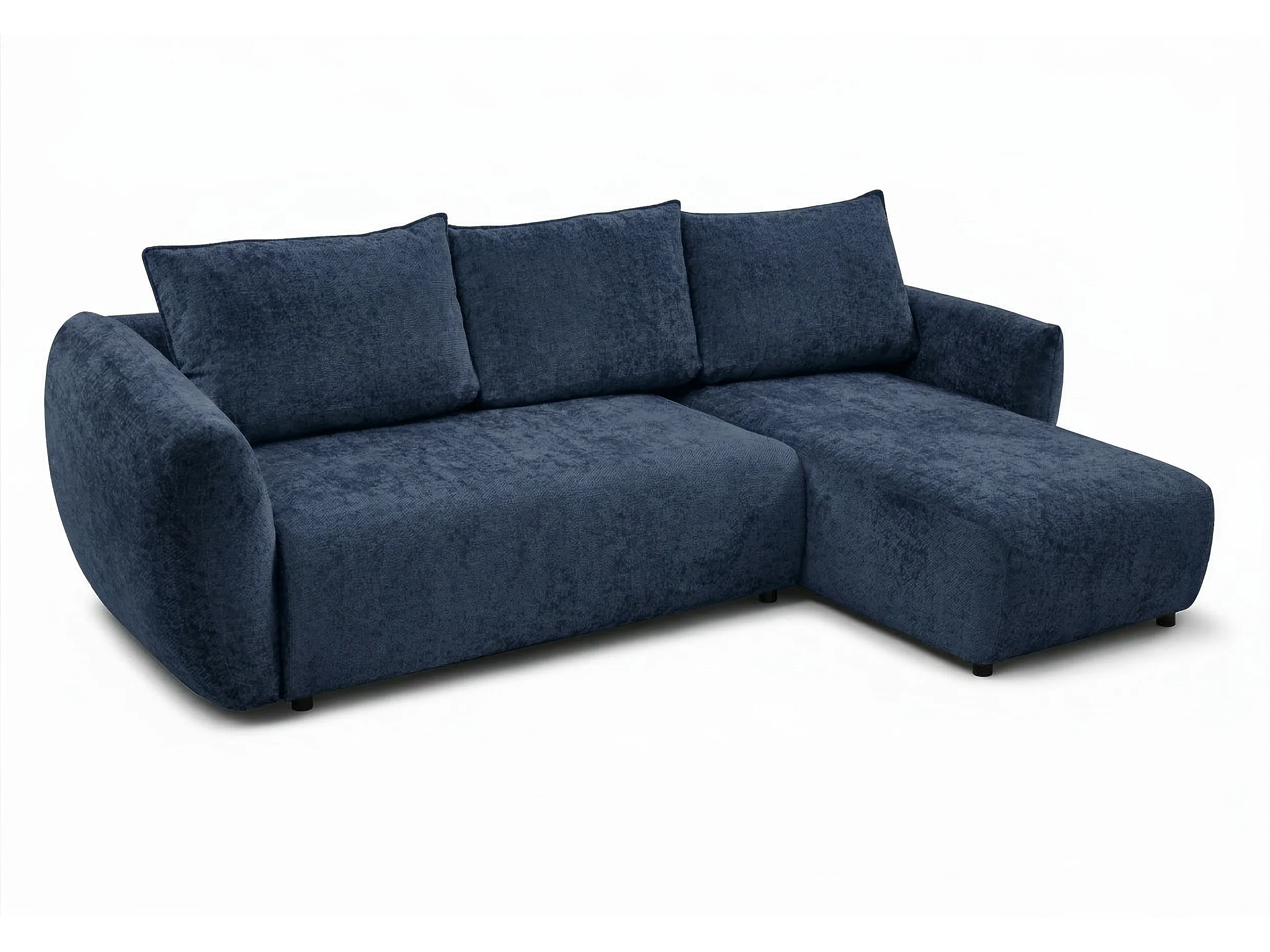 Canapé d’angle droit convertible élégant ZEPHIRA 258 × 170 cm en tissu FLOW 22 bleu foncé