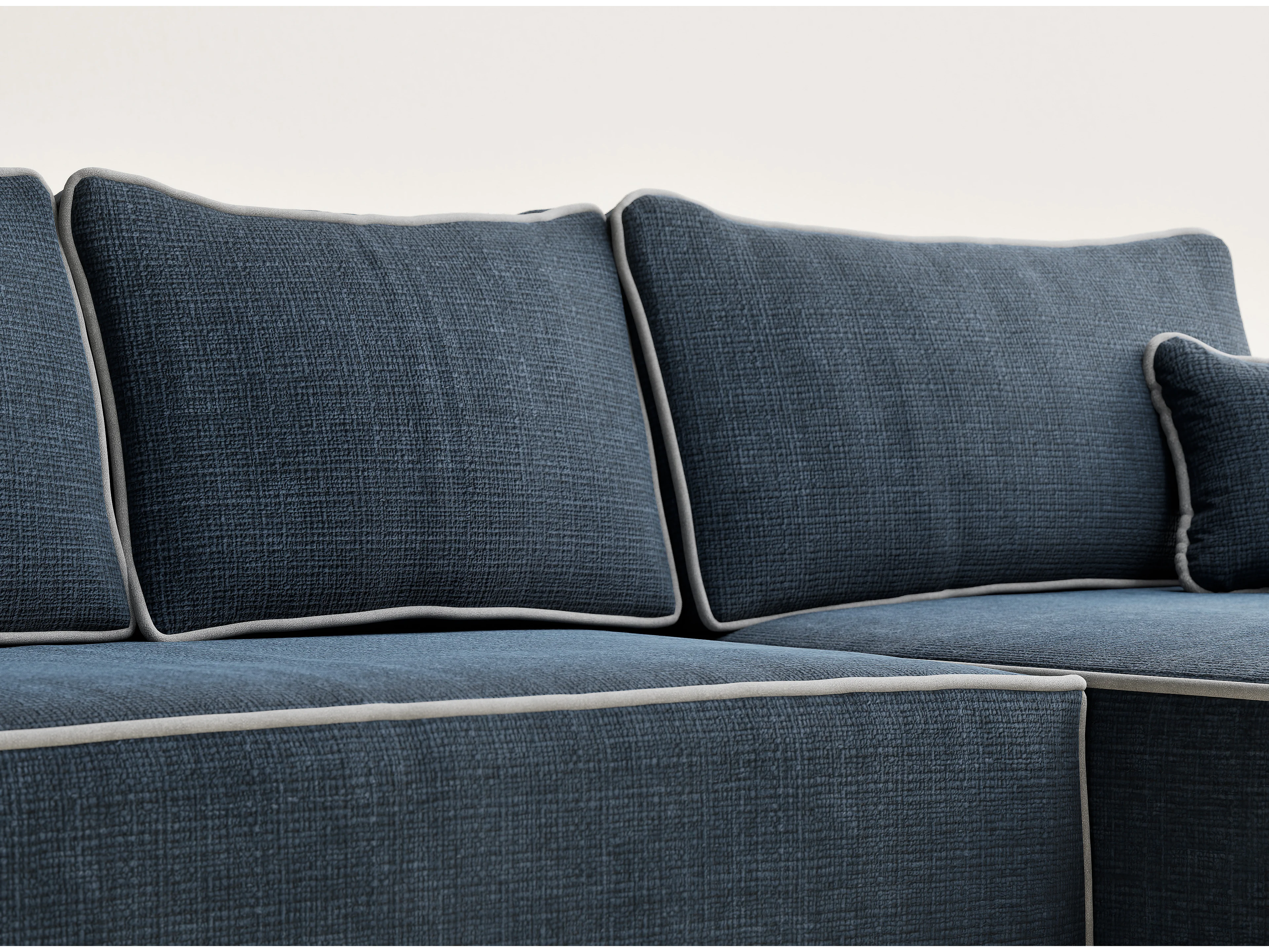 Canapé d'angle droit convertible en tissu chenille bleu foncé-gris MODO