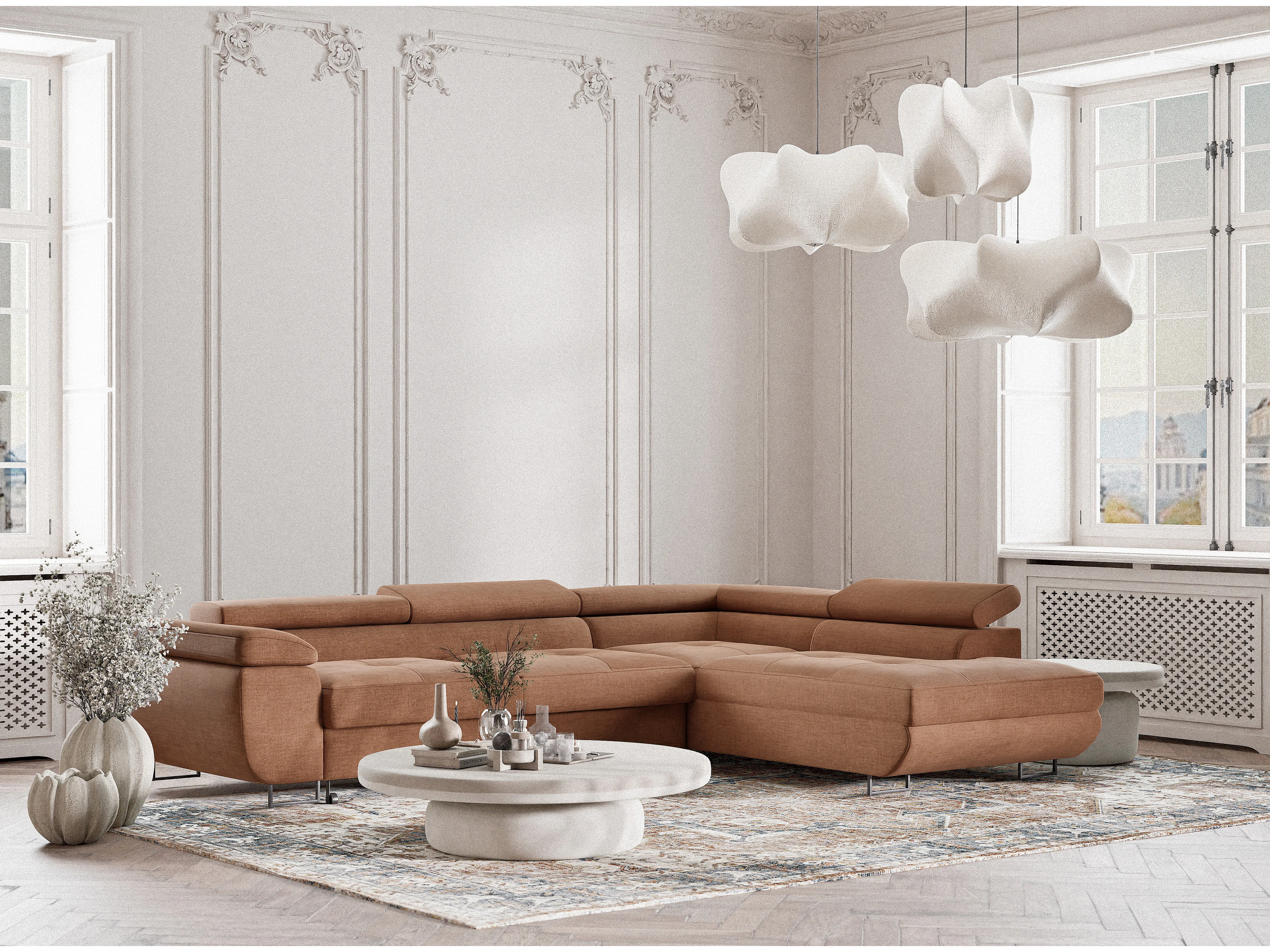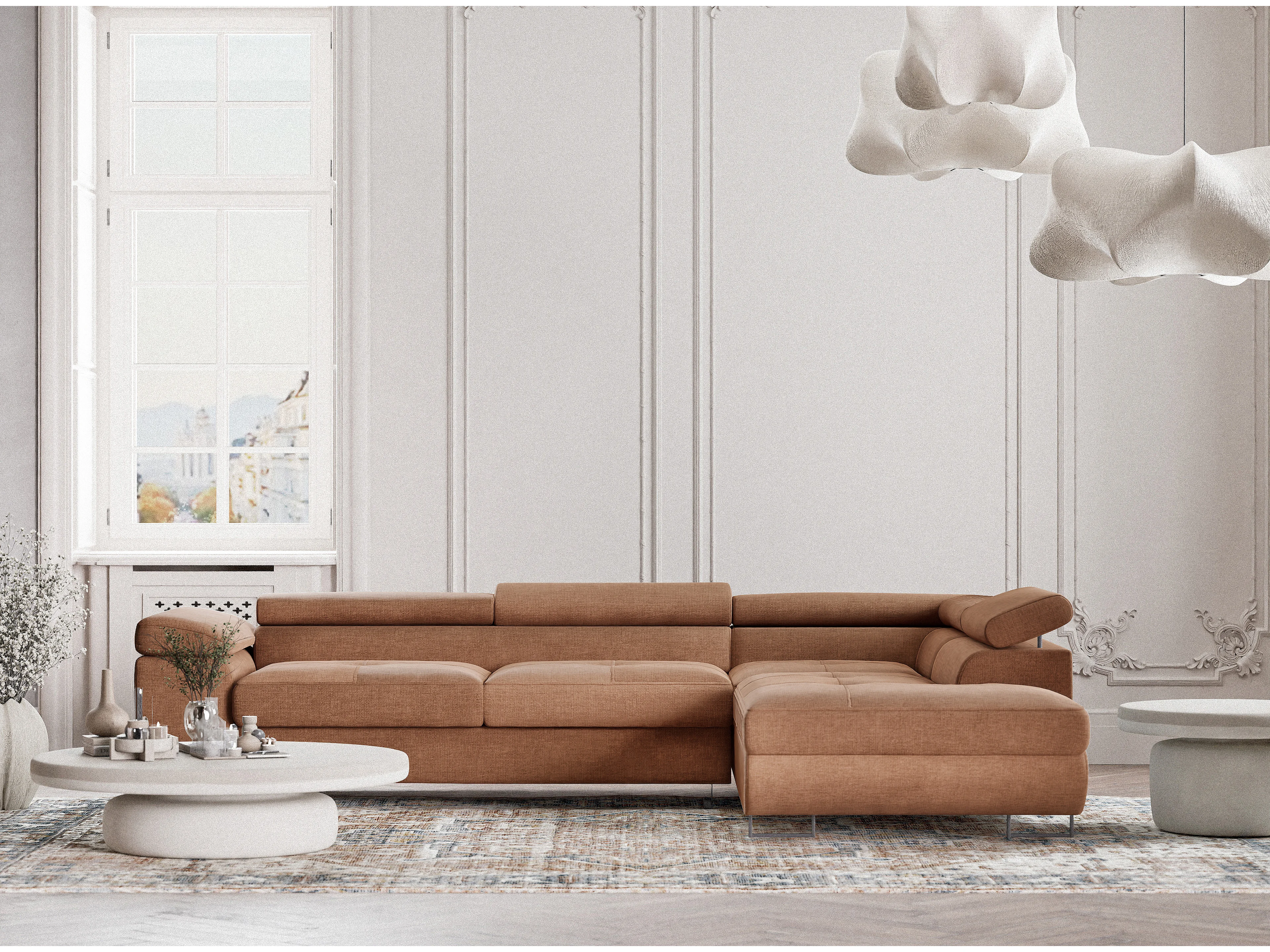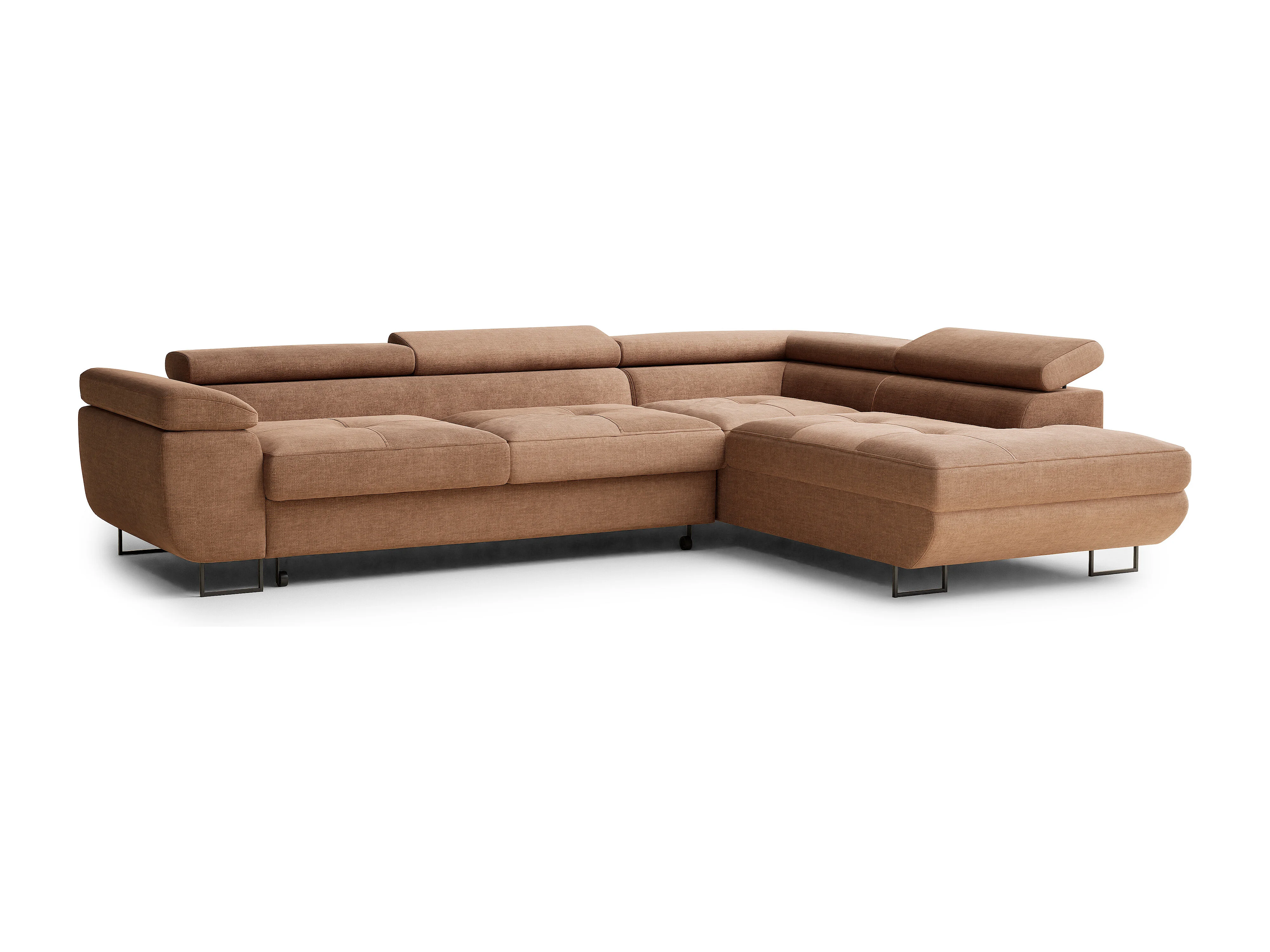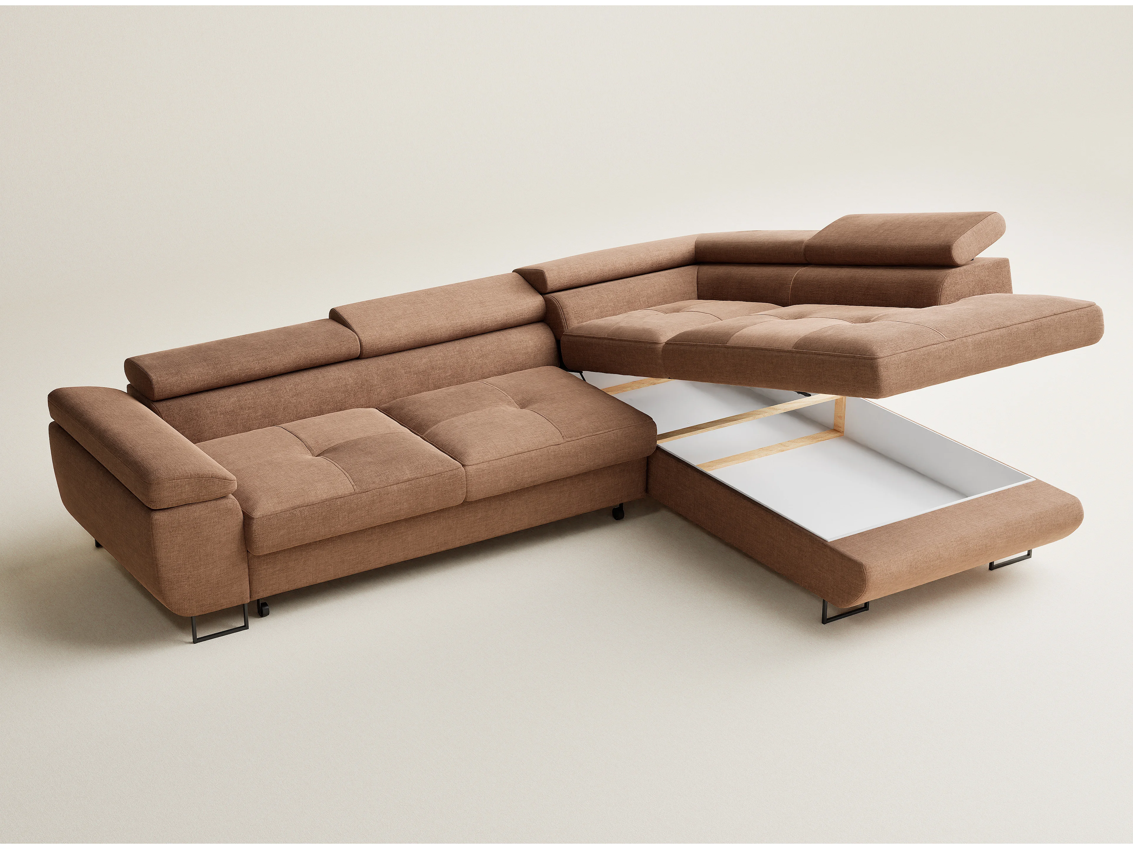 Canapé d'angle droit convertible en tissu chenille brun CONCORD