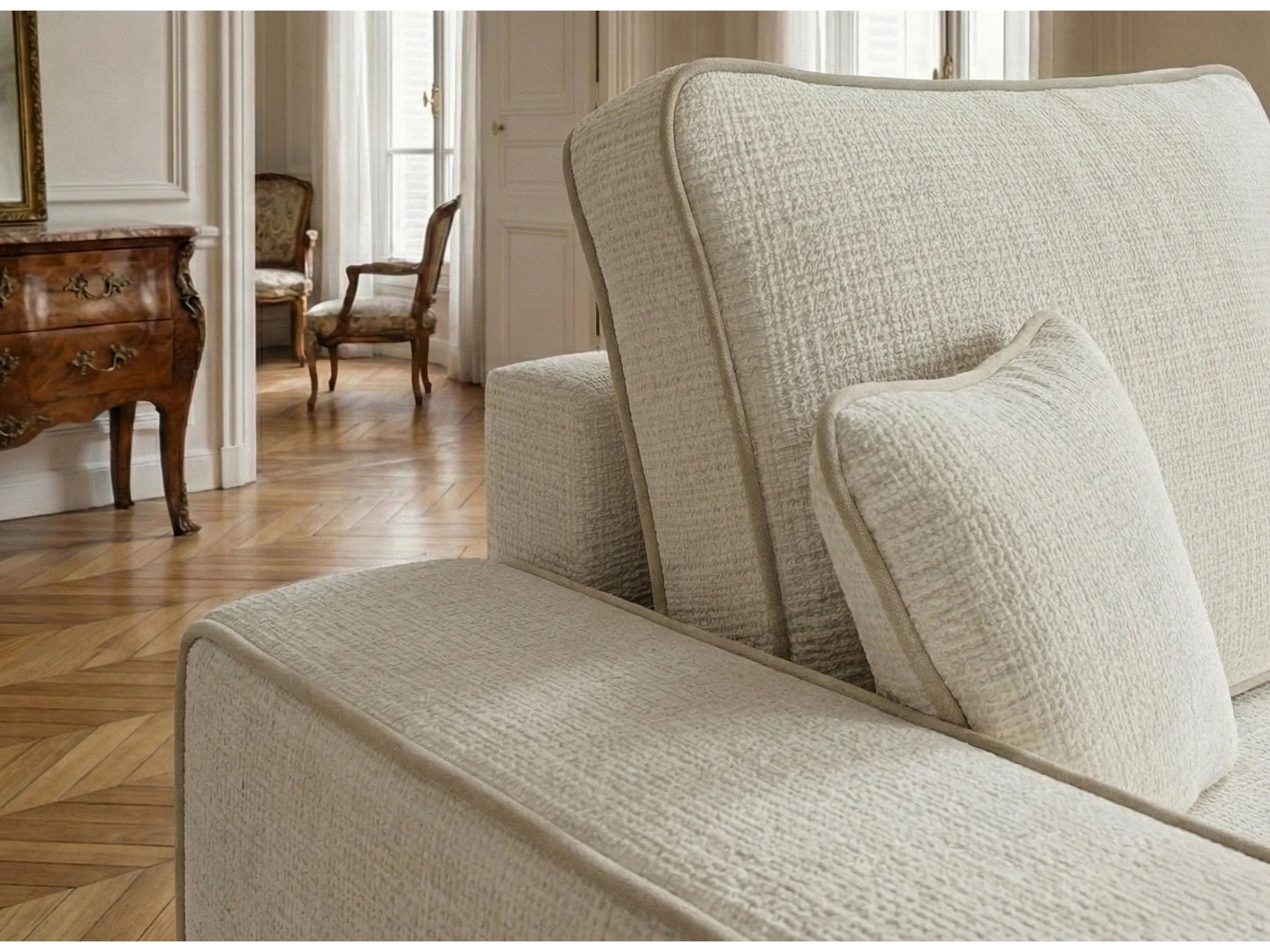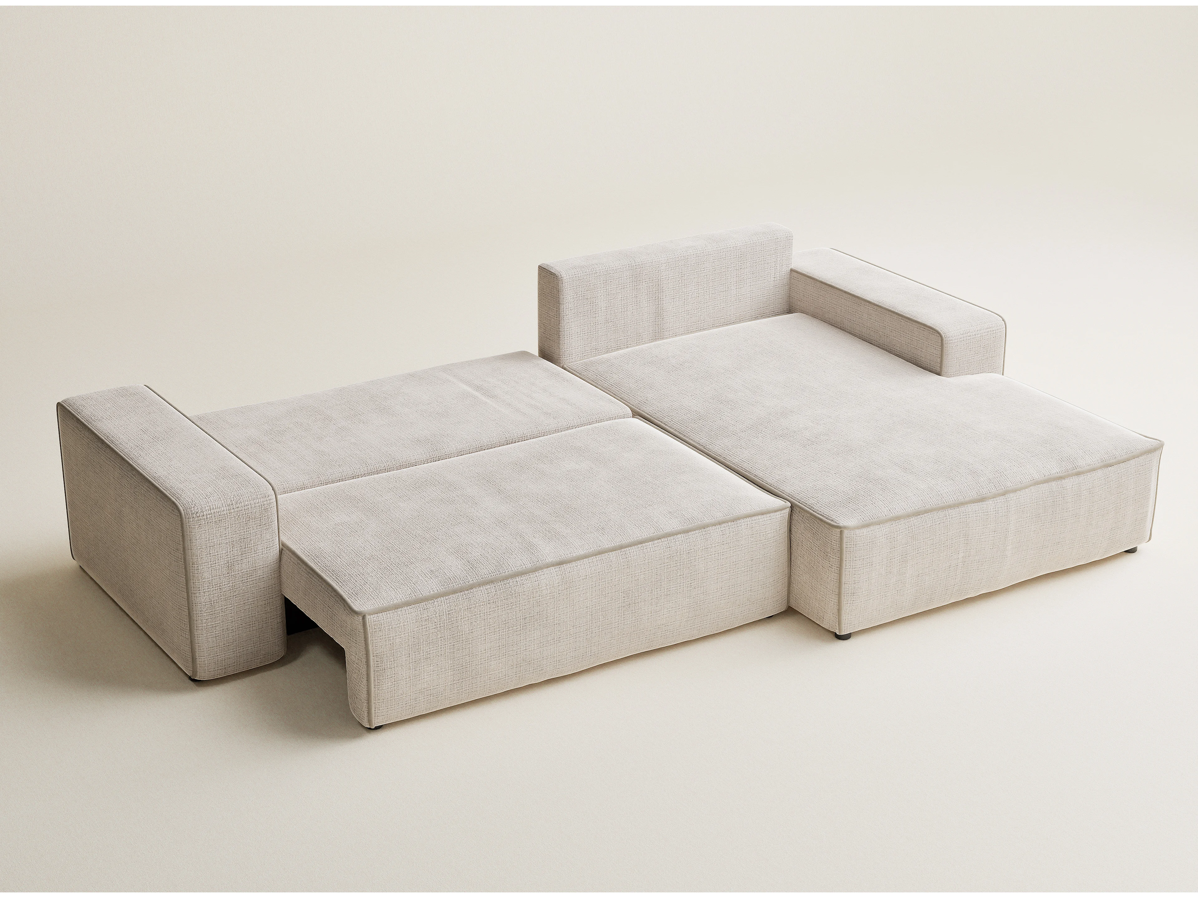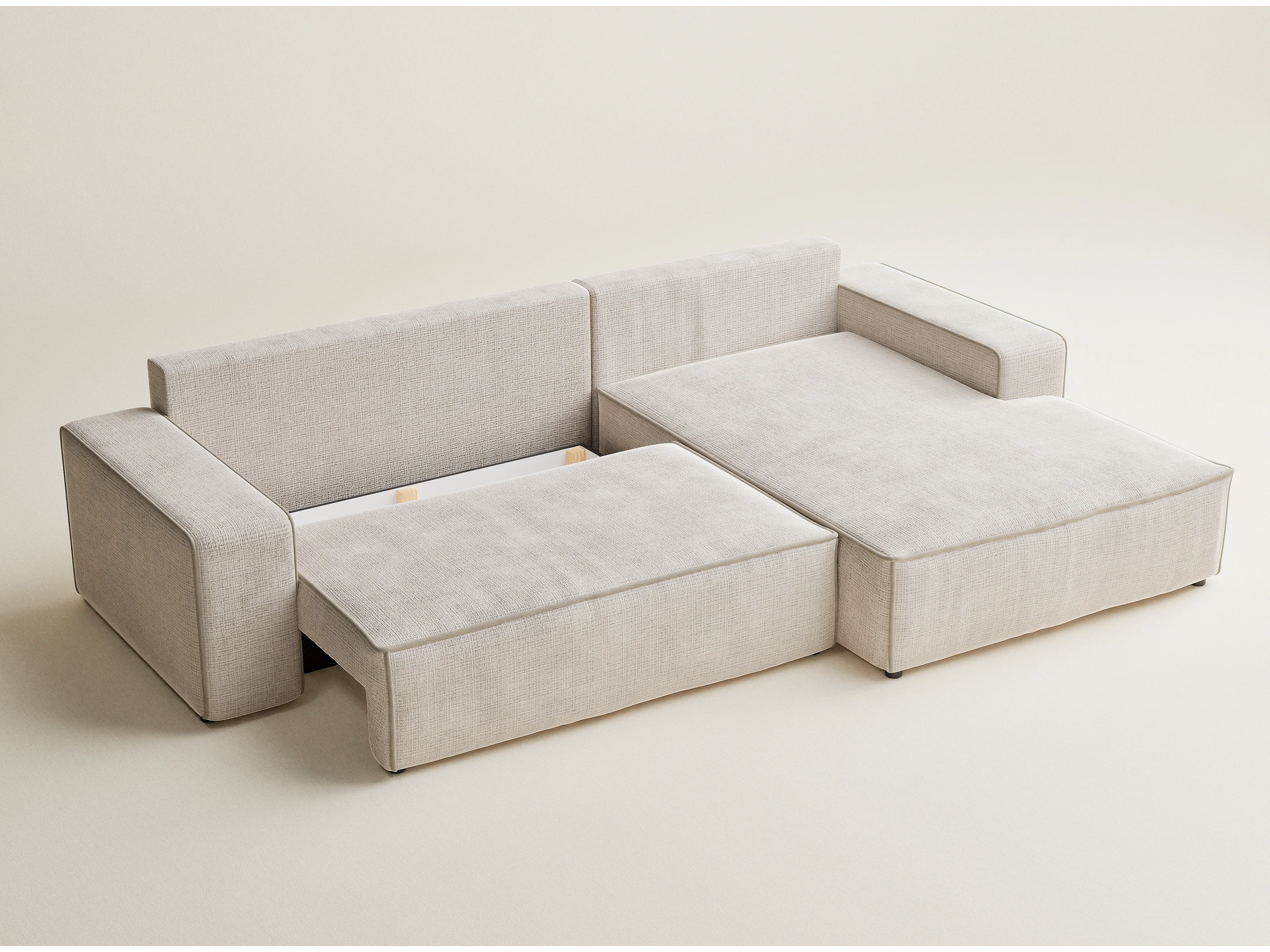 Canapé d'angle droit convertible en tissu chenille creme-beige MODO