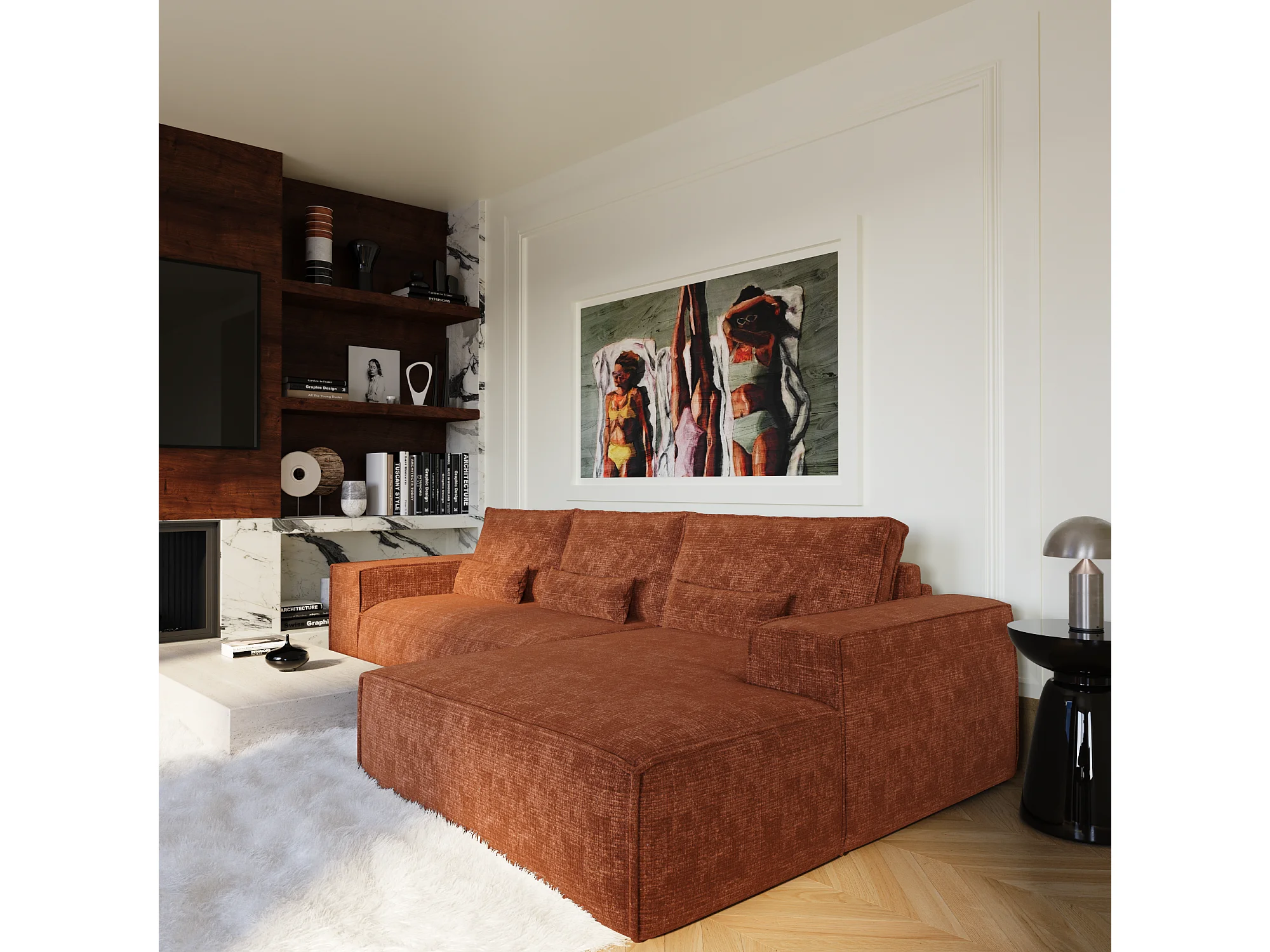 Canapé d'angle droit convertible express JUNE en Velours gaufré