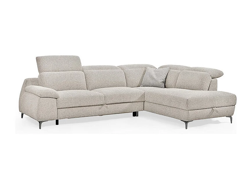 Canapé d'angle droit convertible L. 278 cm tissu chiné beige - TULIO