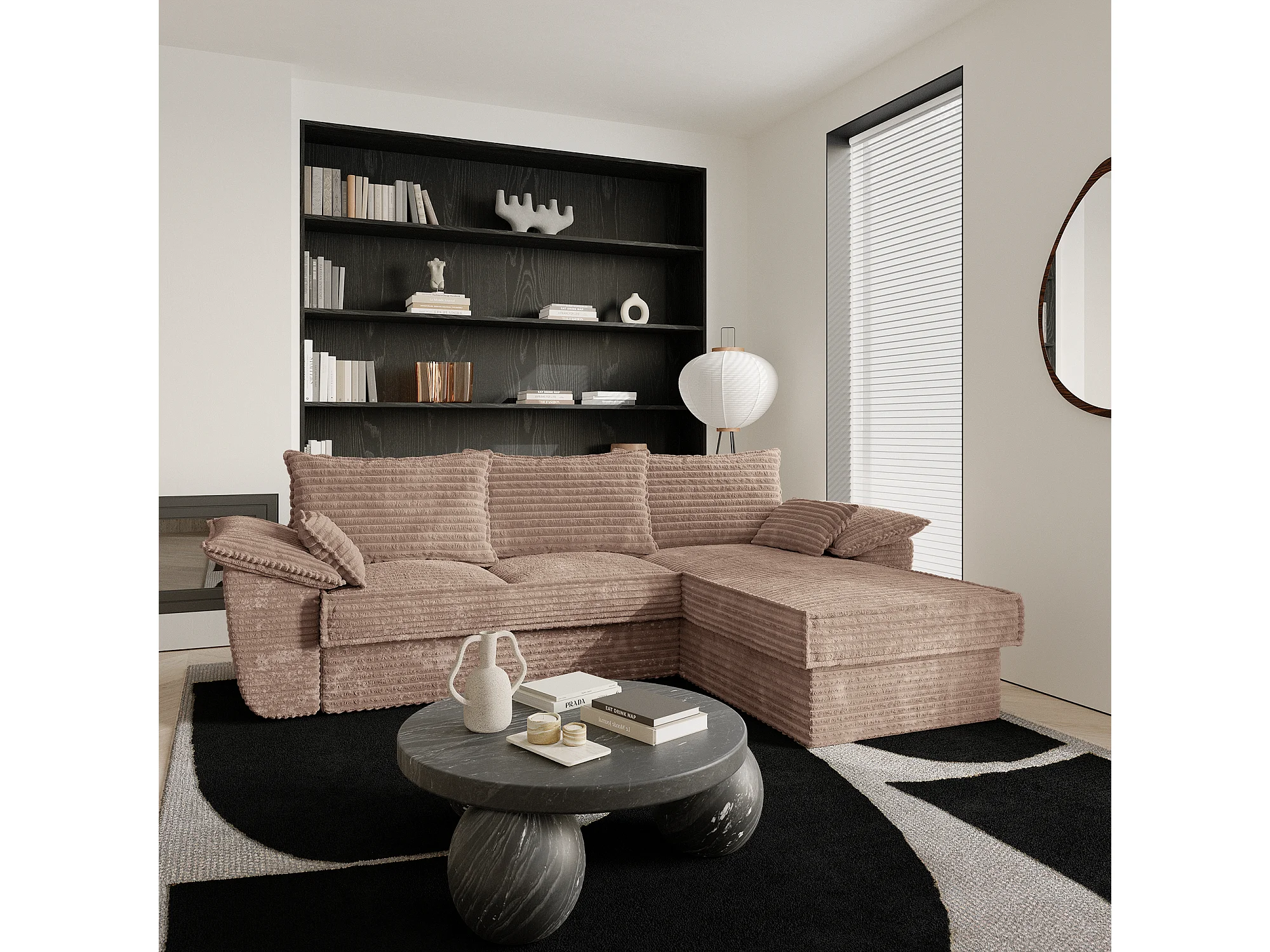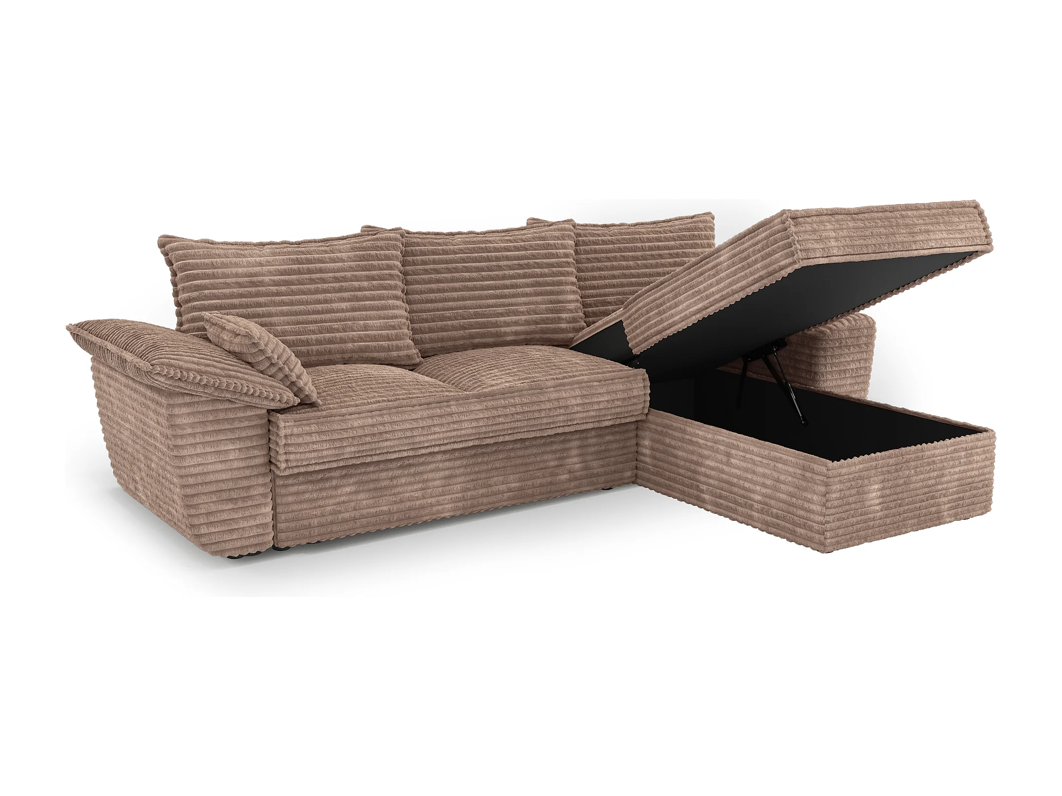 Canapé d'angle droit convertible velours côtelé XXL taupe 257cm SASHA