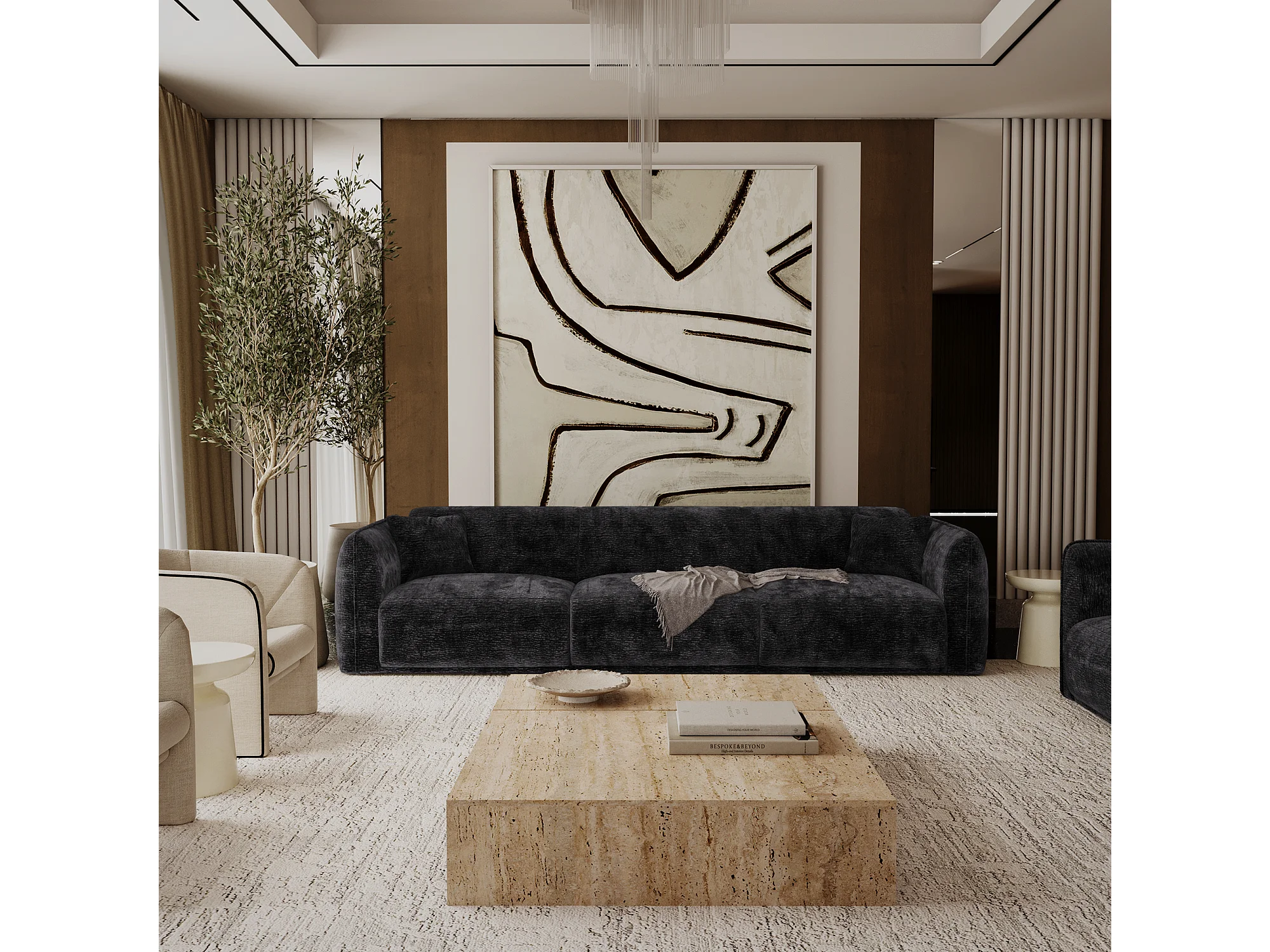 Canapé LUSH en Velours à motifs Noir
