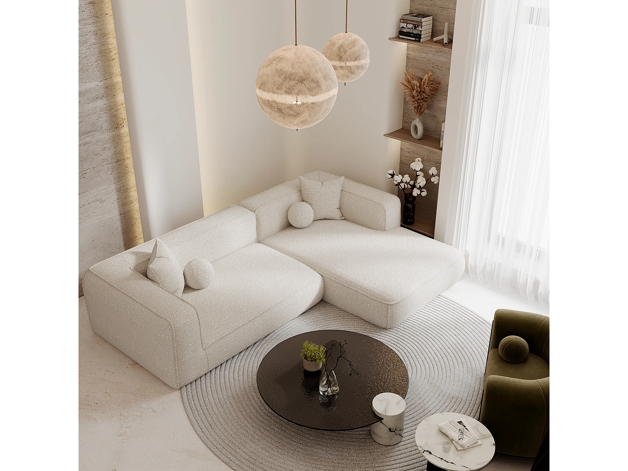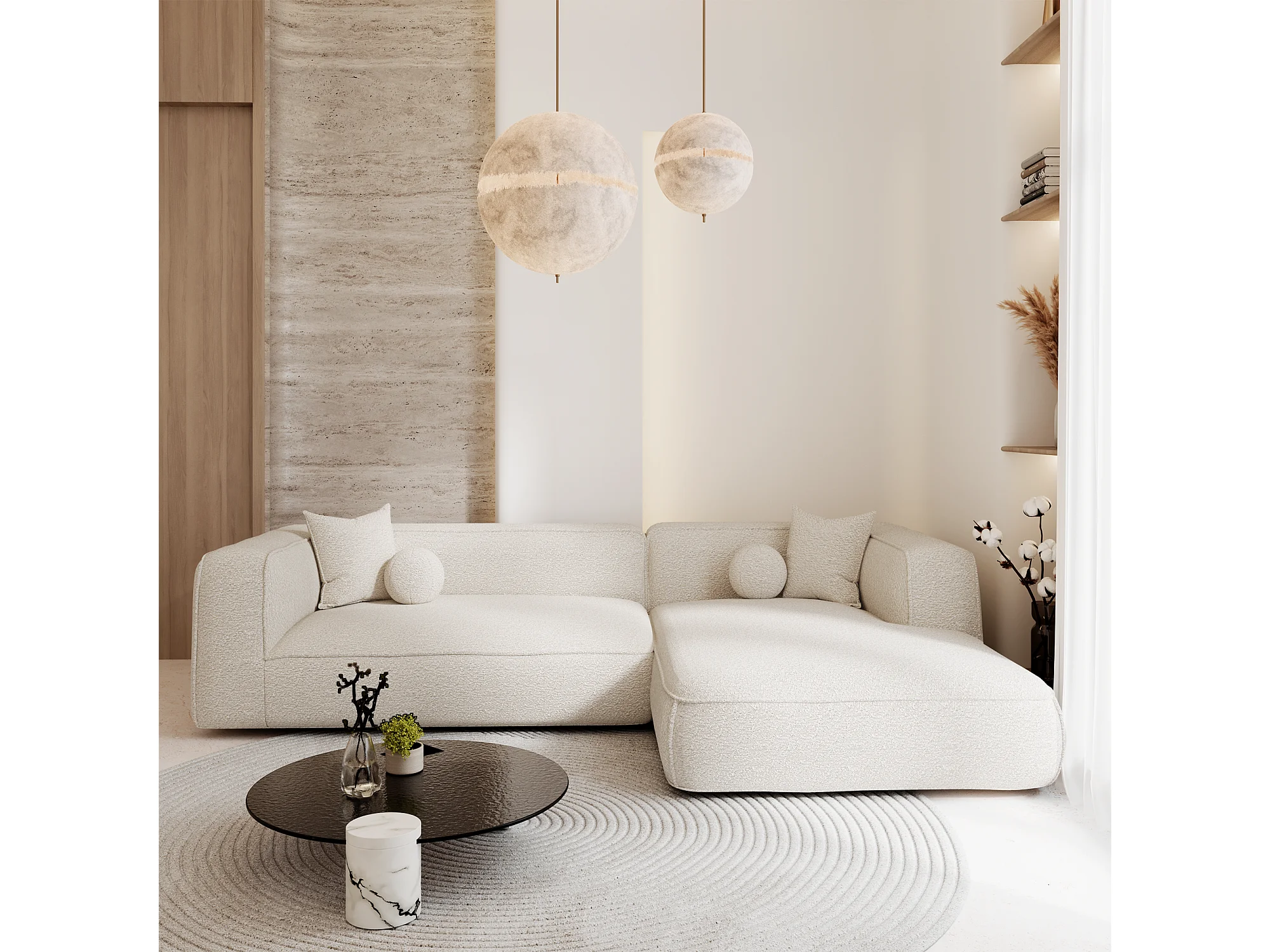 Canapé d'angle droit SOFIA en Bouclette