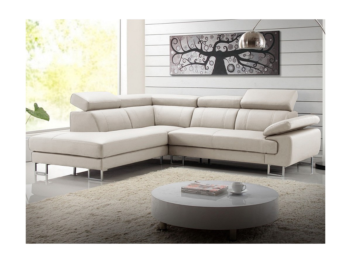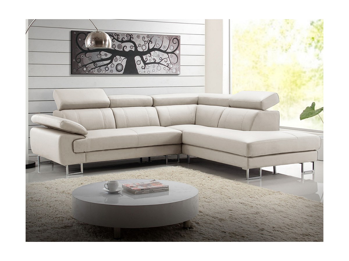 Canapé d'angle cuir COLISEE - Beige - Angle droit