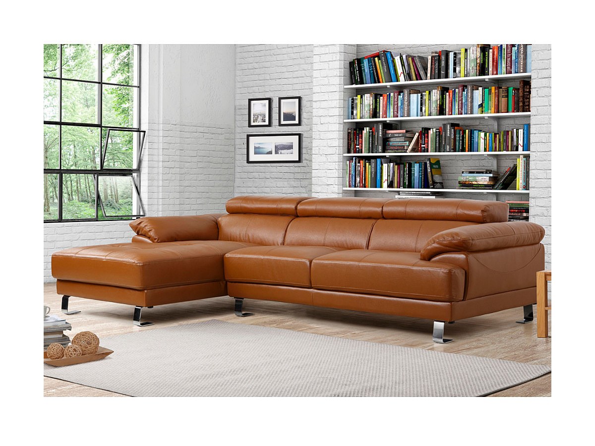 Canapé d'angle en cuir EXCELSIOR II - Caramel - Angle gauche