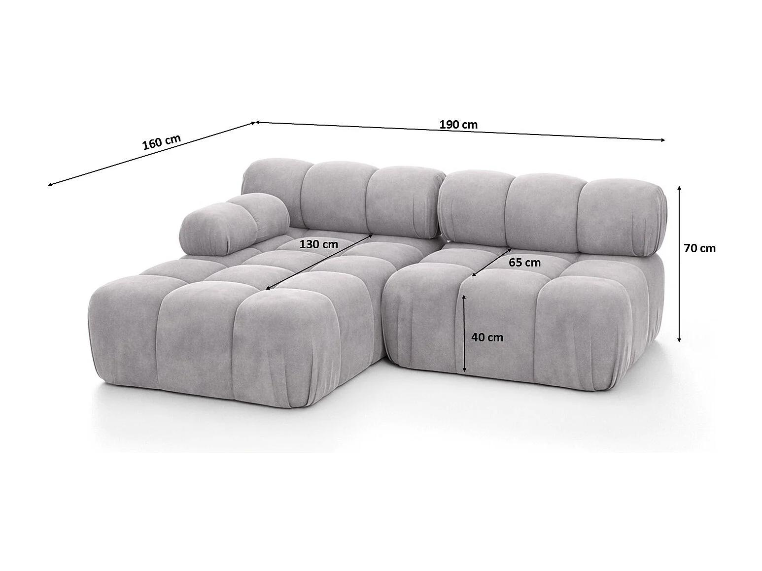 Canapé d’angle en L Mini II modulaire, velours Salvador, Gris, Gauche, Selia