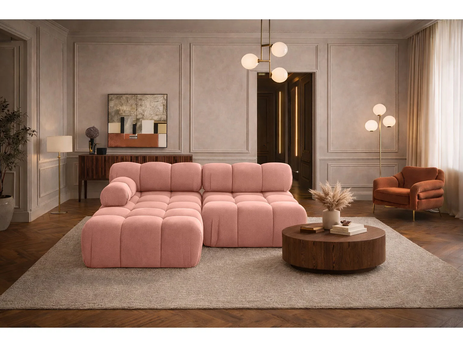 Canapé d’angle en L Mini II modulaire, velours Salvador, Rose, Gauche, Selia