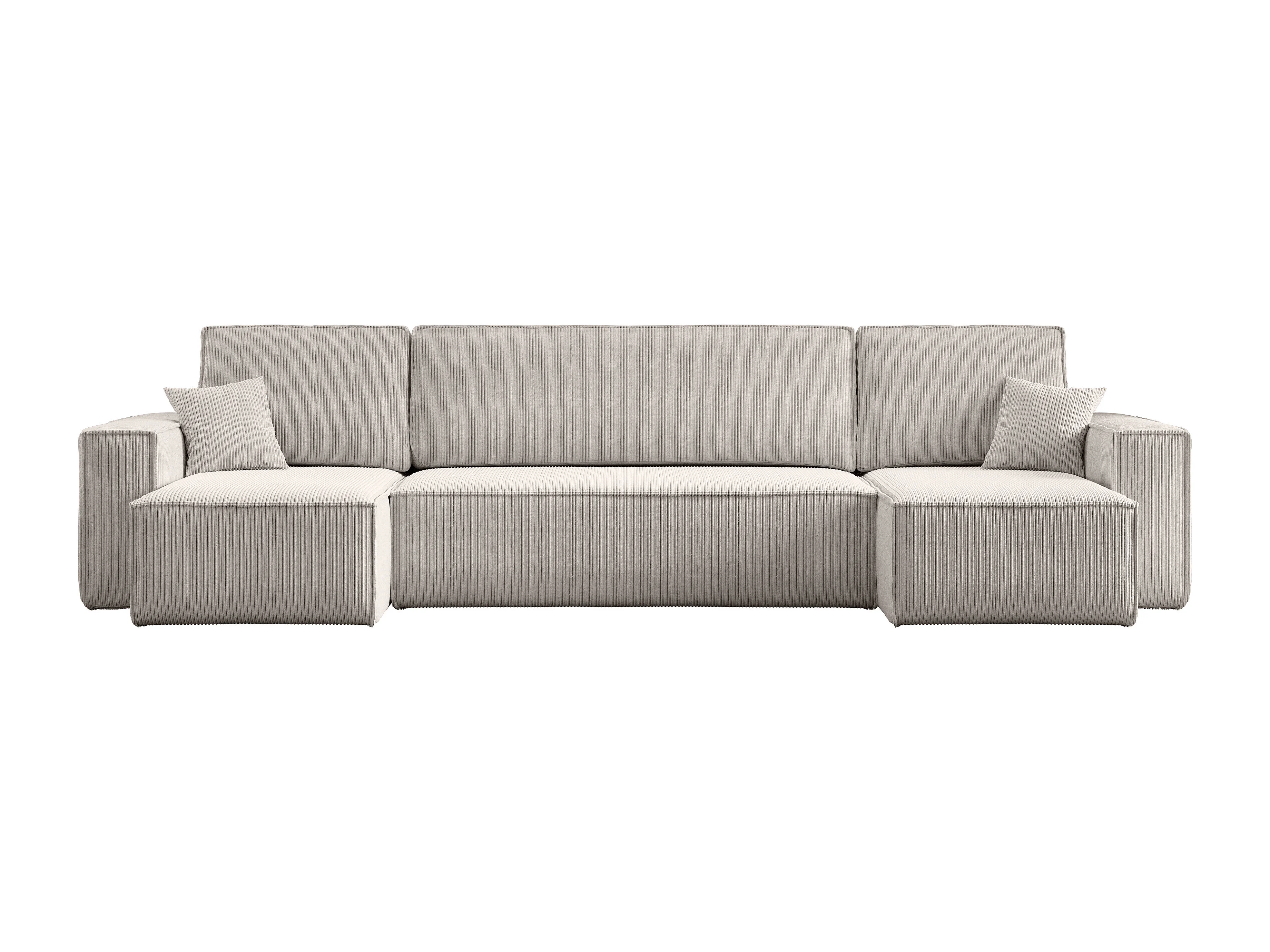 Canapé d’angle en U CARLOS U convertible – Blanc, grand format, fonction couchage, coffre de rangement XXL, angle universel gauche/droite, confort familial