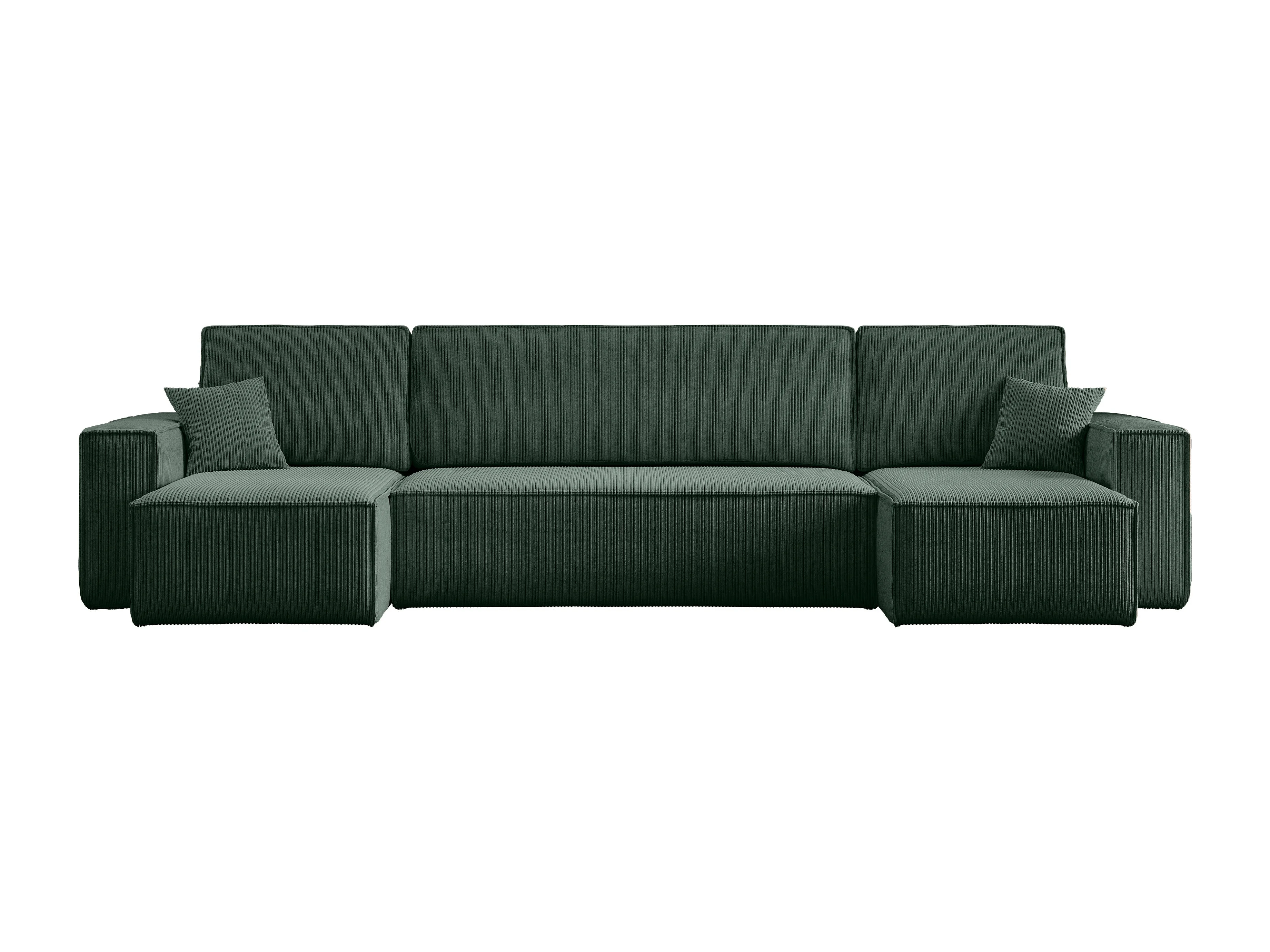 Canapé d’angle en U CARLOS U convertible – Vert bouteille, grand format, fonction couchage, coffre de rangement XXL, angle universel gauche/droite, confort familial