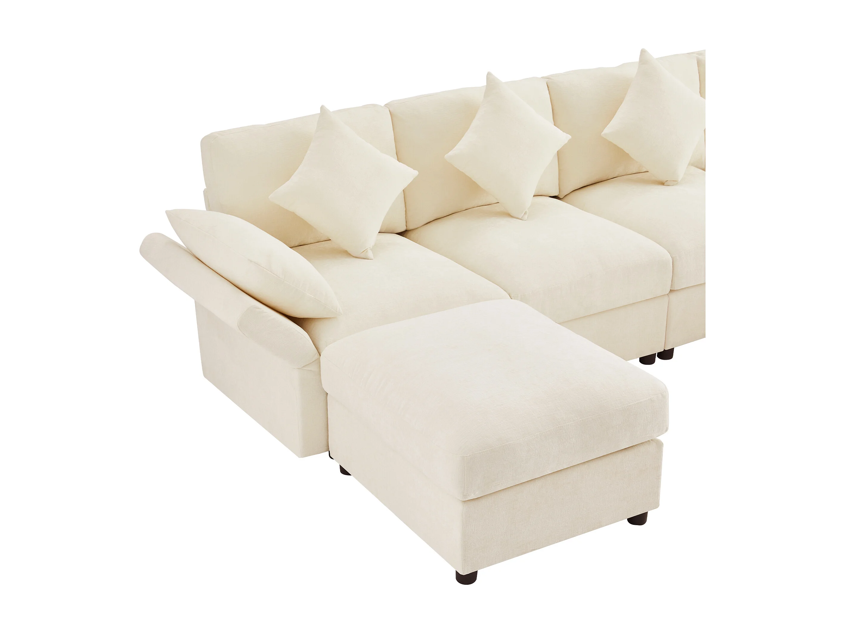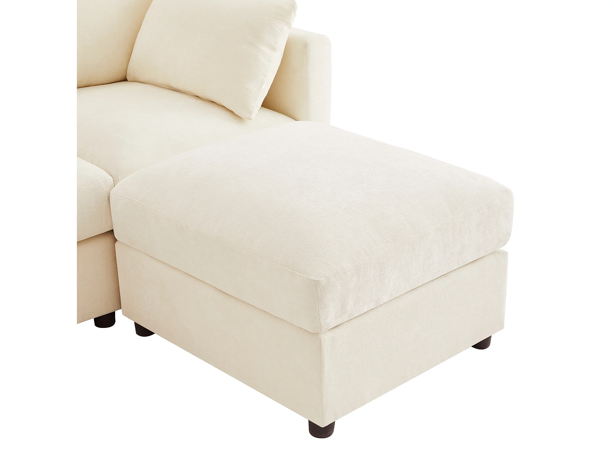Canapé d'angle en U ou en L - 4 places - avec 2 poufs - accoudoirs réglables - avec 4 coussins + 2 appuie-têtes - beige