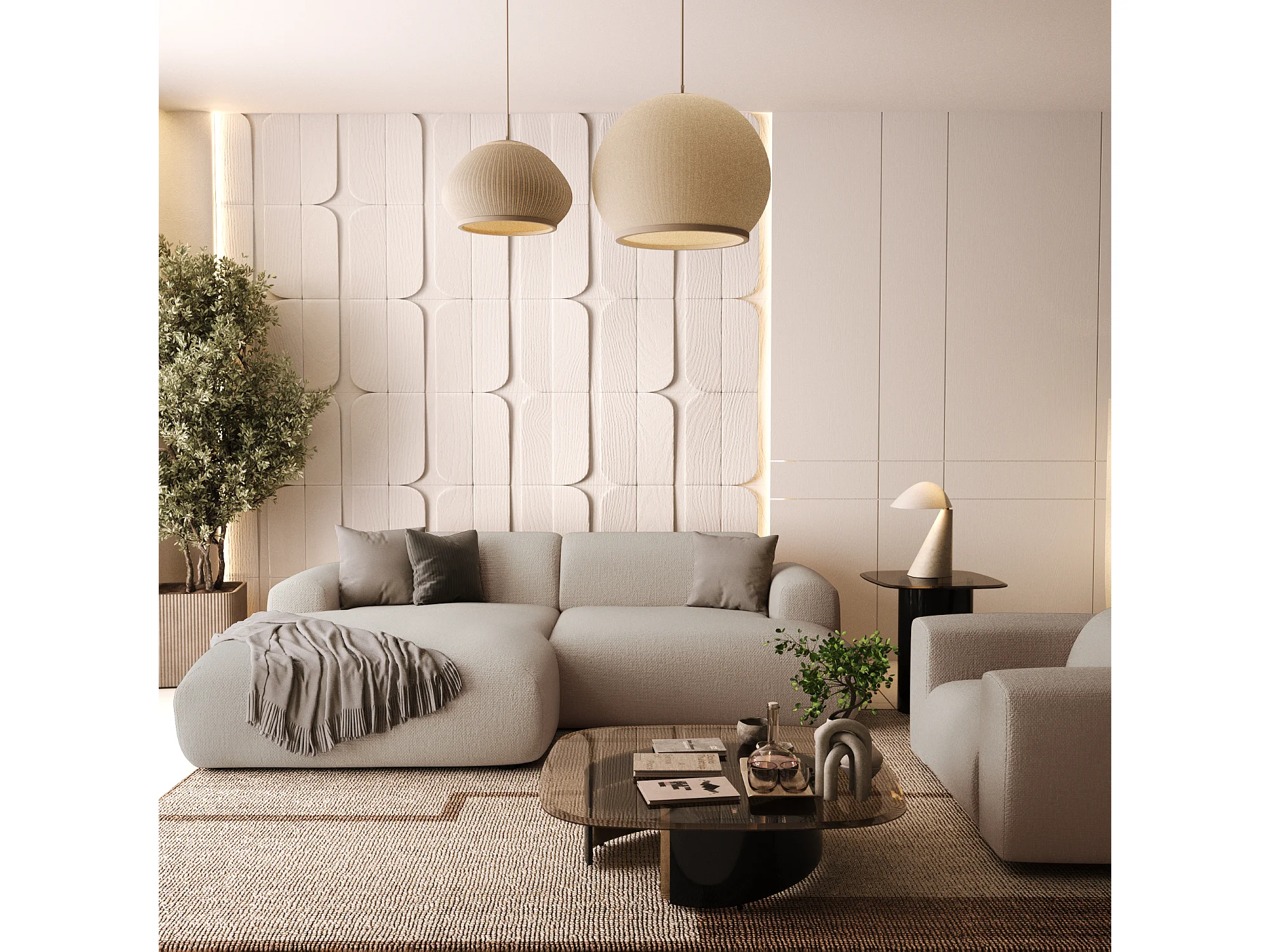Canapé d'angle gauche 4 places tissu tramé beige 266cm MYRA