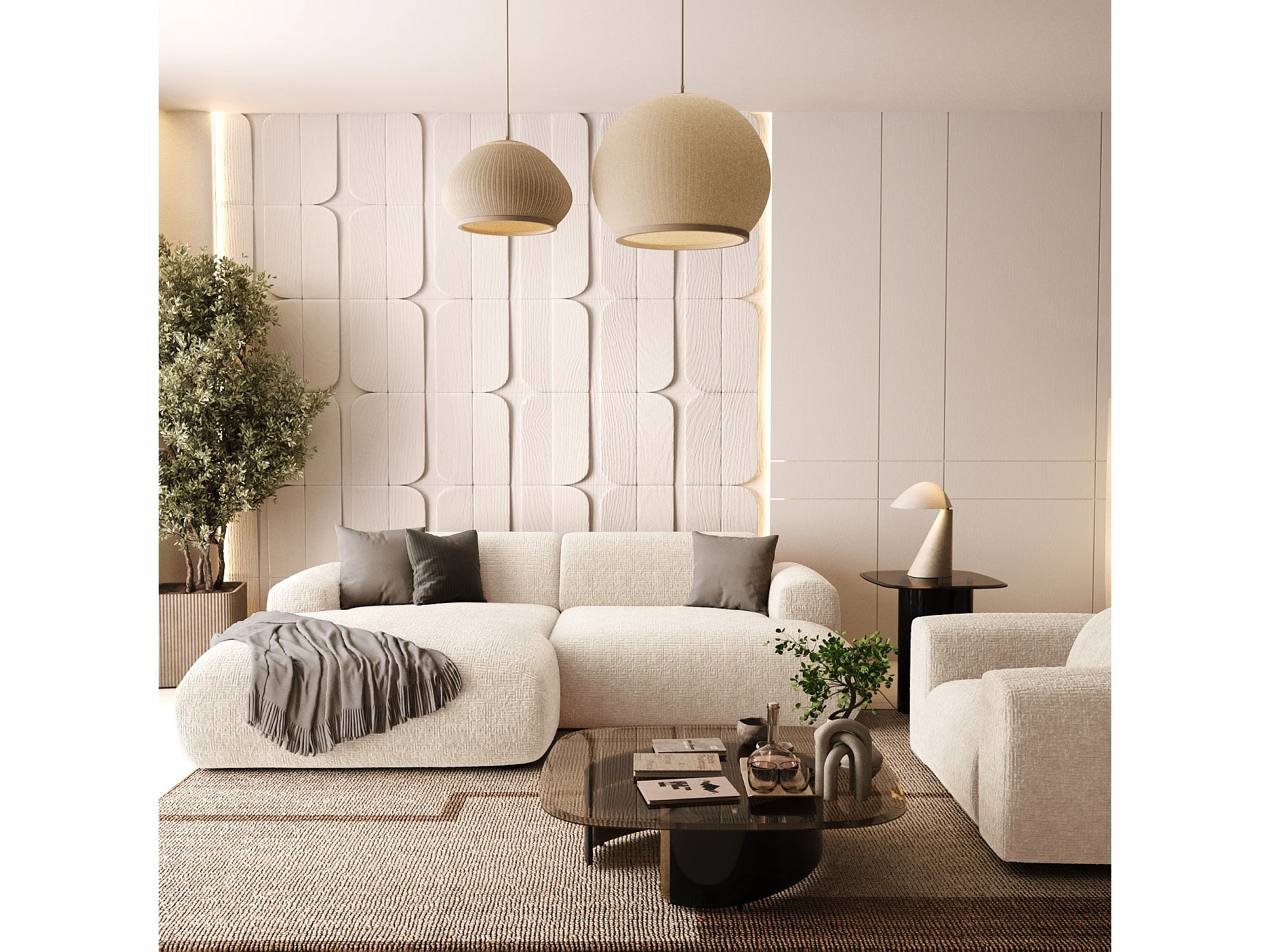 Canapé d'angle gauche 4 places velours à motifs crème 266cm MYRA