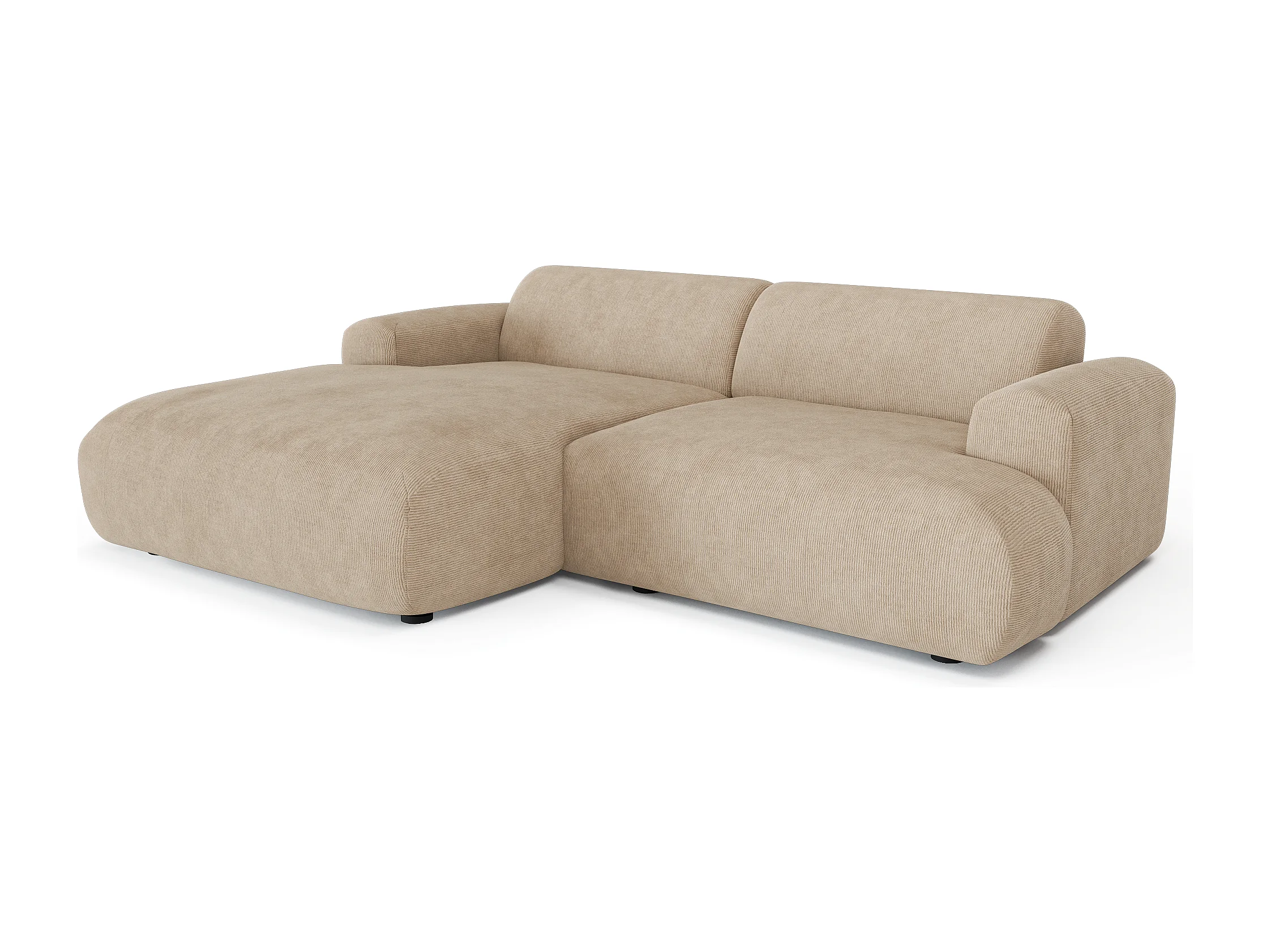 Canapé d'angle gauche 4 places velours côtelé beige 266cm MYRA
