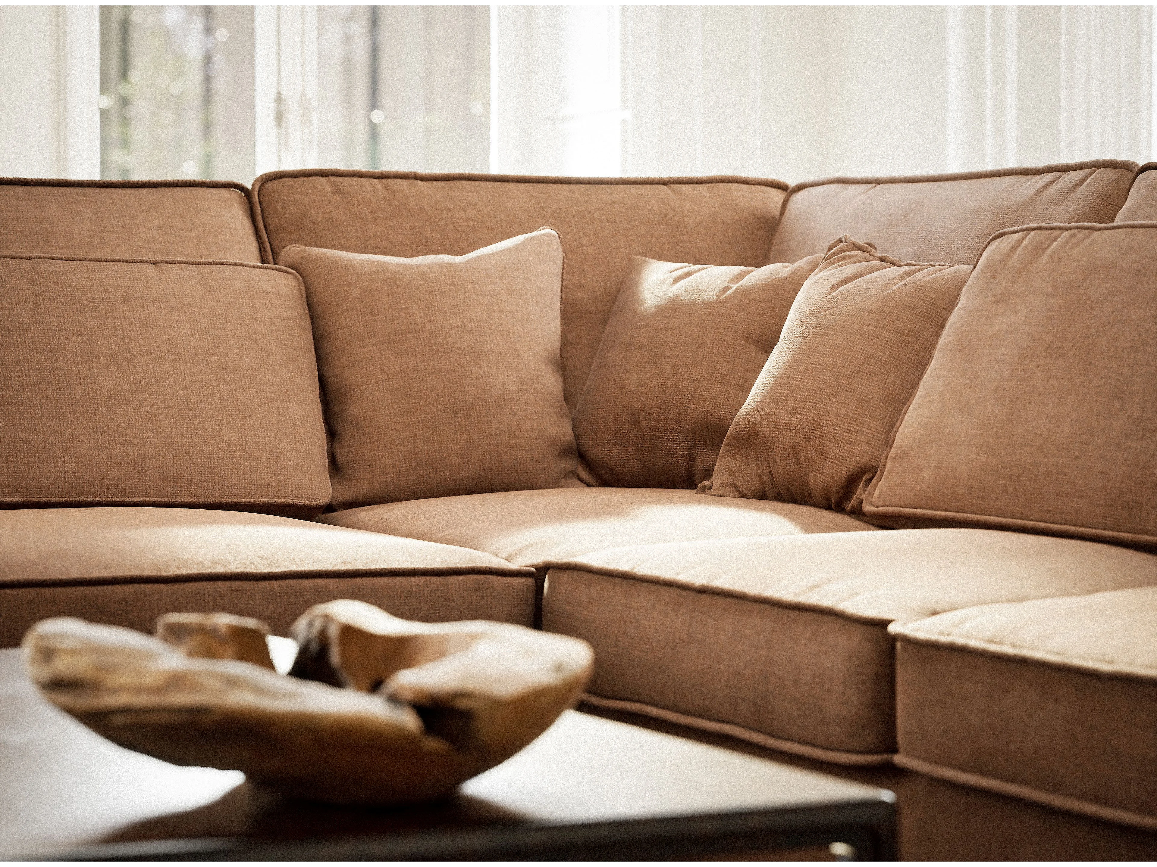 Canapé d'angle gauche 5 places en tissu chenille bronze KIROU