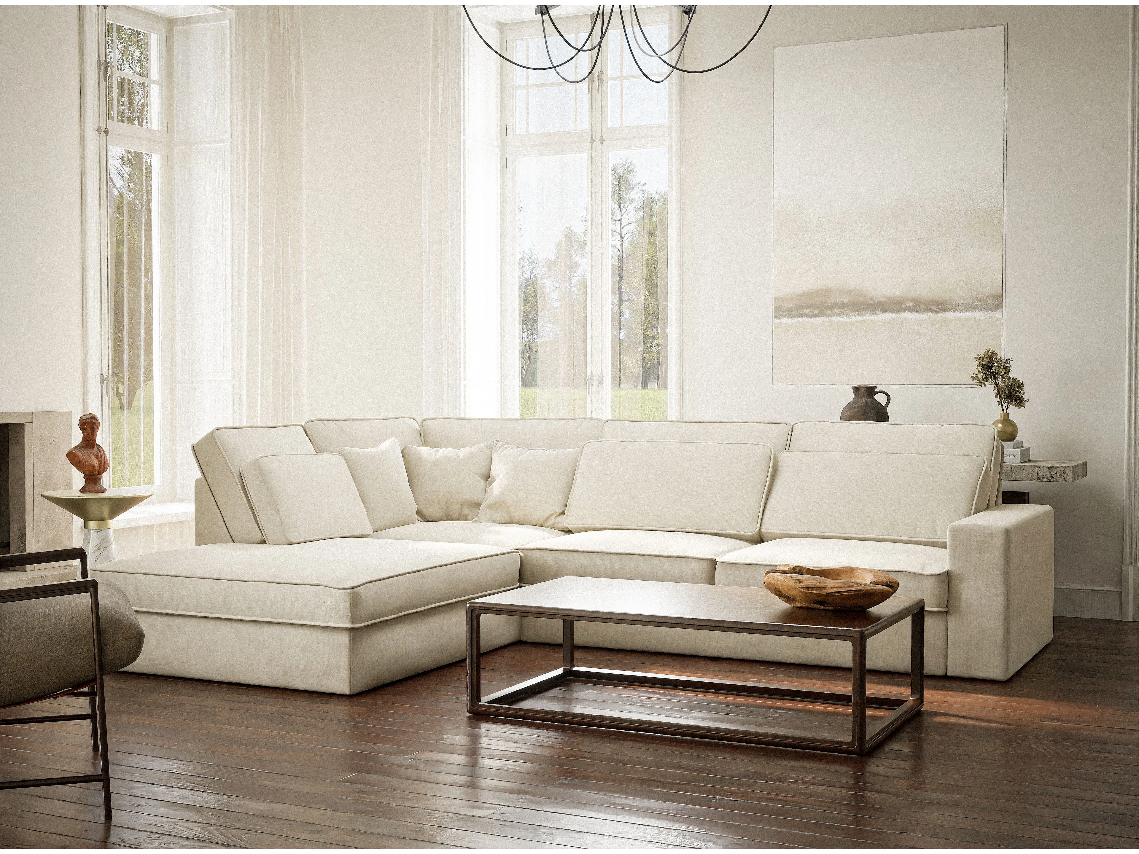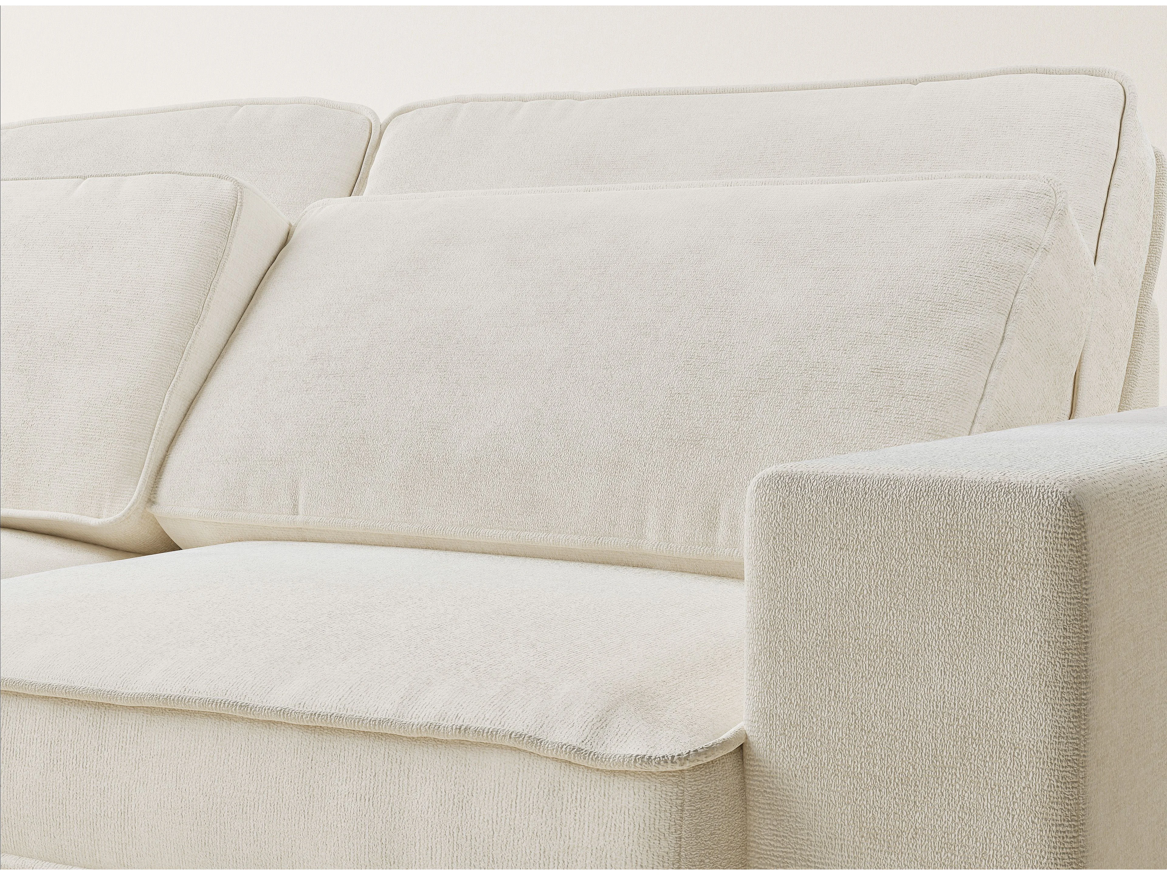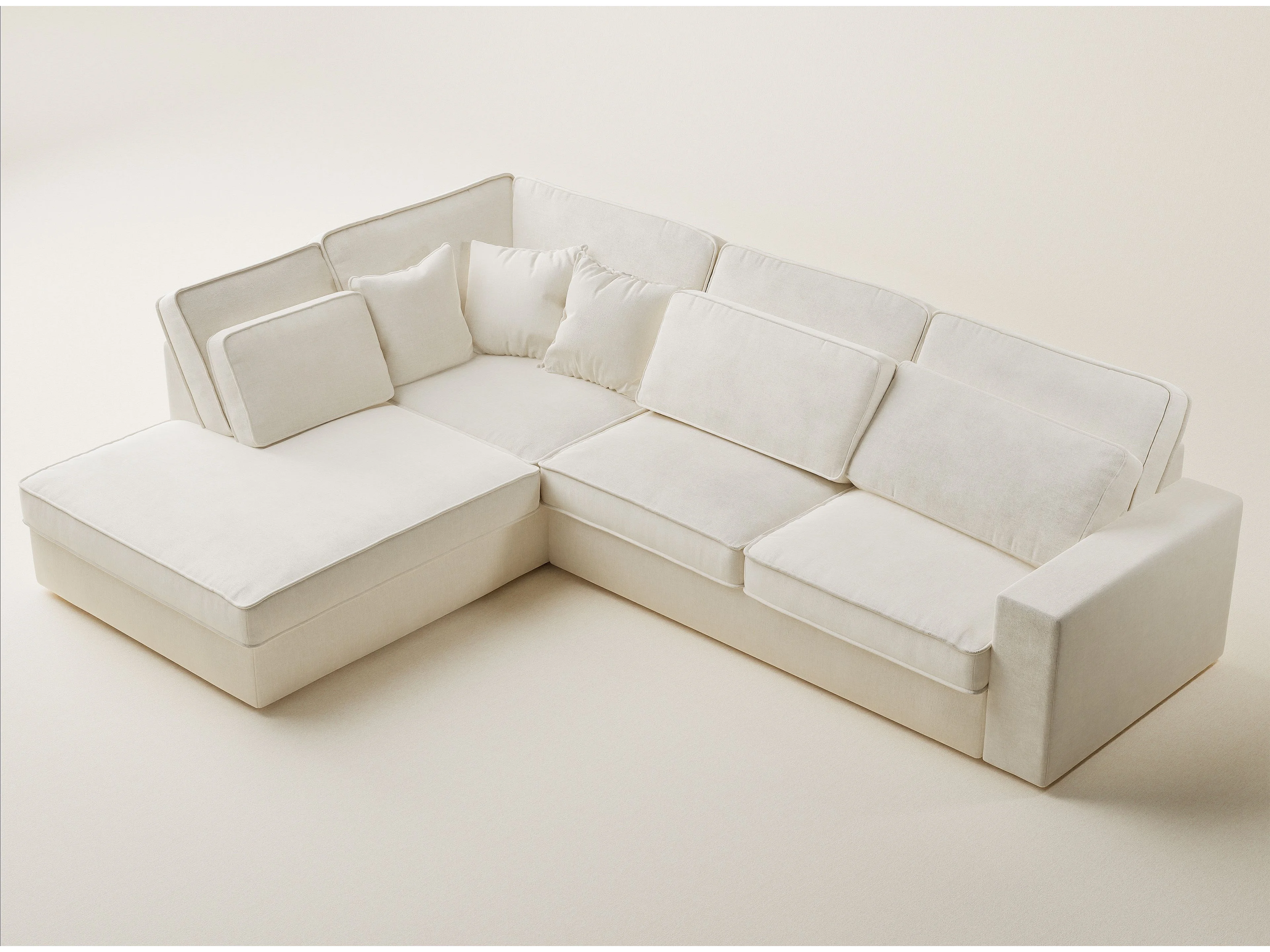Canapé d'angle gauche 5 places en tissu chenille creme KIROU